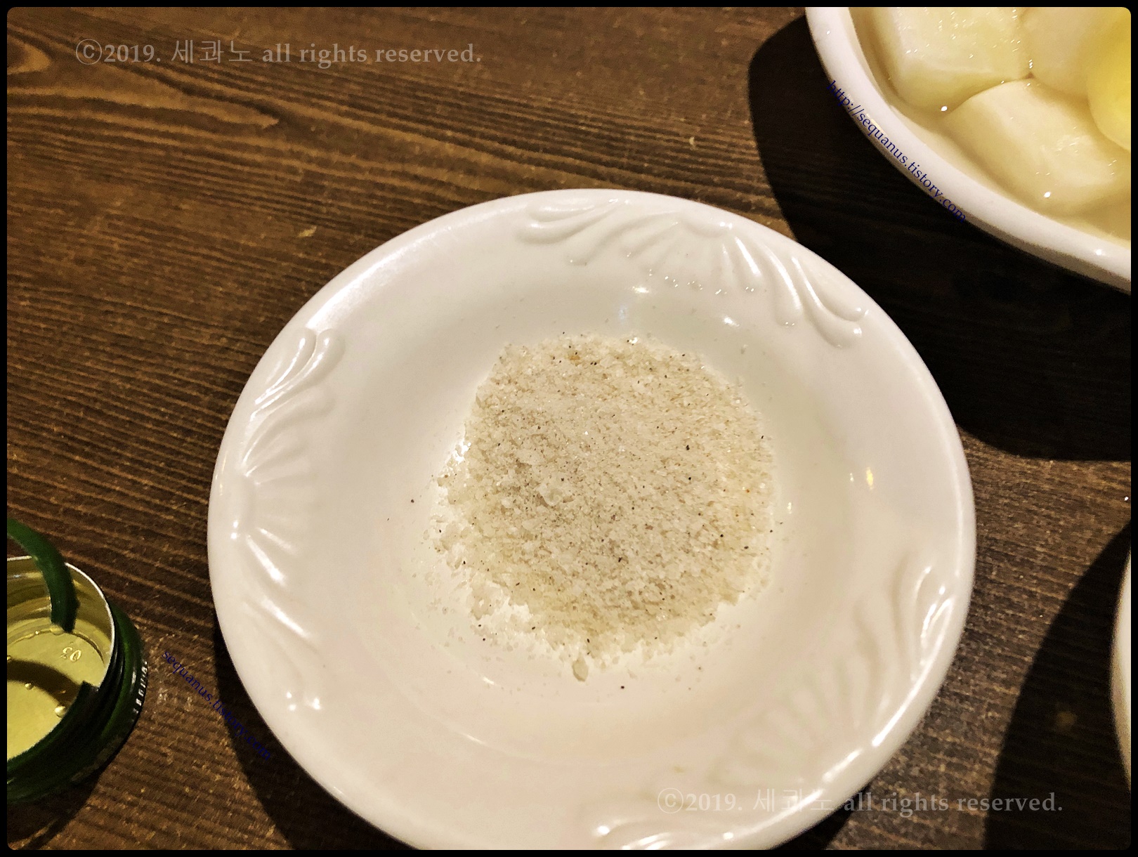 하나 들어서 소금 살짝 찍어 먹고 또 한 잔