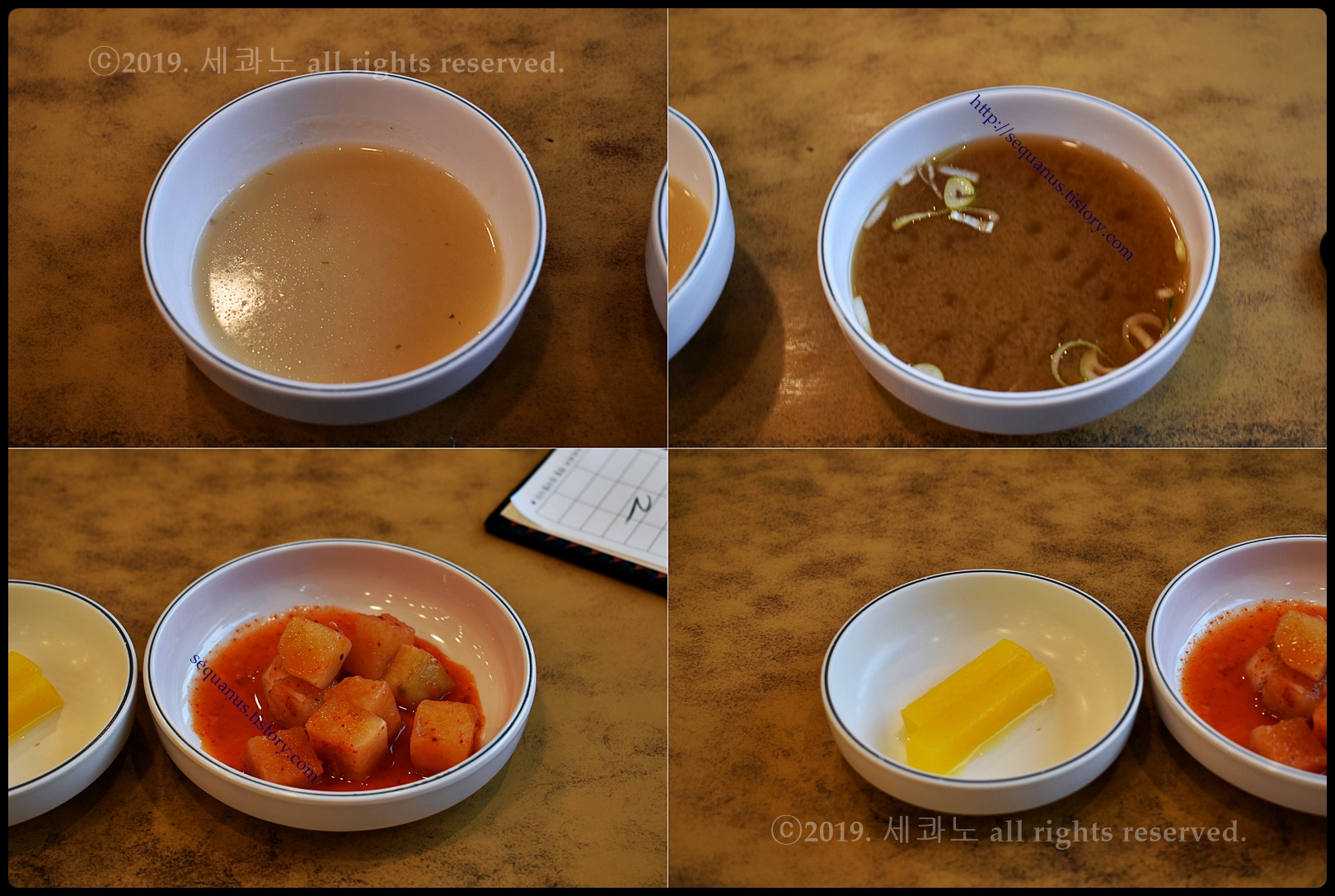 그리고 수프, 장국, 깍두기, 단무지가 나왔다.