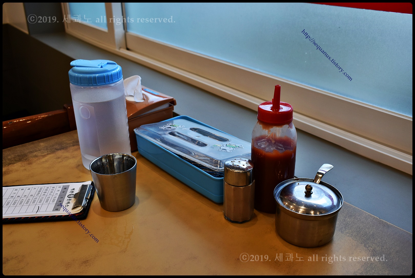 테이블에 케첩이 준비되어 있는 것은