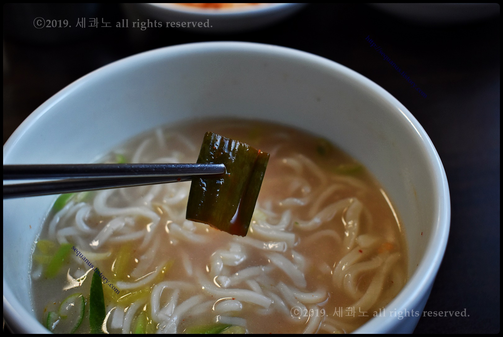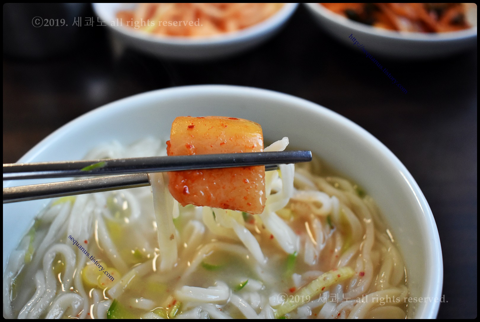 사골 국물을 사용하는 경상도식 안동국시를 사용하는 것으로