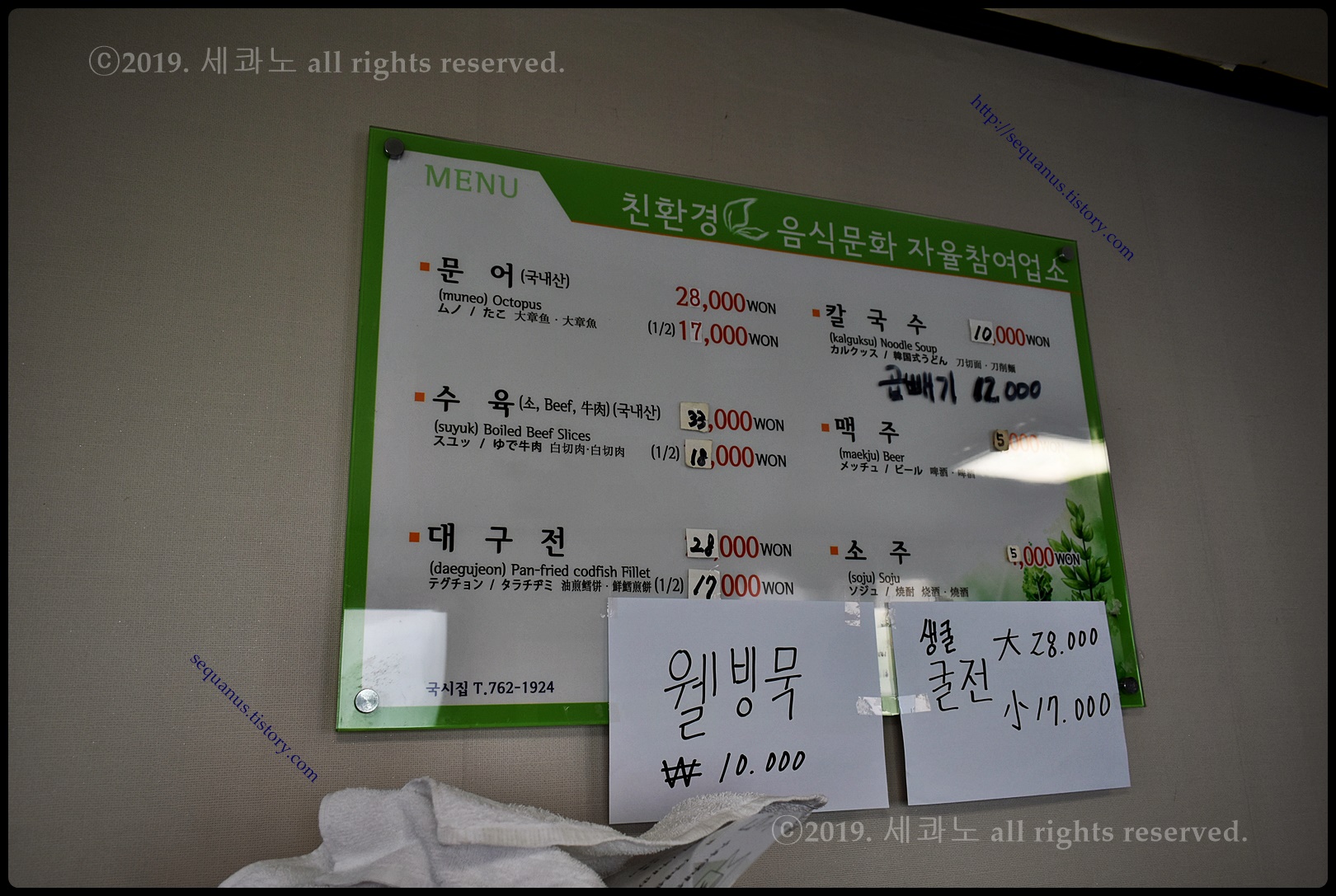 칼국수 10000원 (곱빼기 12000원)