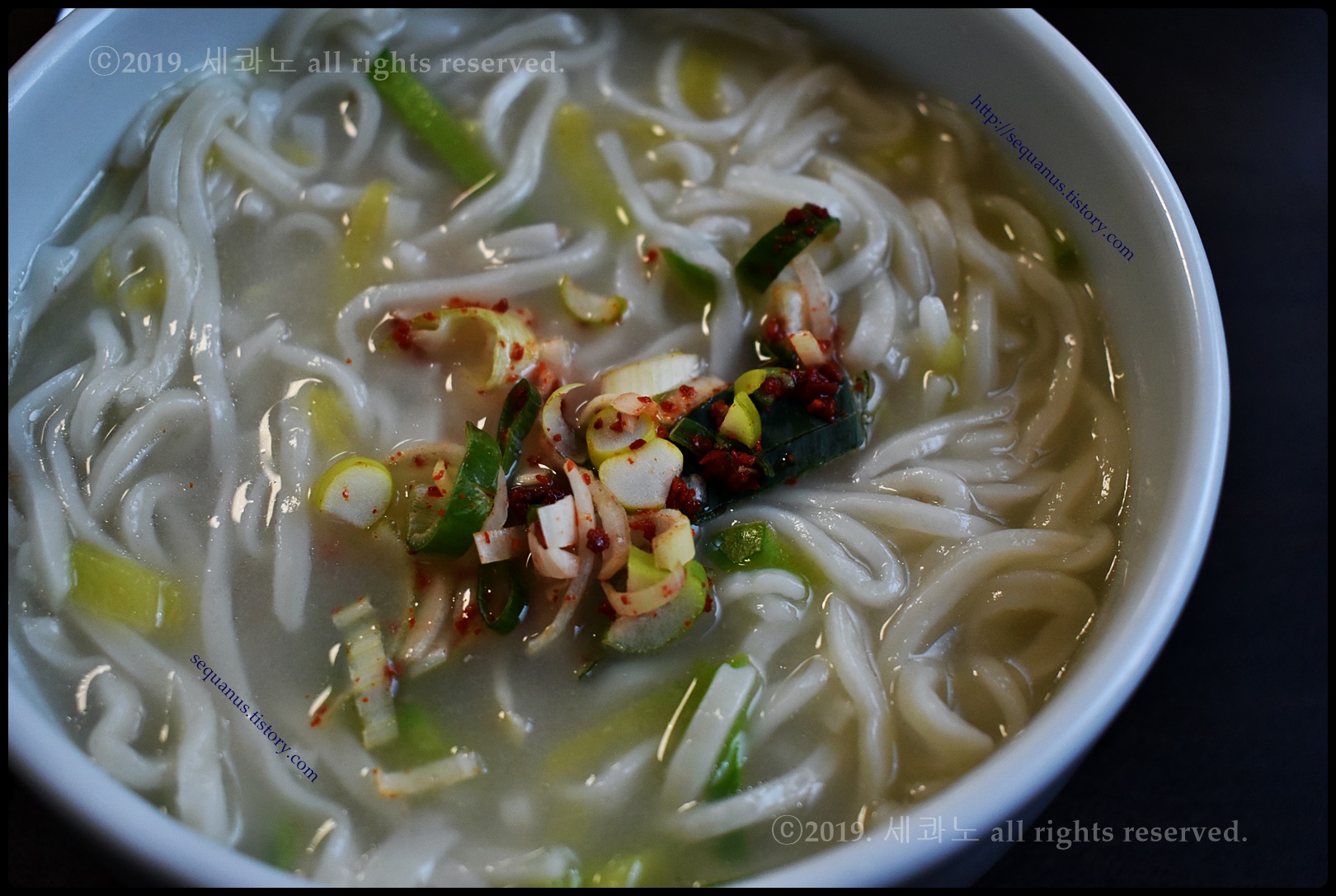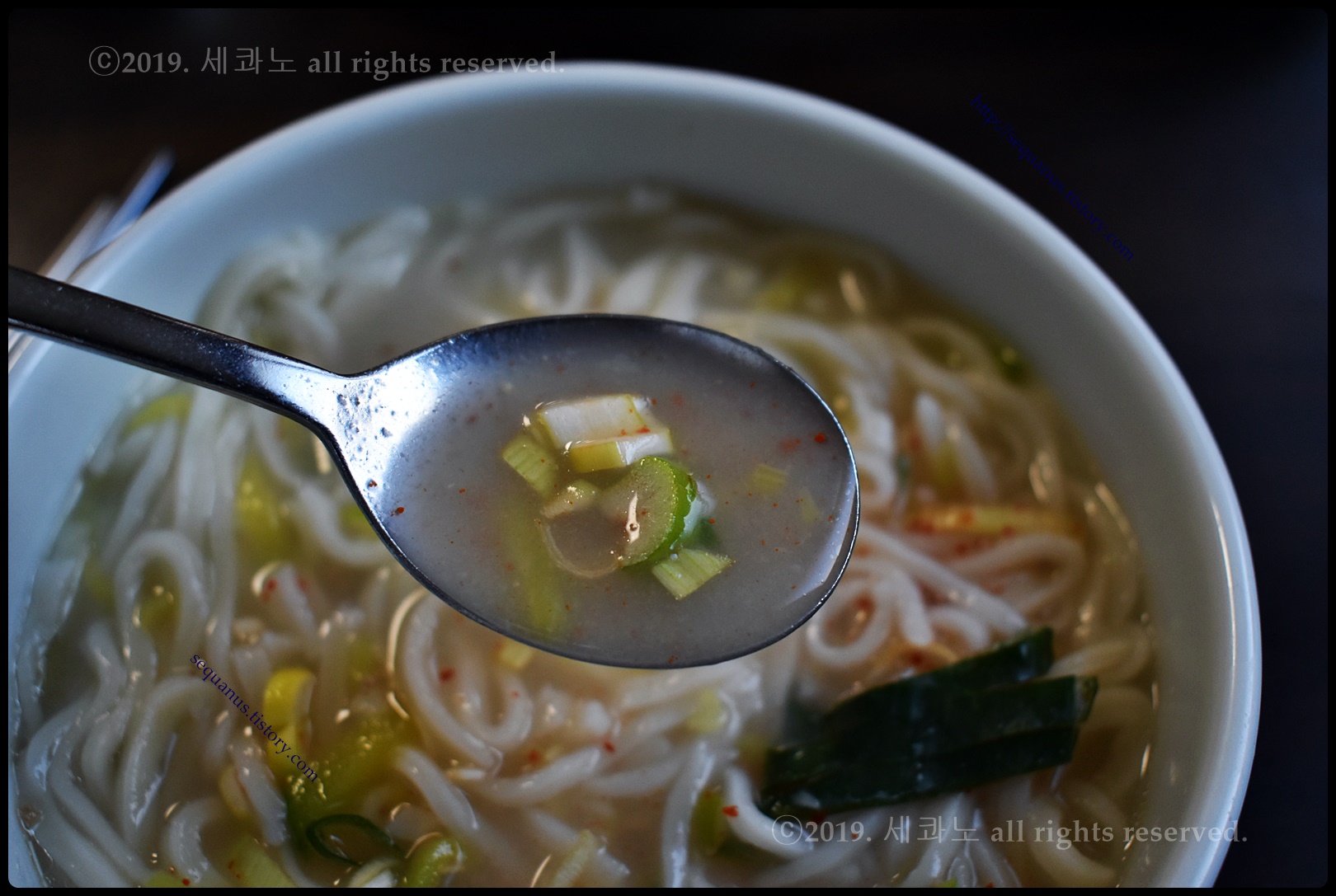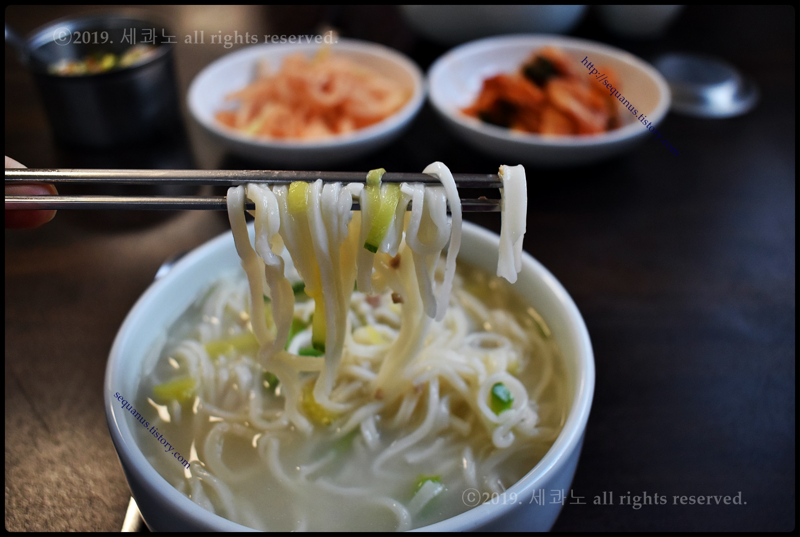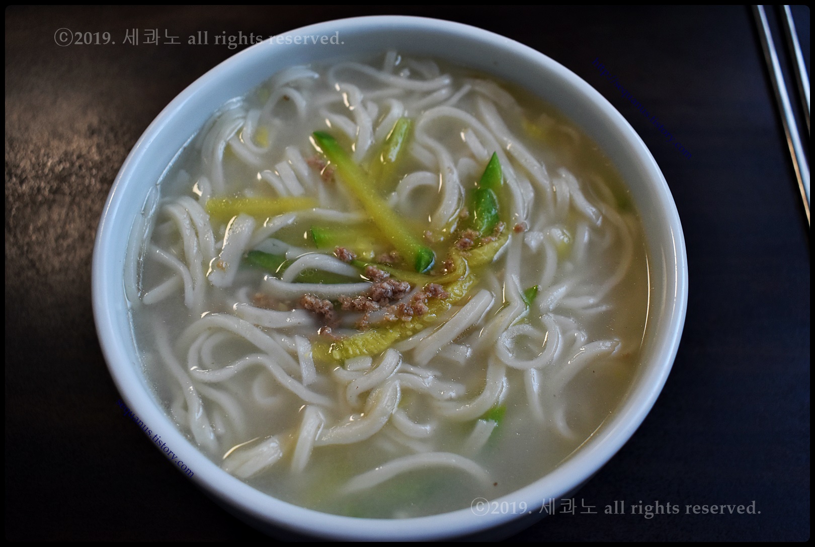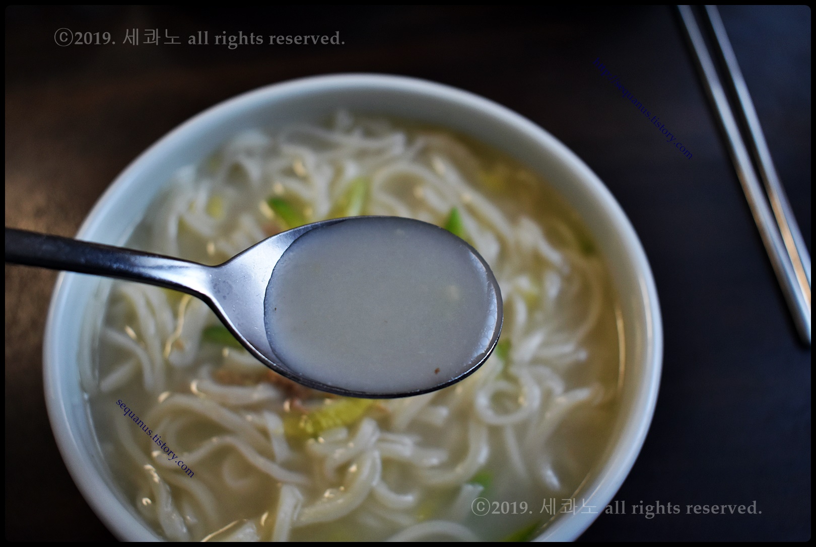 사골 국물을 사용하는 경상도식 안동국시를 사용하는 것으로