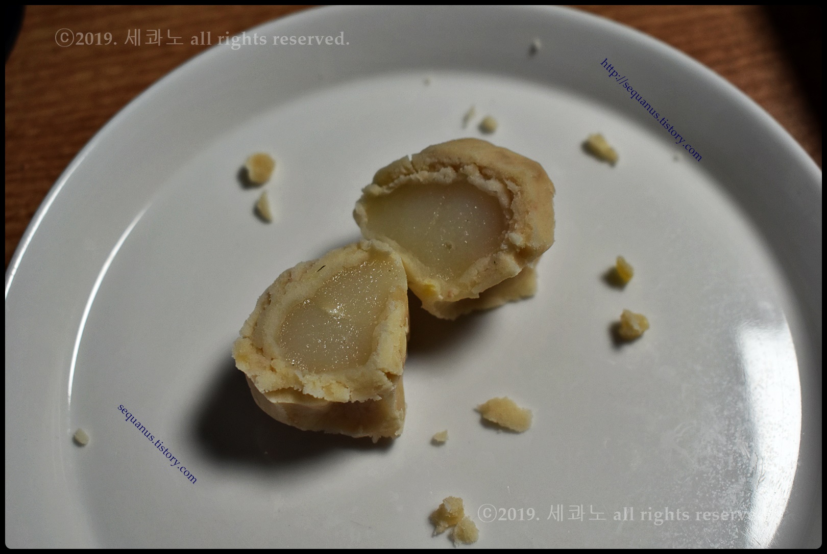 이곳에서는 하얗고 고소한 팥소가 떡을 감싸고 있는