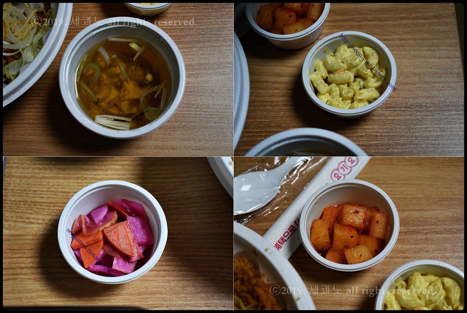 장국과 깍두기, 마카로니 샐러드, 무·당근 피클