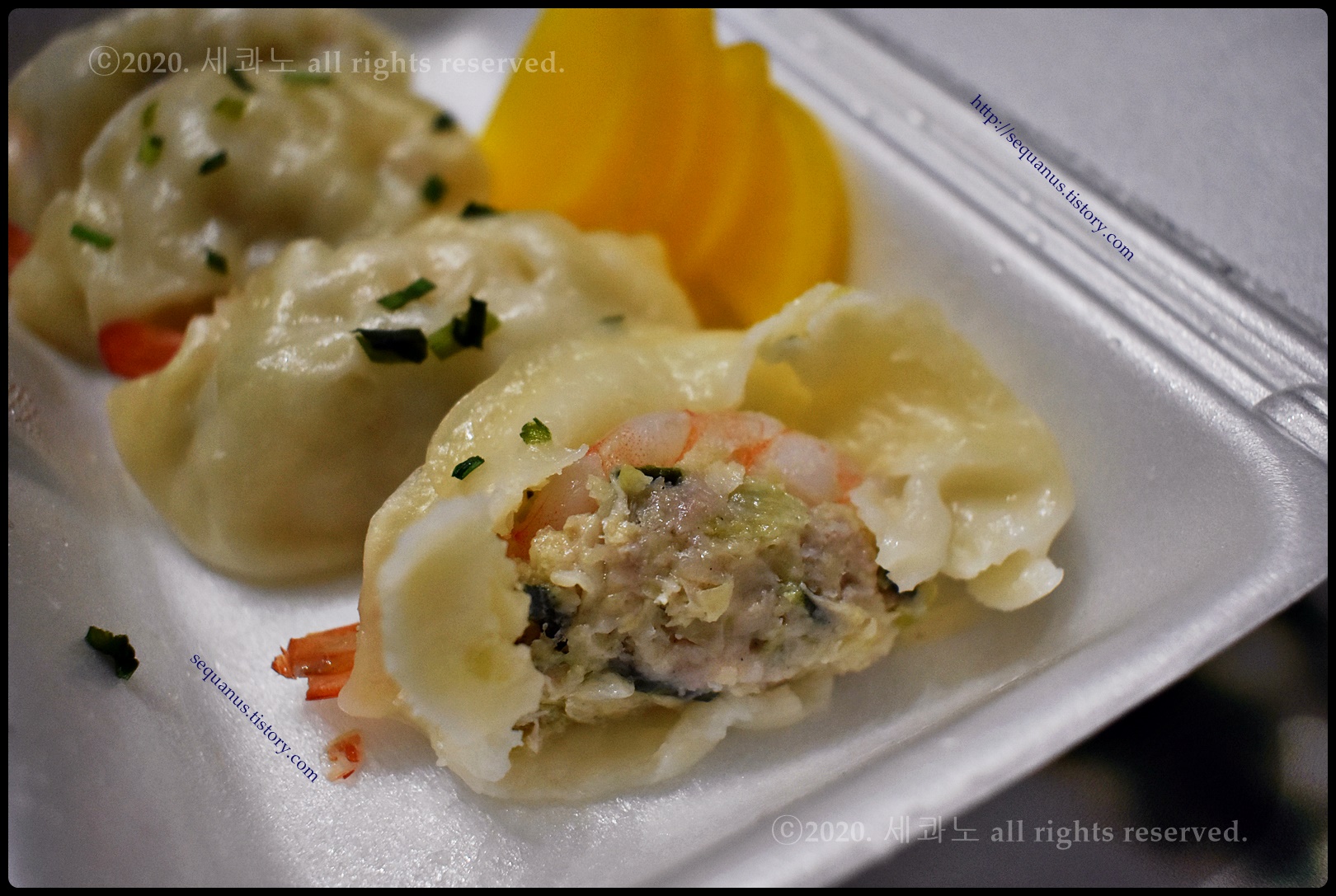 한국에서도 산동식 새우만두 그대로를 재현한다.