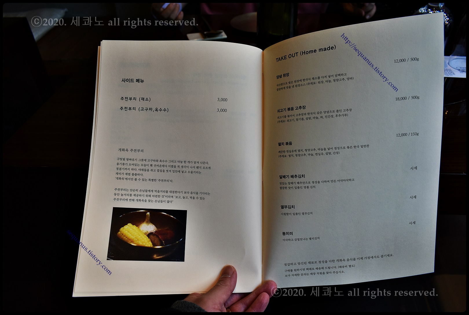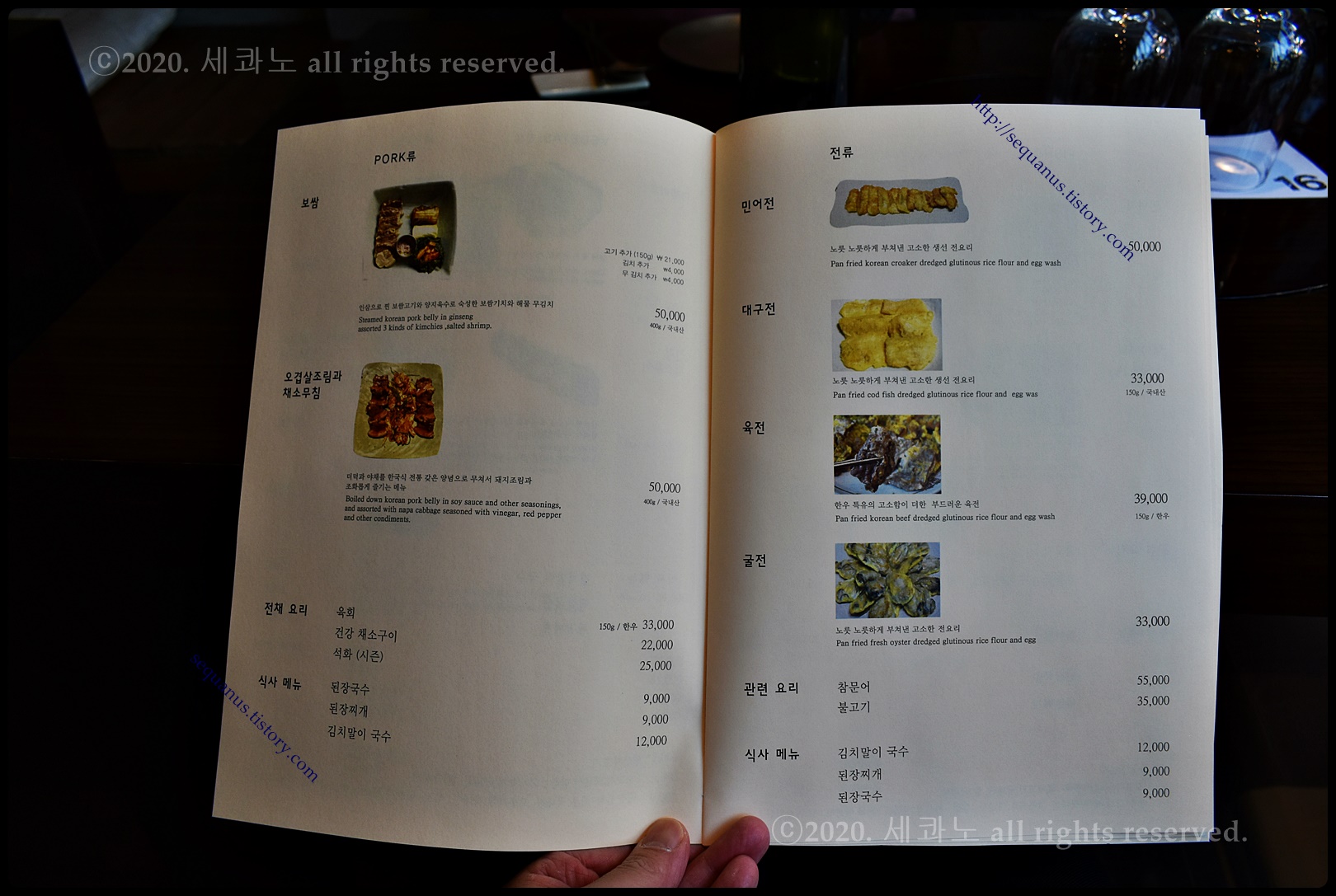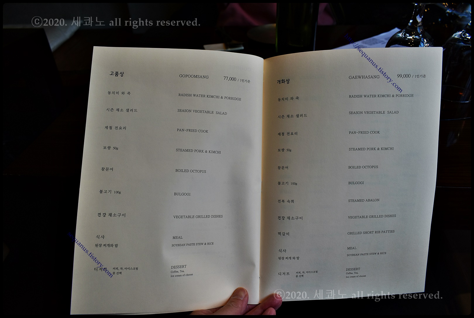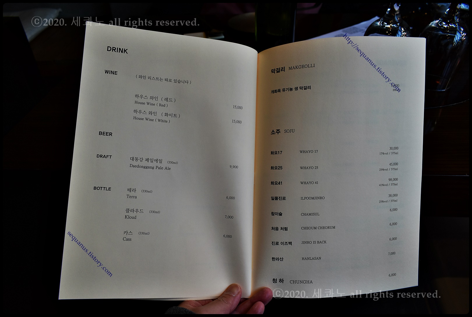 와인을 비롯해 막걸리, 그리고 한국 명주 등의 주류 메뉴판