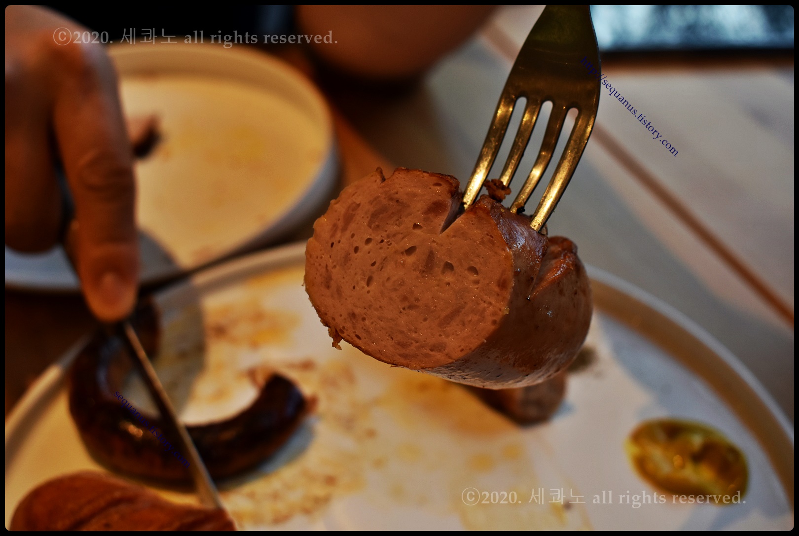 그런데 먹기 전에는 수제 햄, 수제 소시지라 해서