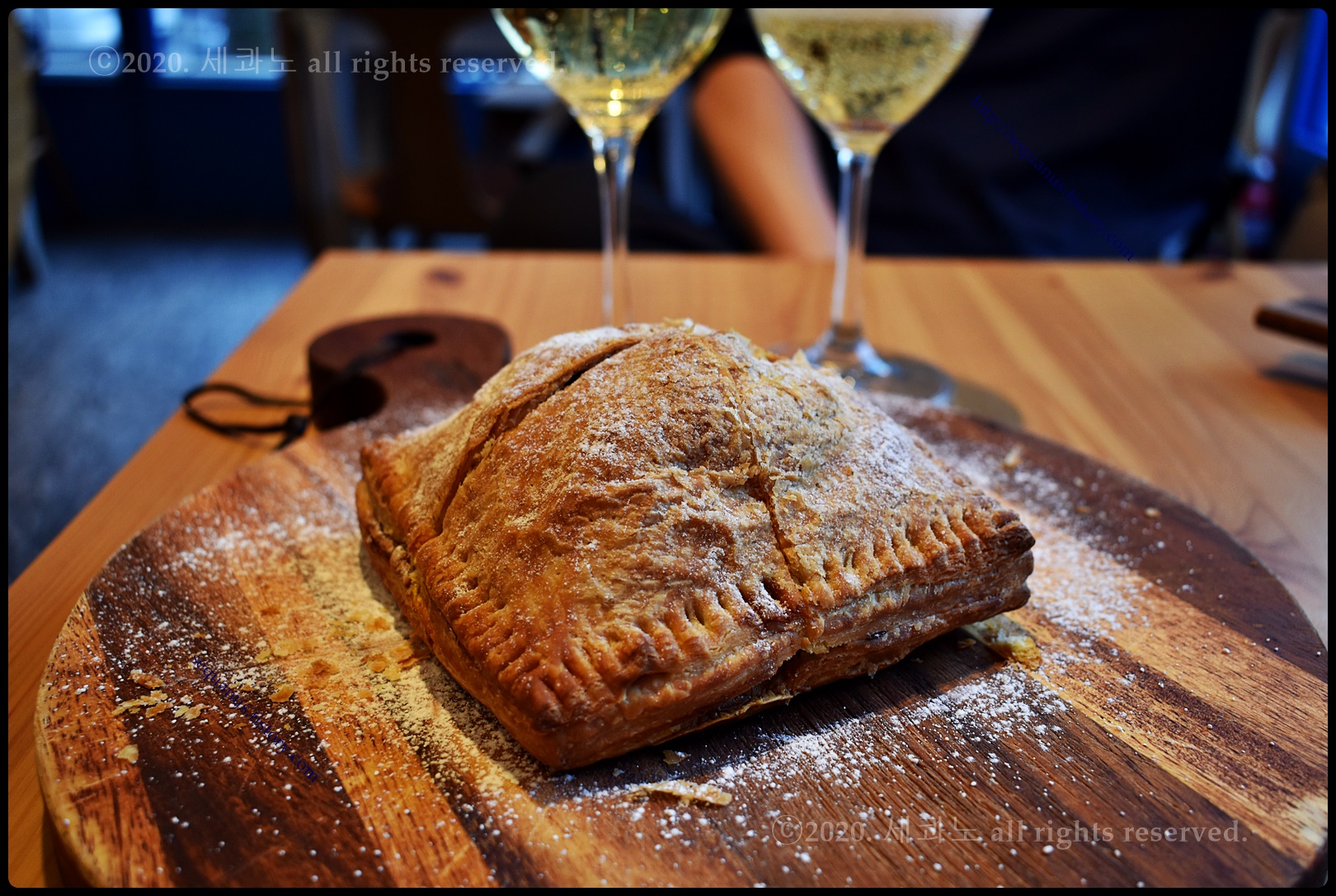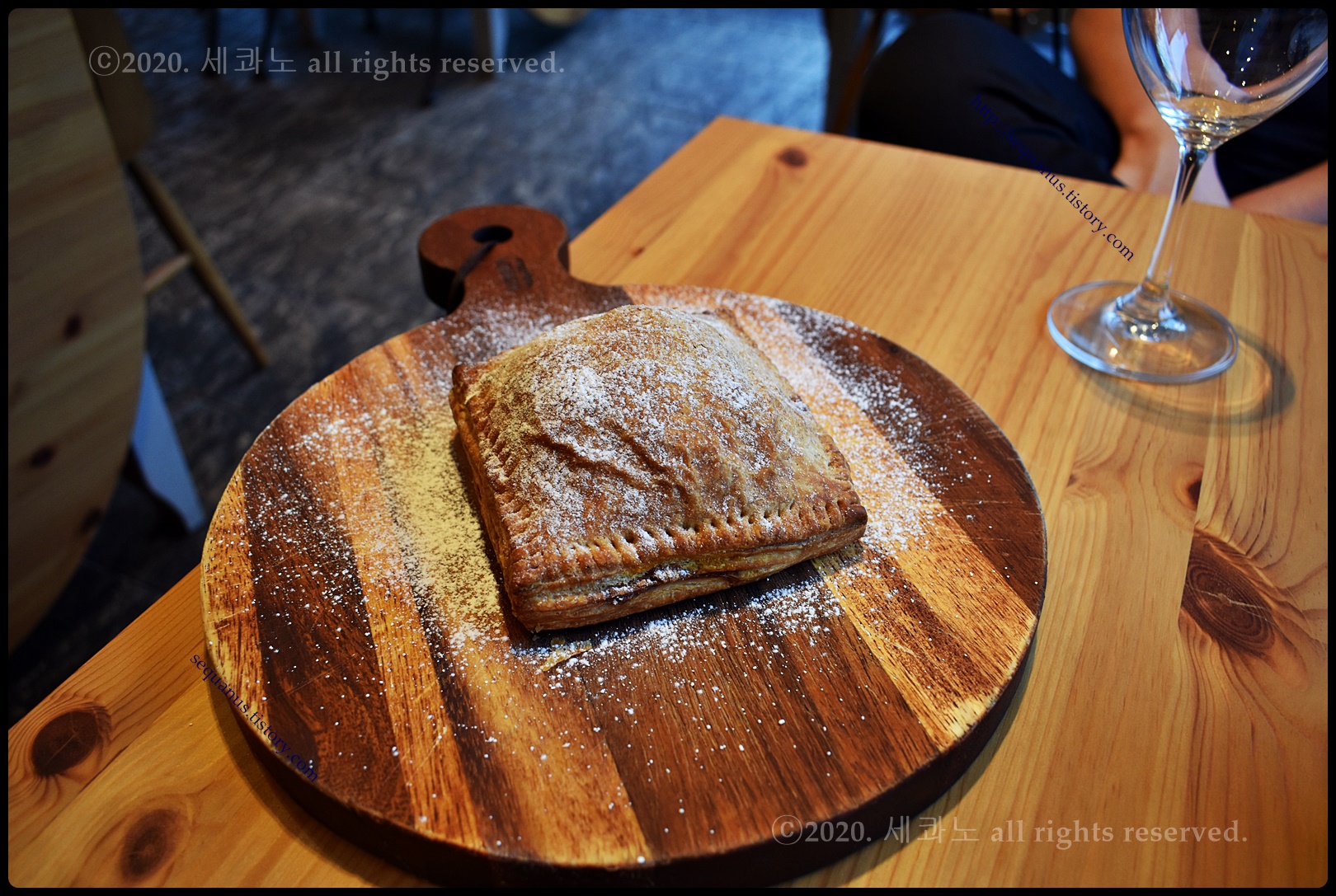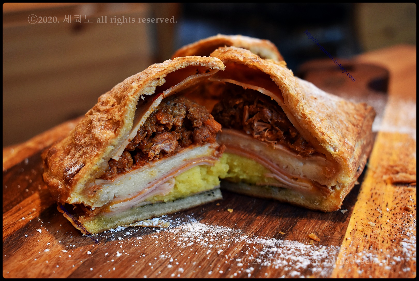 슈가파우더가 듬뿍 뿌려진 고기파이는