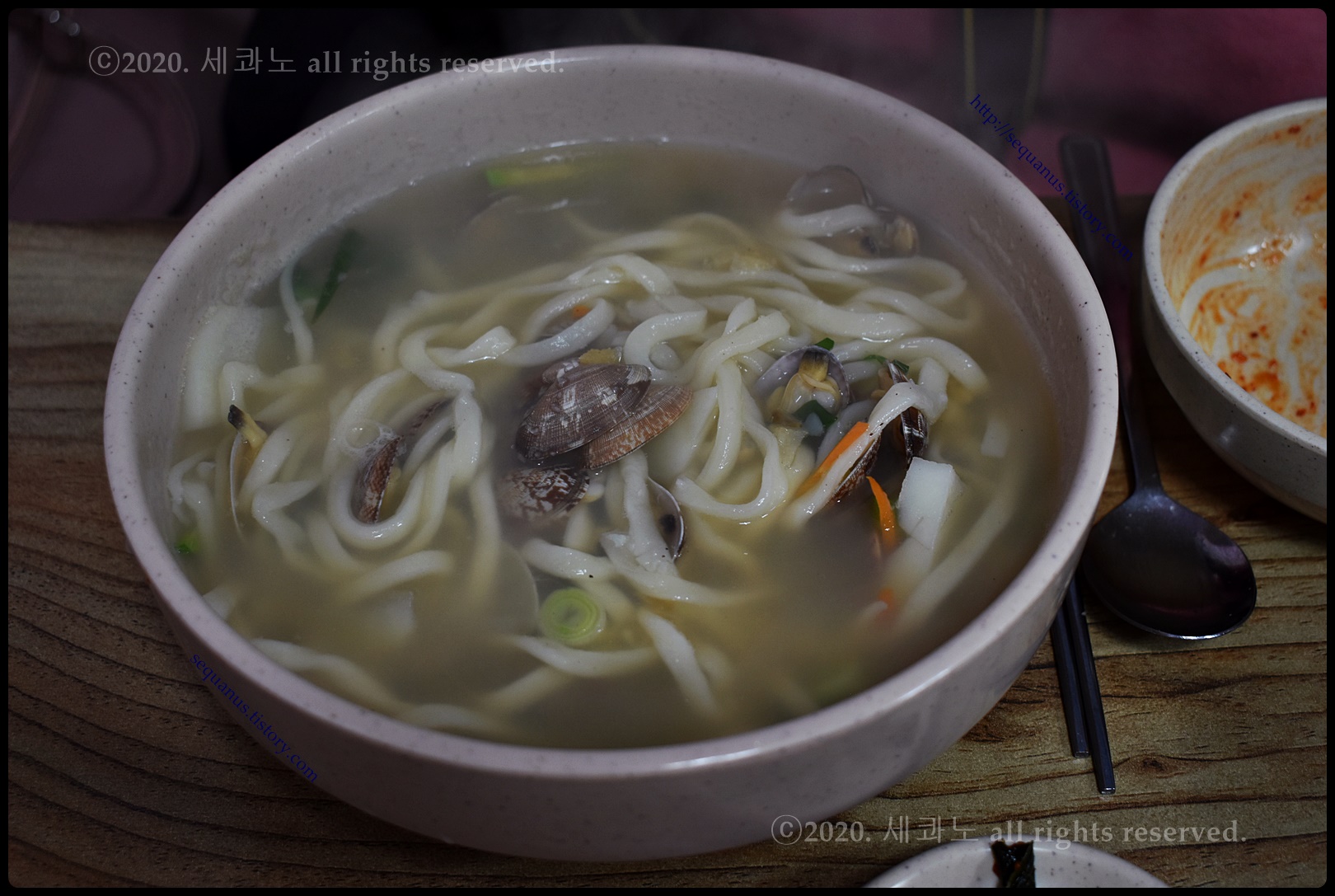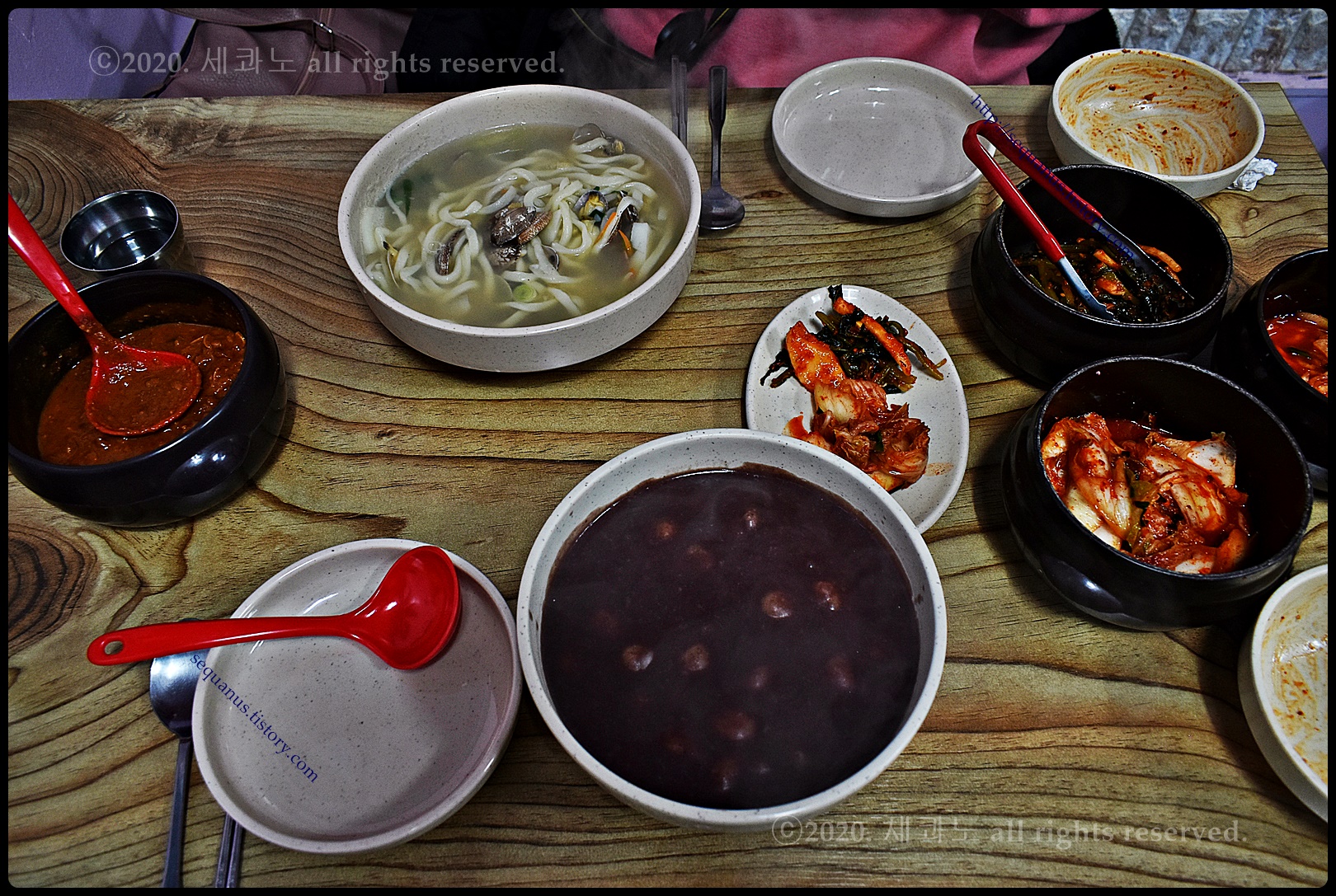 팥옹심이와 바지락 칼국수 하나를 주문했었고