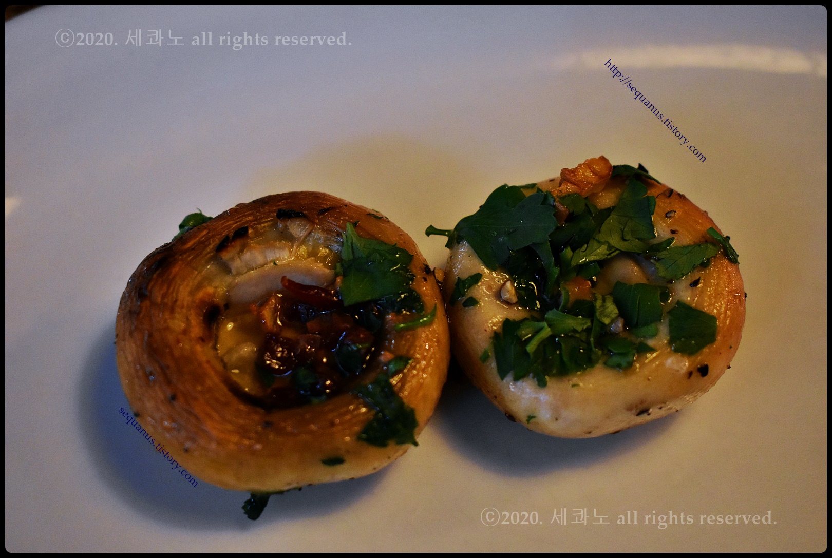 양송이버섯 안에 초지로 햄이 들어가 있고