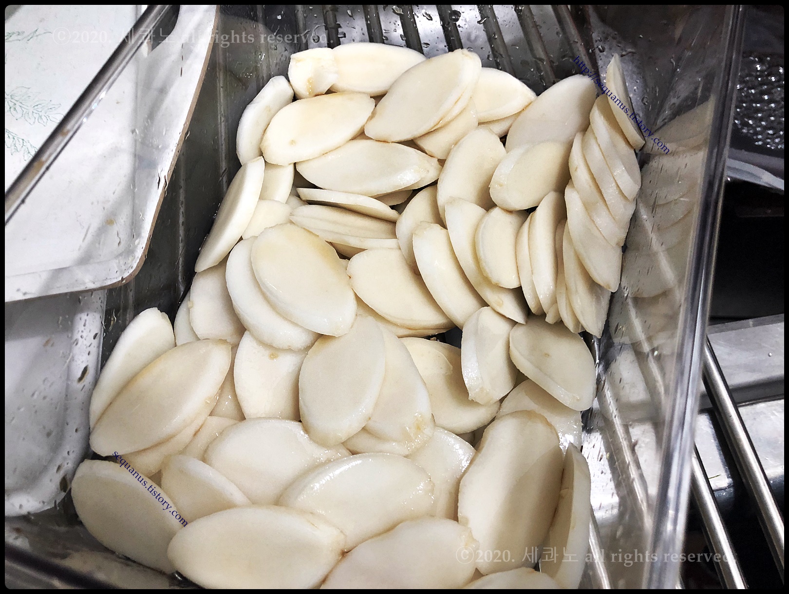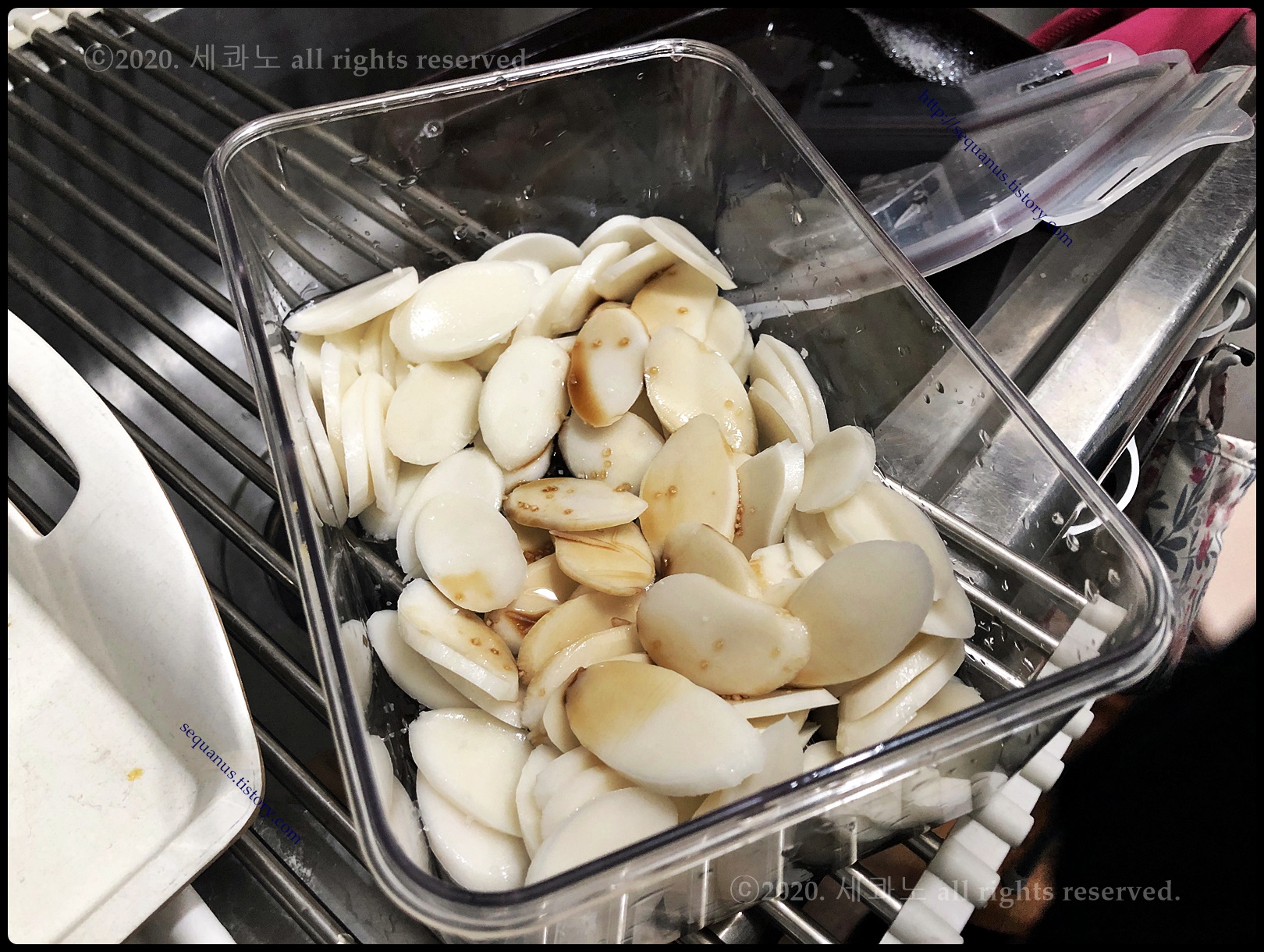 잘 씻어 준비된 떡국 떡에