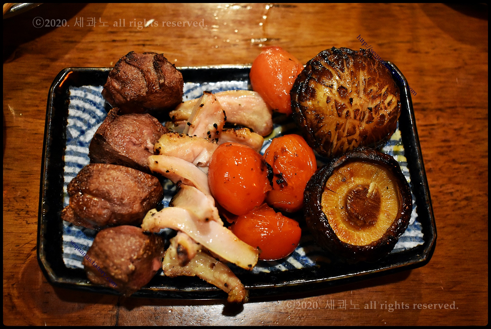 옆에는 닭 연골, 방울토마토, 표고버섯 순이다.