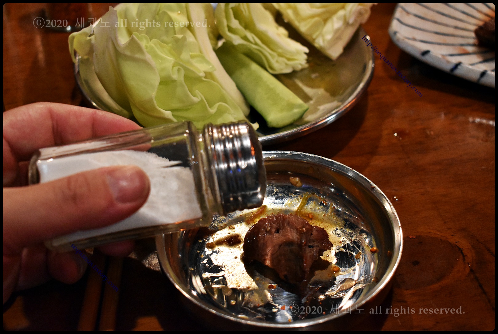 그리고 같이 나온 매콤한 양념장과 함께 먹어도 좋더라