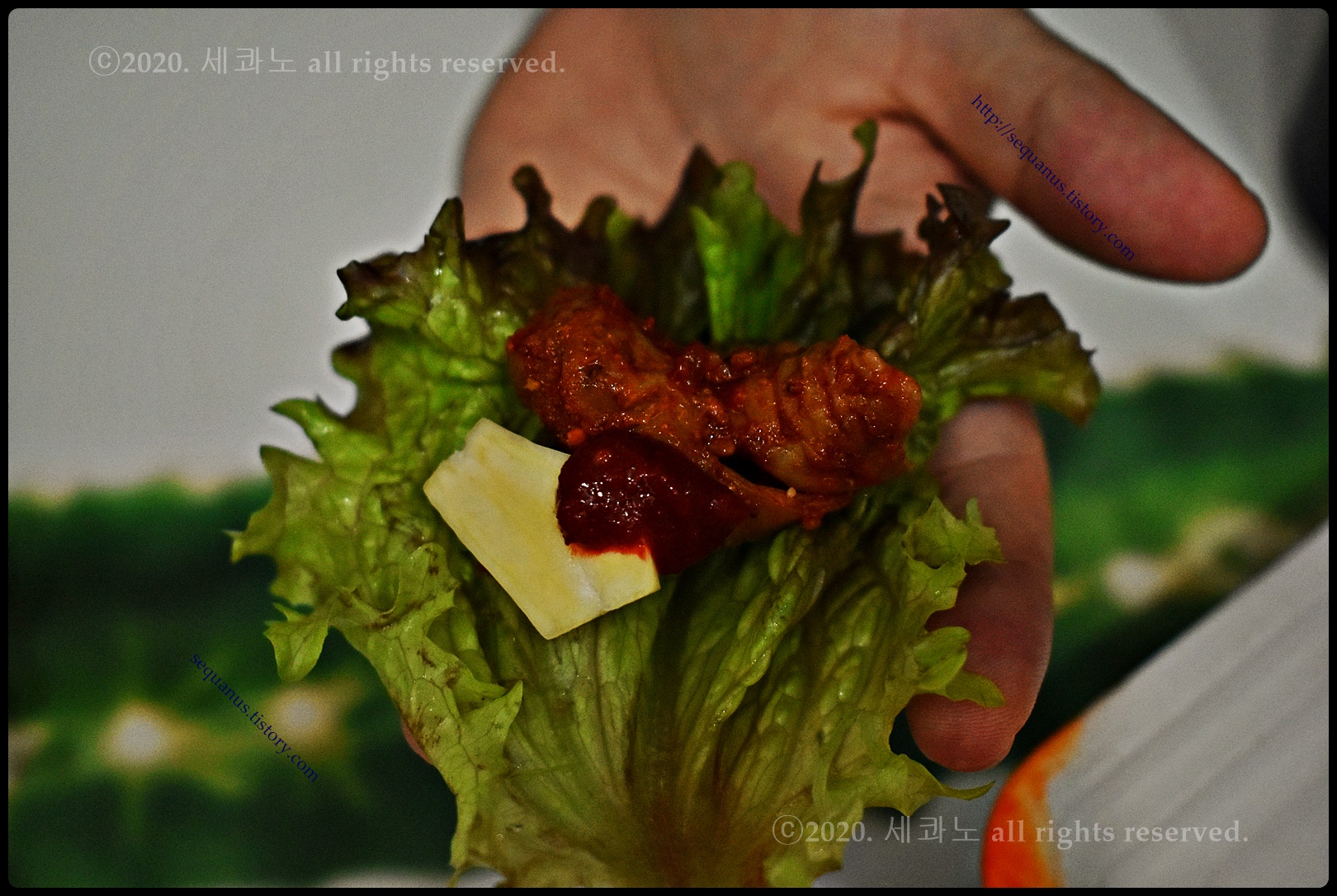 상추로 쌈을 싸서 가려주면 되는 것이고...