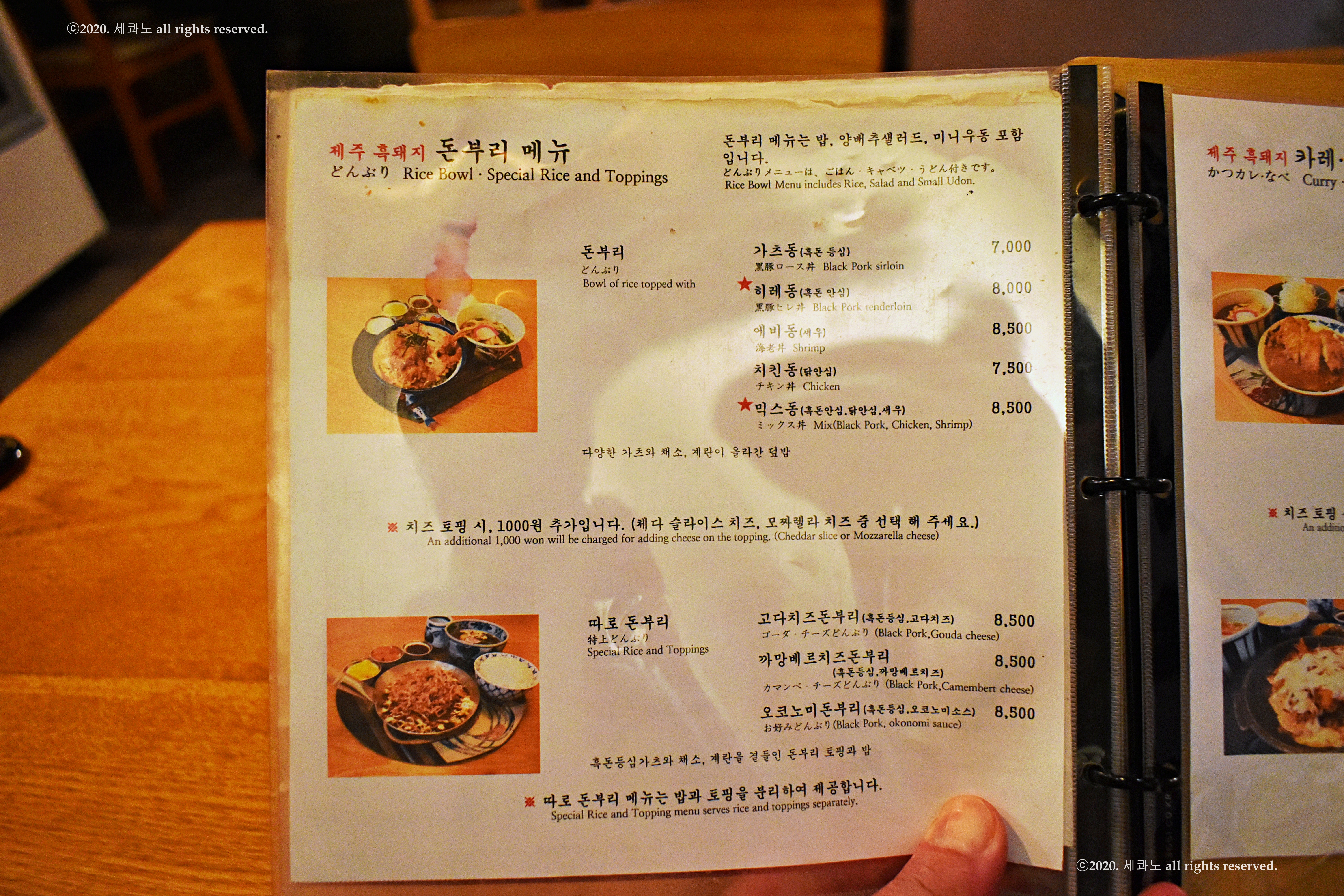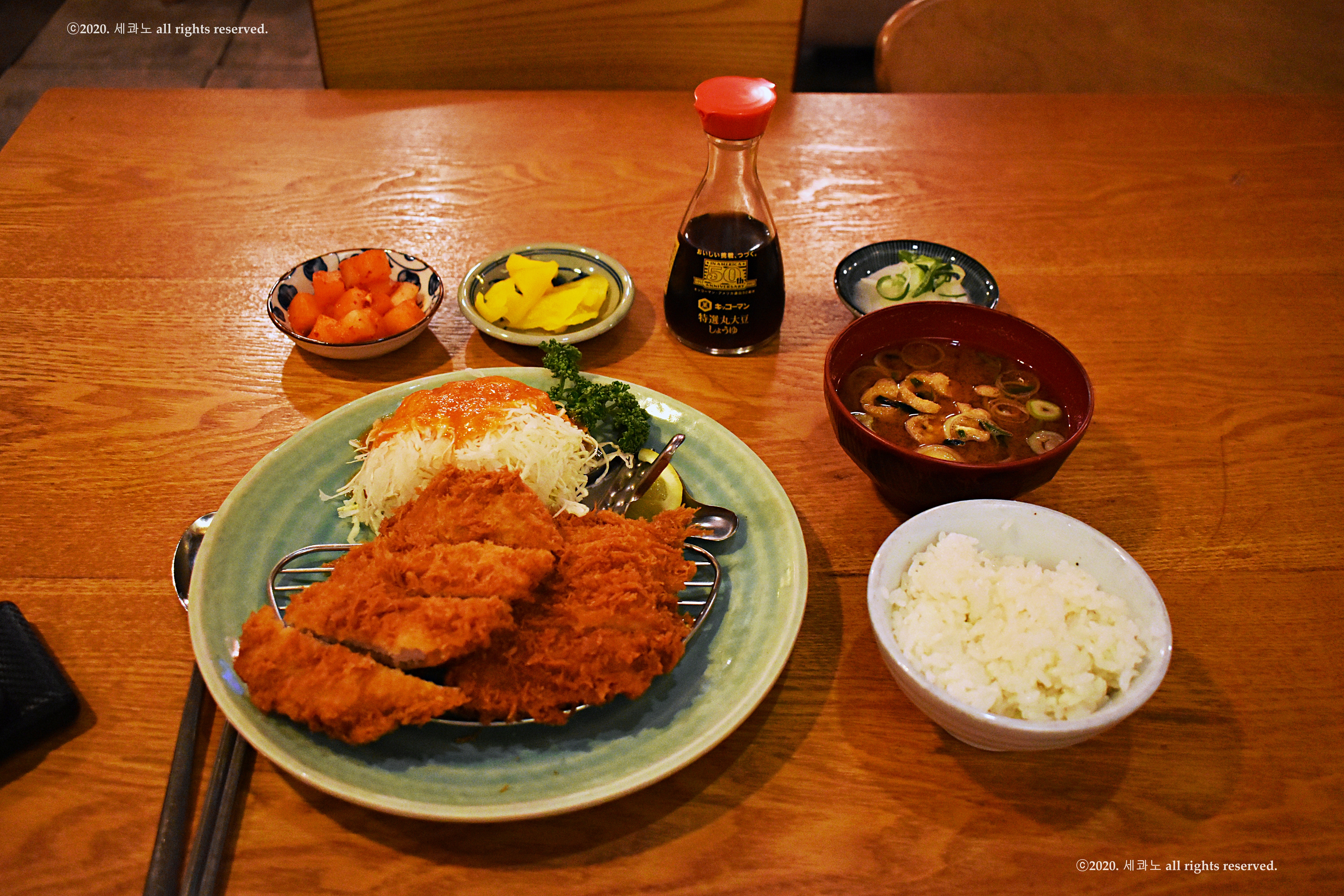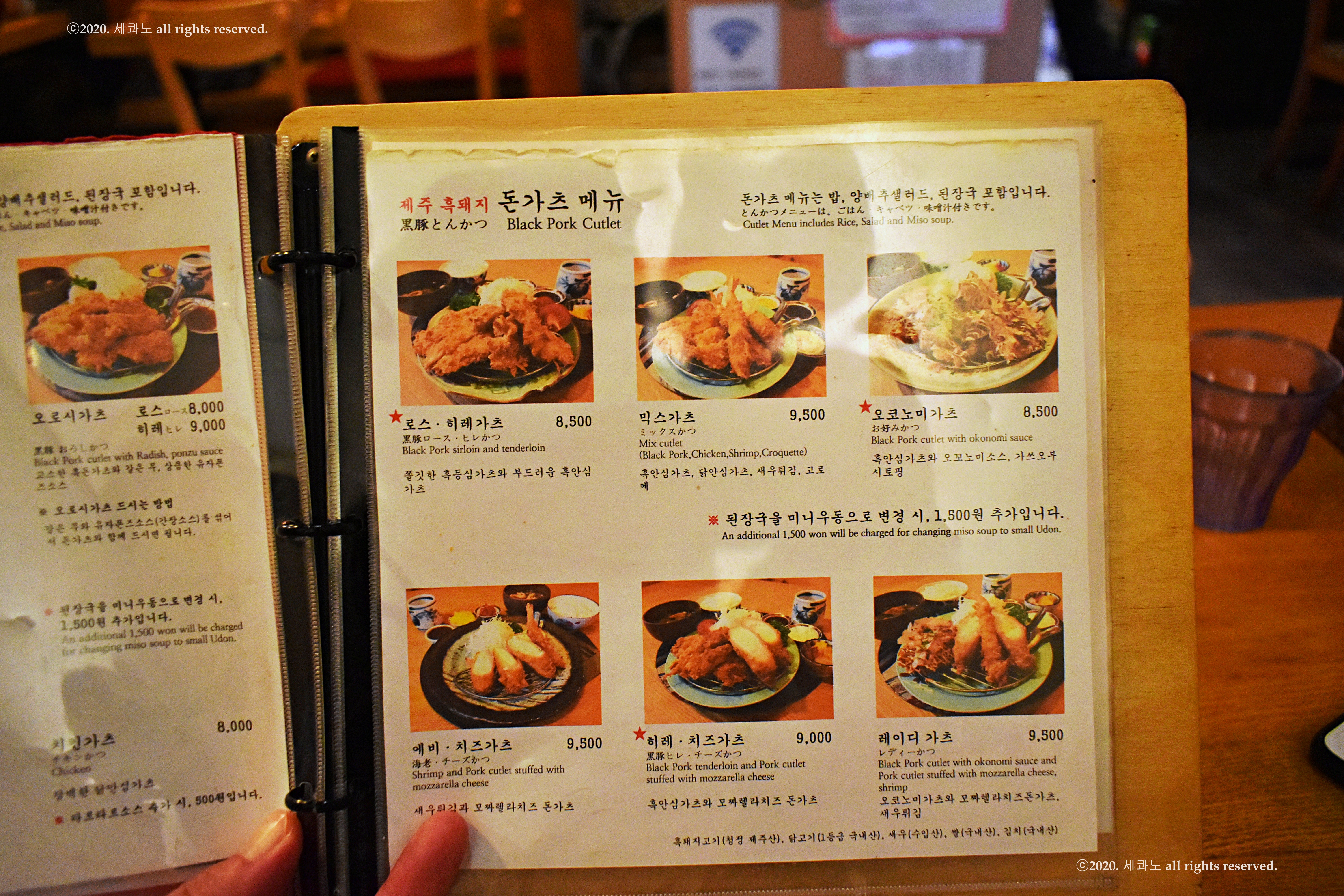 모든 돈가츠 메뉴는 밥, 양배추샐러드, 된장국 포함으로