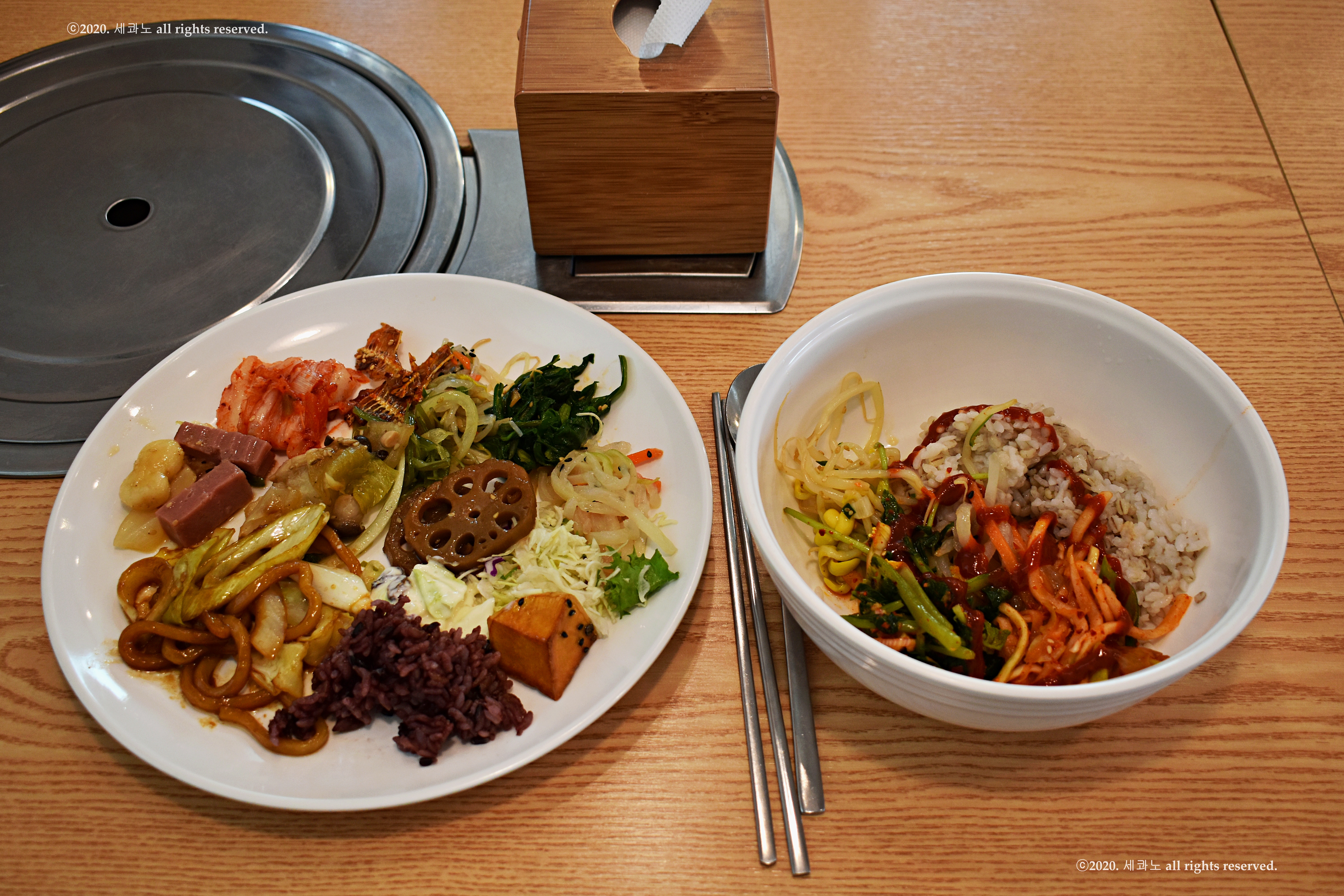 비빔밥 코너와 라면, 음료 코너가 있다.