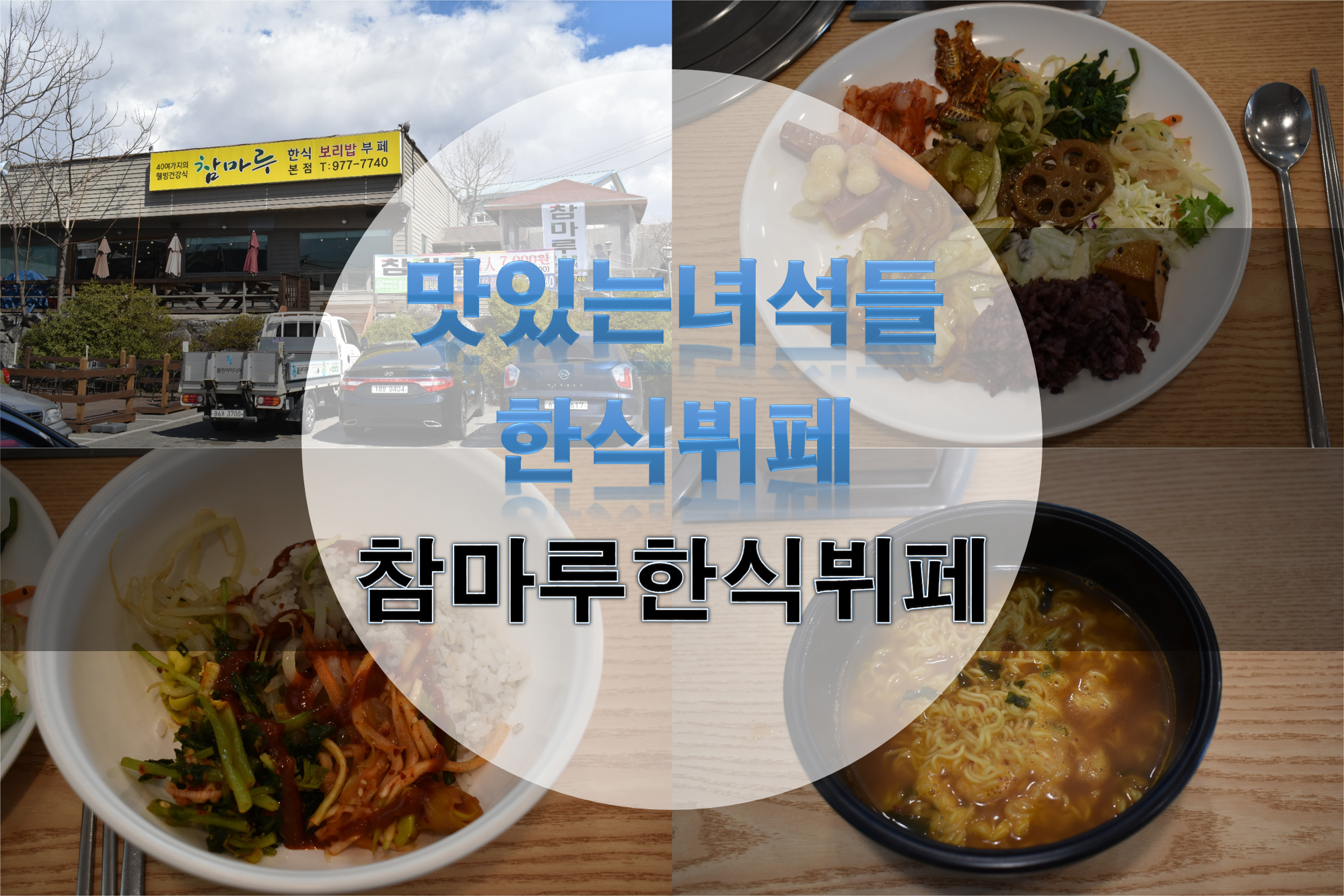 간판으로는 참마루 한식 보리밥 부페 본점이라 되어 있다.