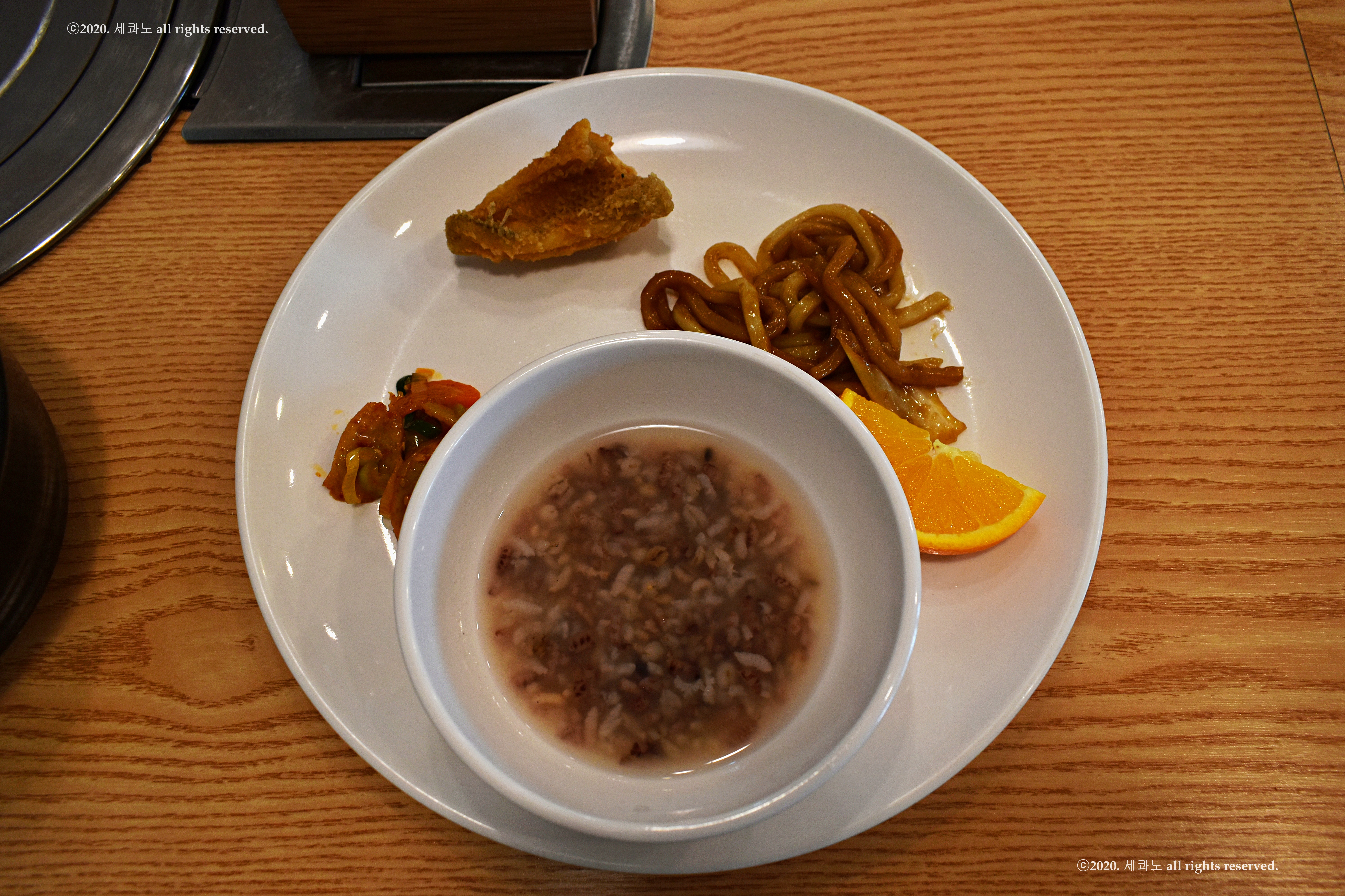 후식으로는 오렌지와 숭늉을 떠 왔다.