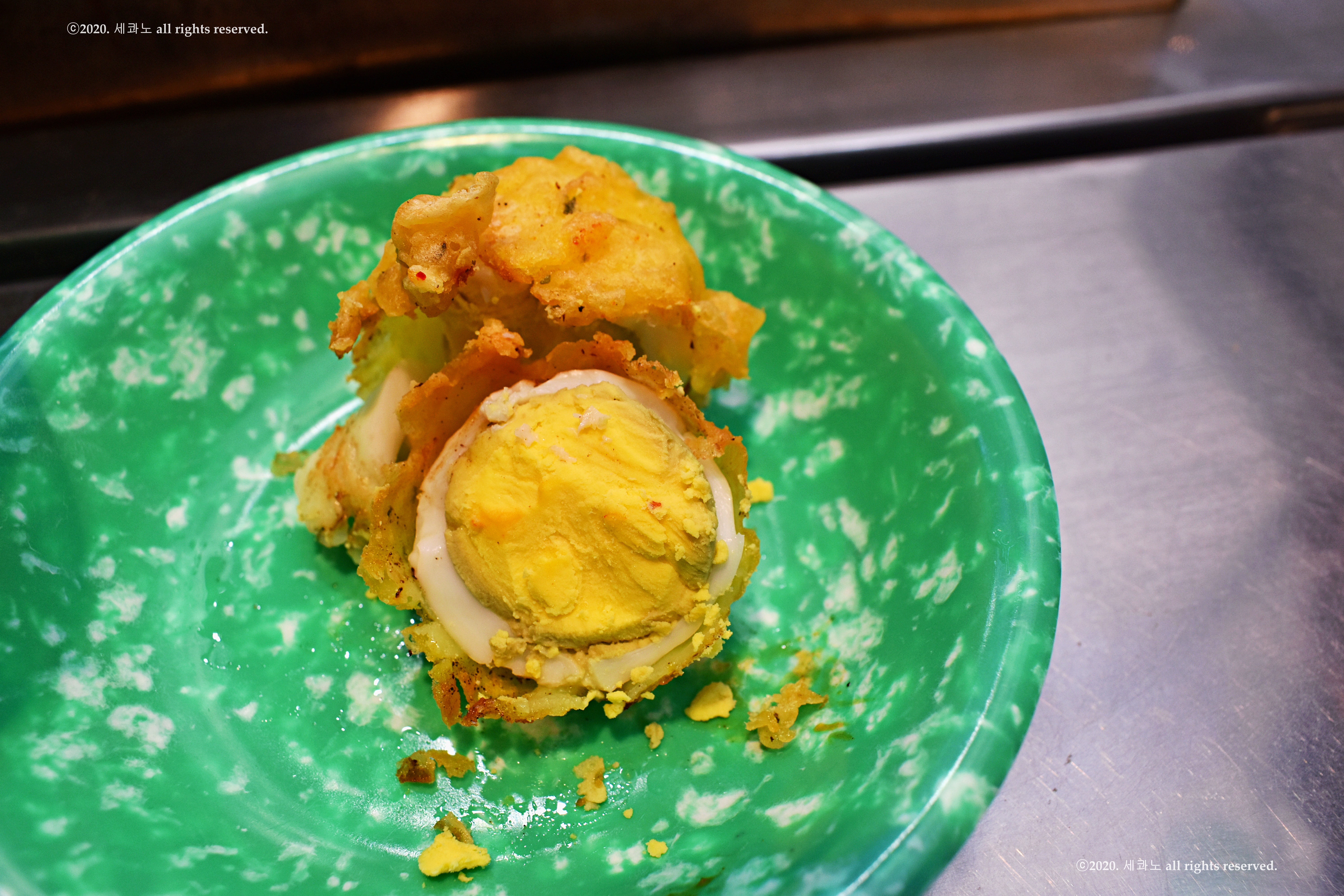 김말이, 고구마, 계란, 만두 튀김 각 500원