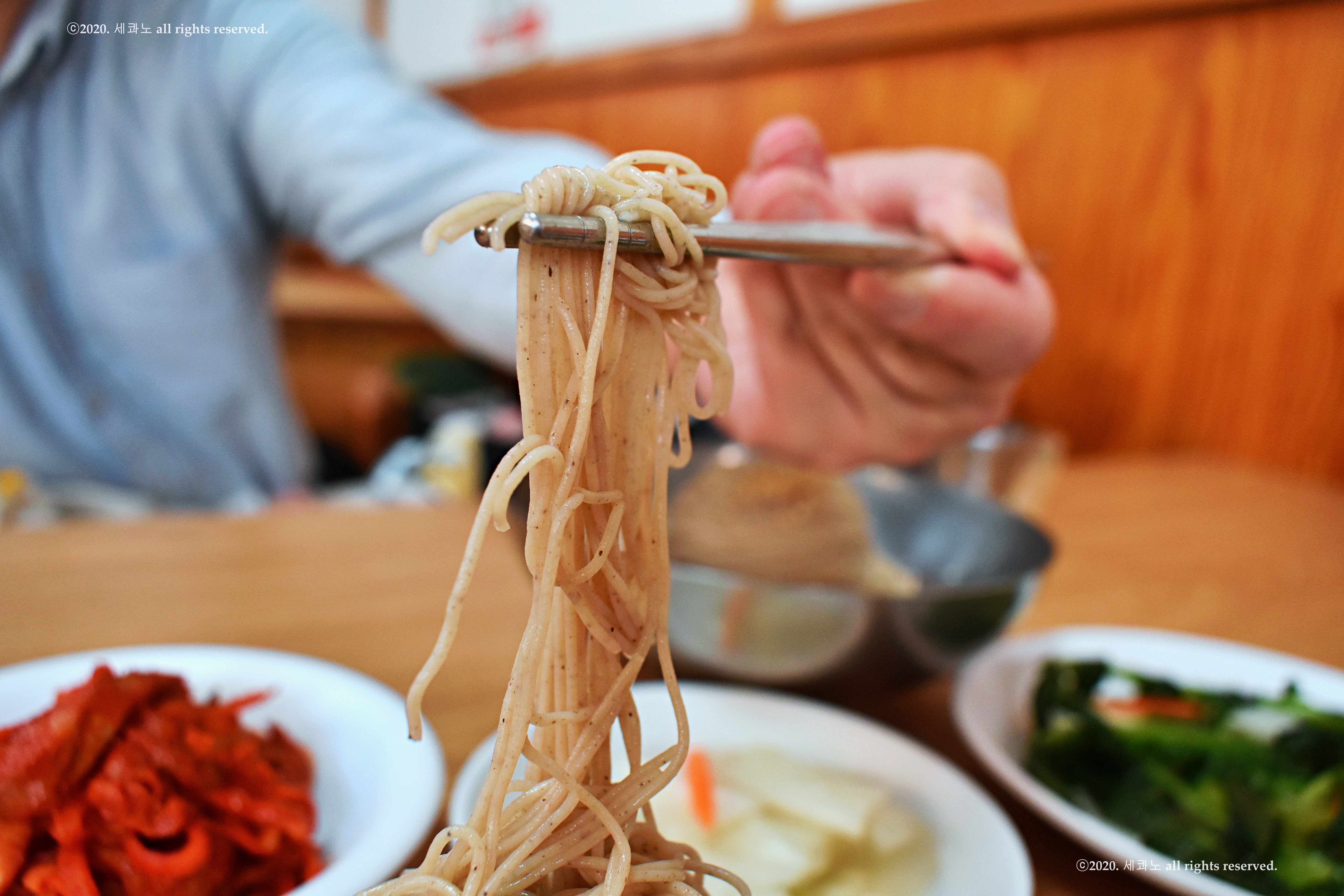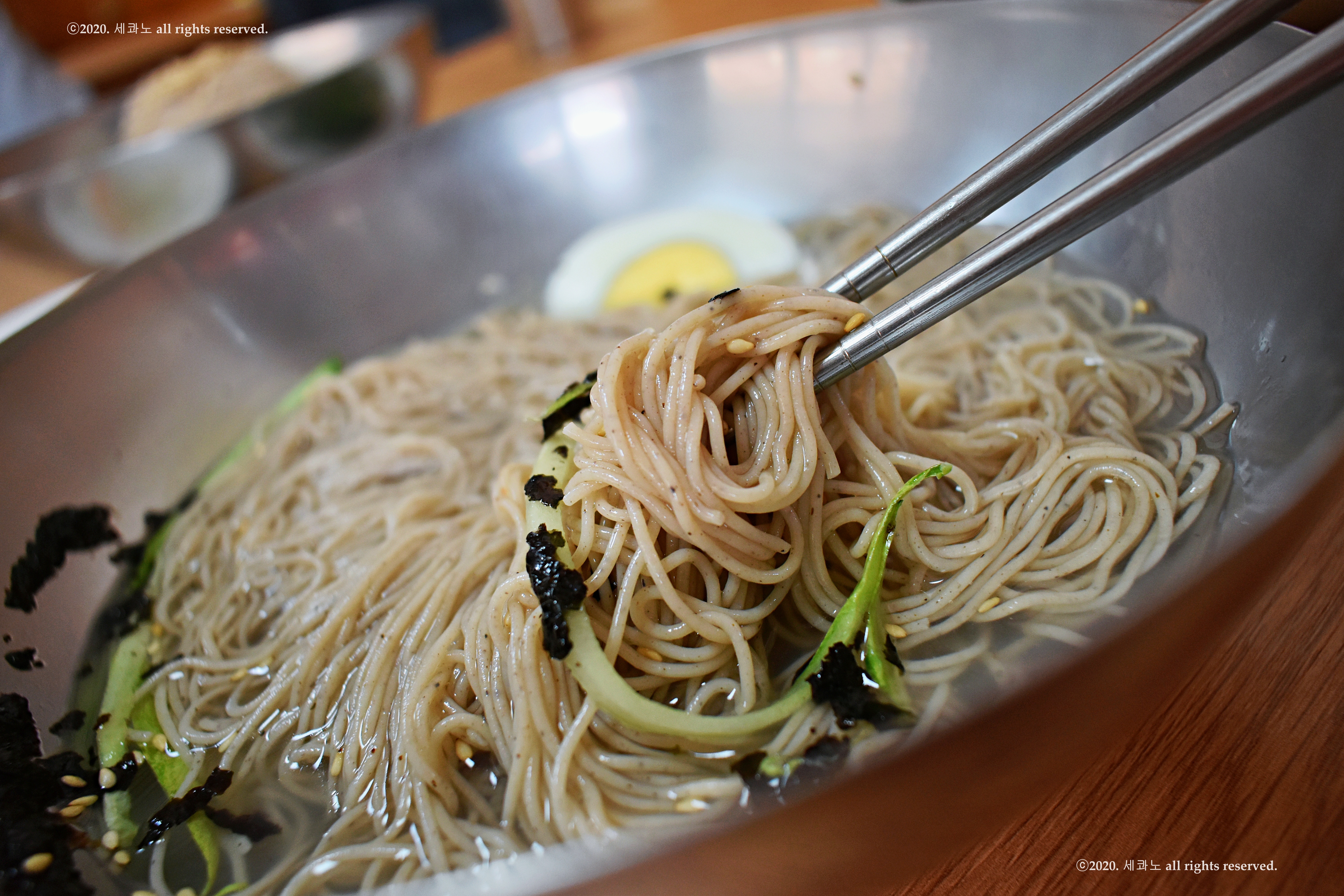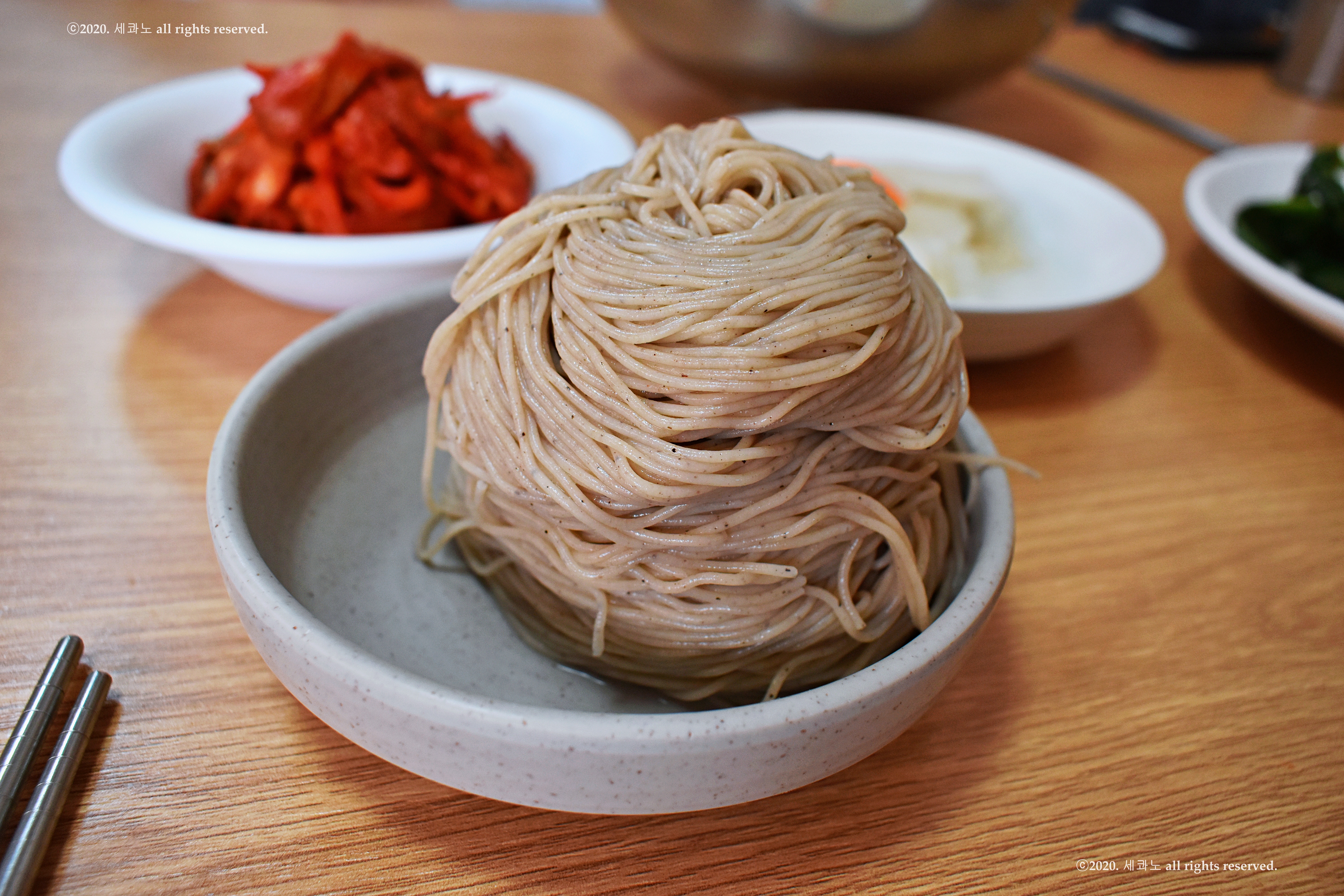 그런데 생각보다 메밀 향, 맛이 강하지 않다.