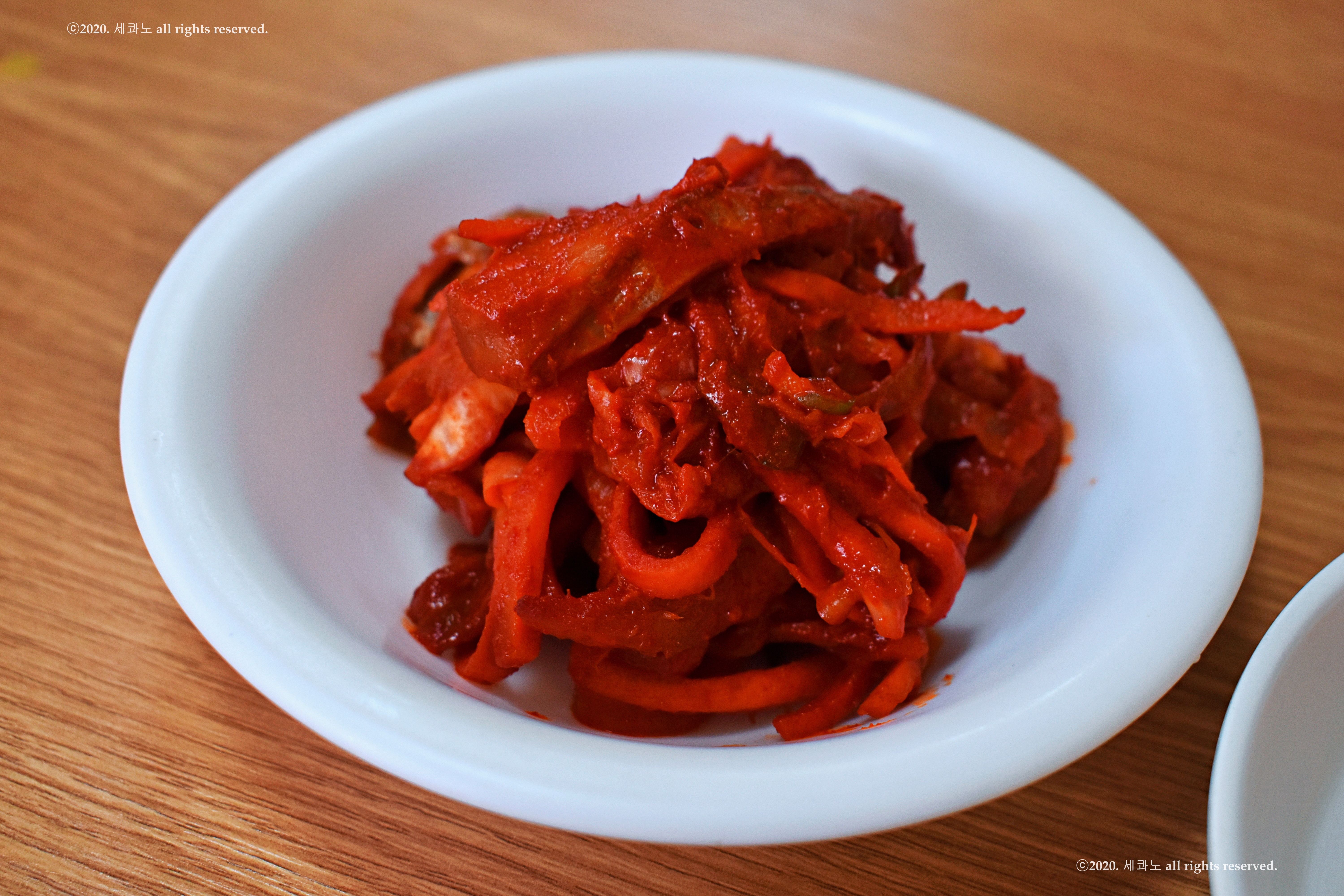 같이 나온 찬들 중에서는 명태 식해, 명태 회무침과 같이 먹는 게 가장 나았고