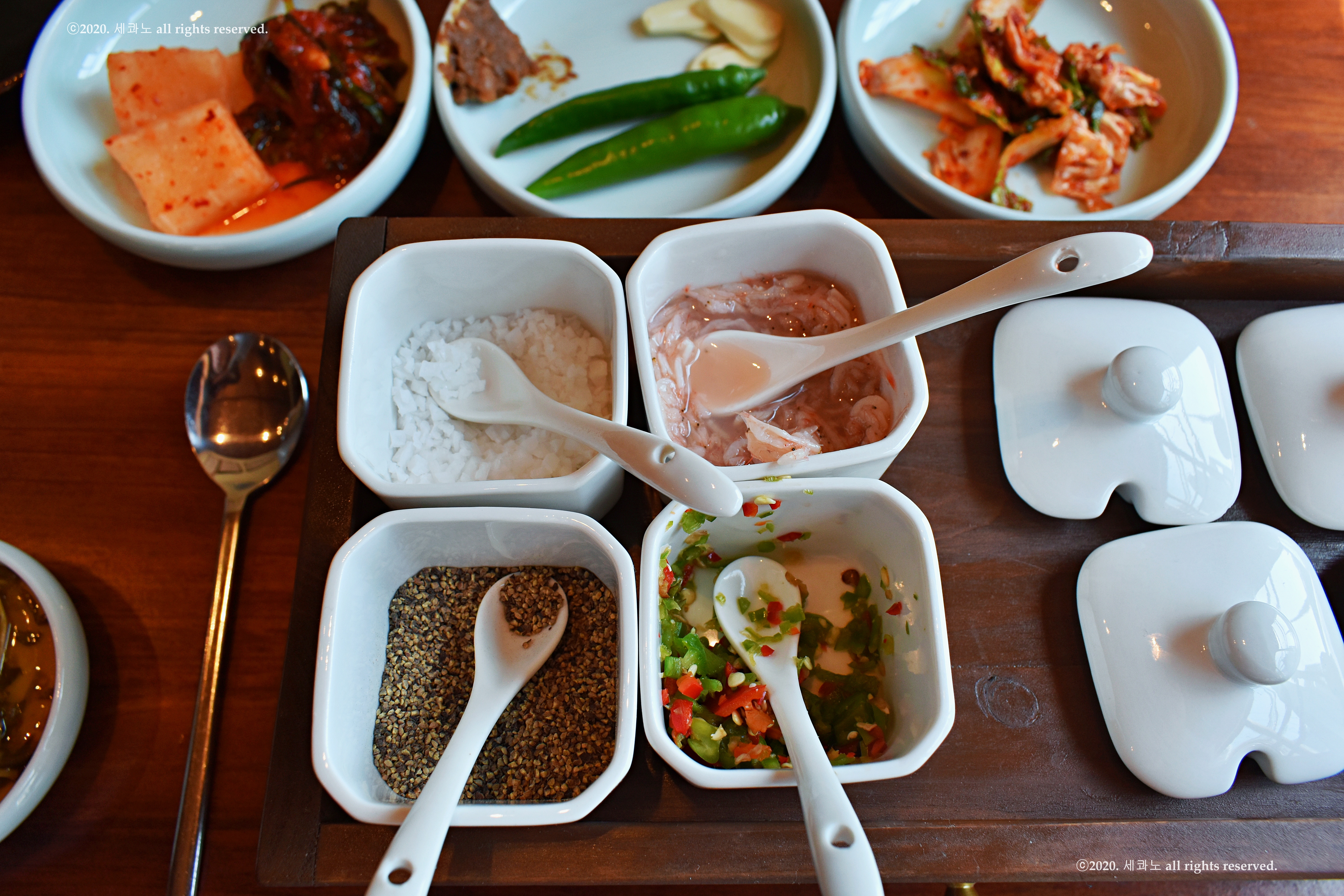 한쪽에 따로 준비되어 있던 새우젓과도 함께 먹어보고
