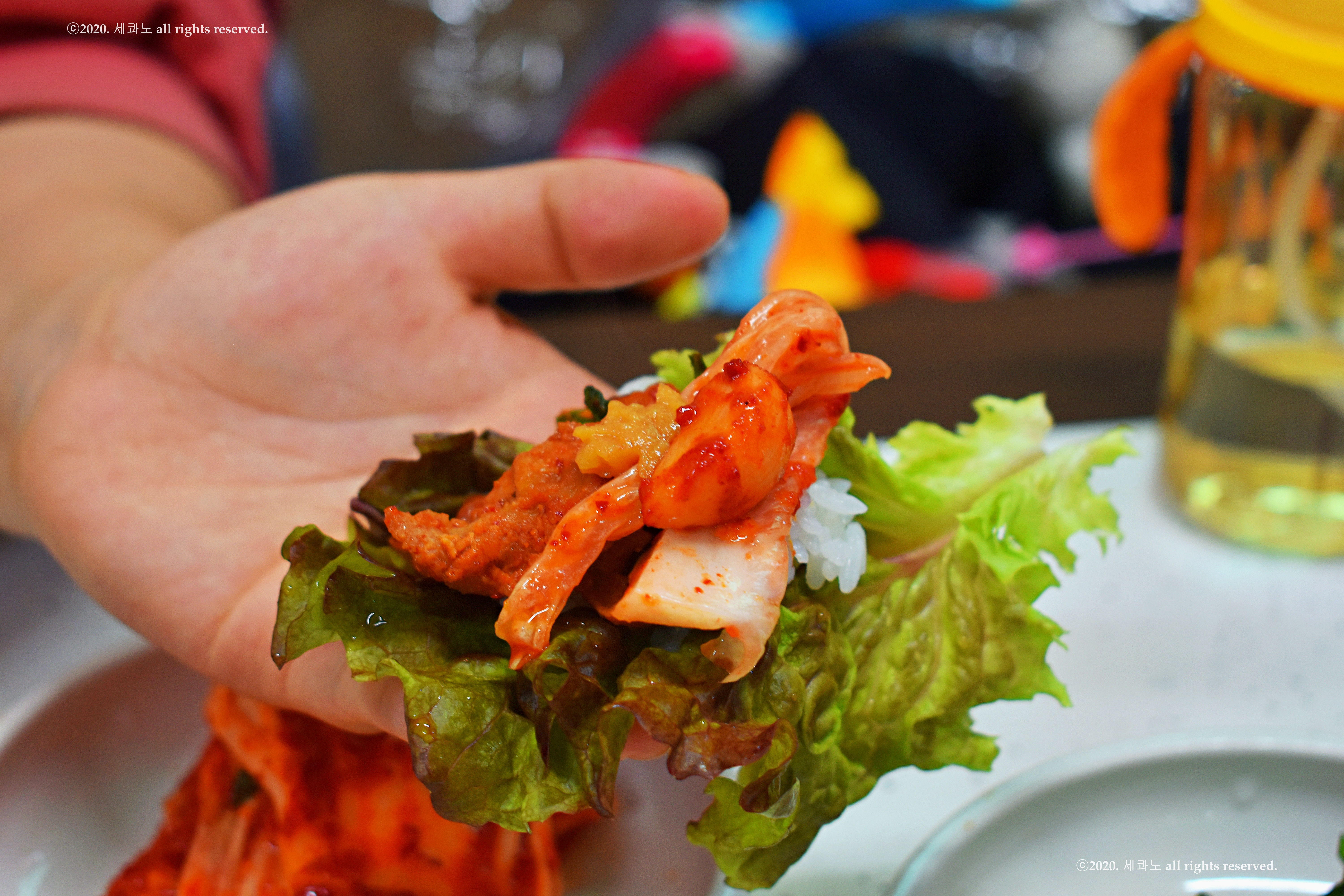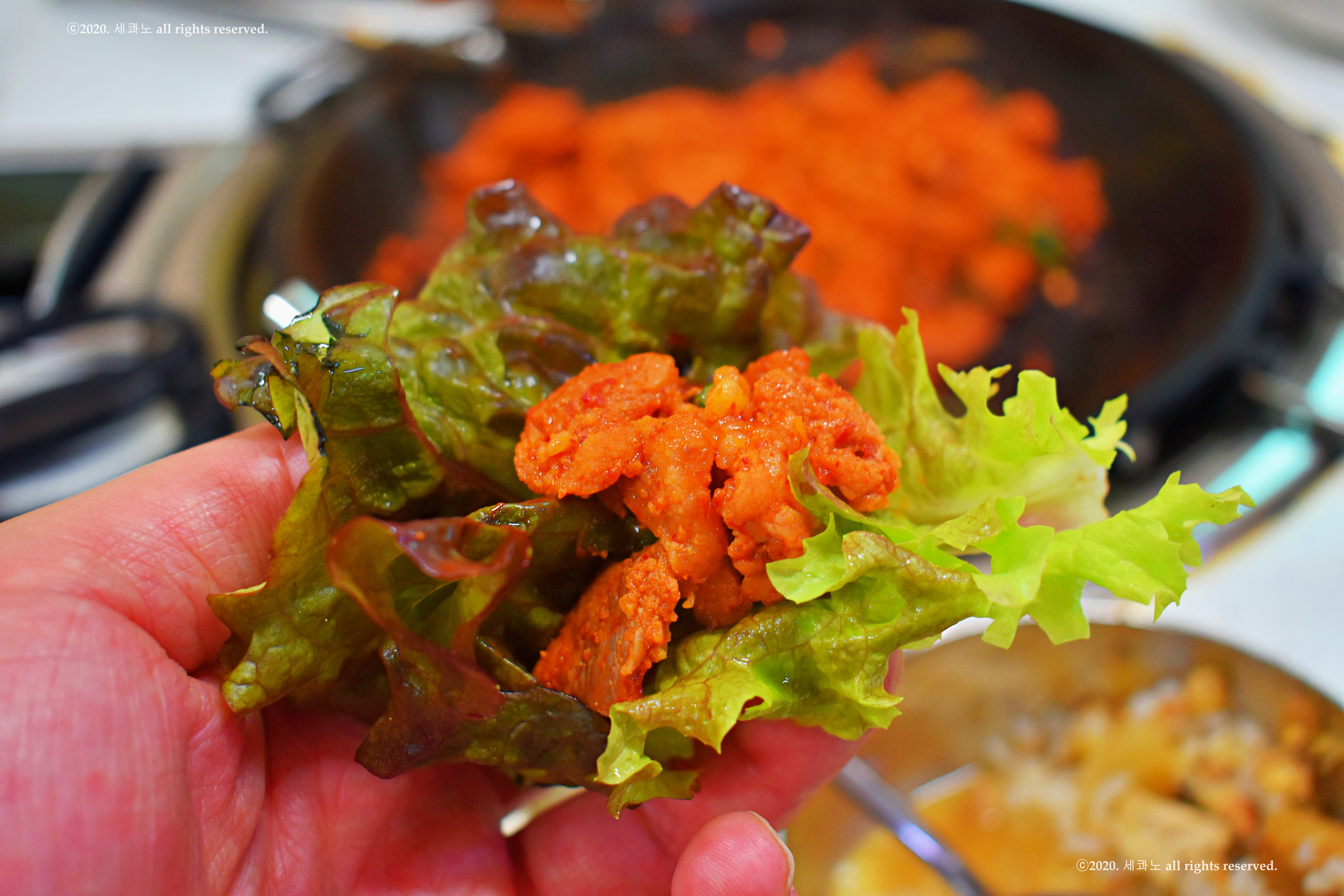 그 청국장 비빔밥을 쌈에 싸서