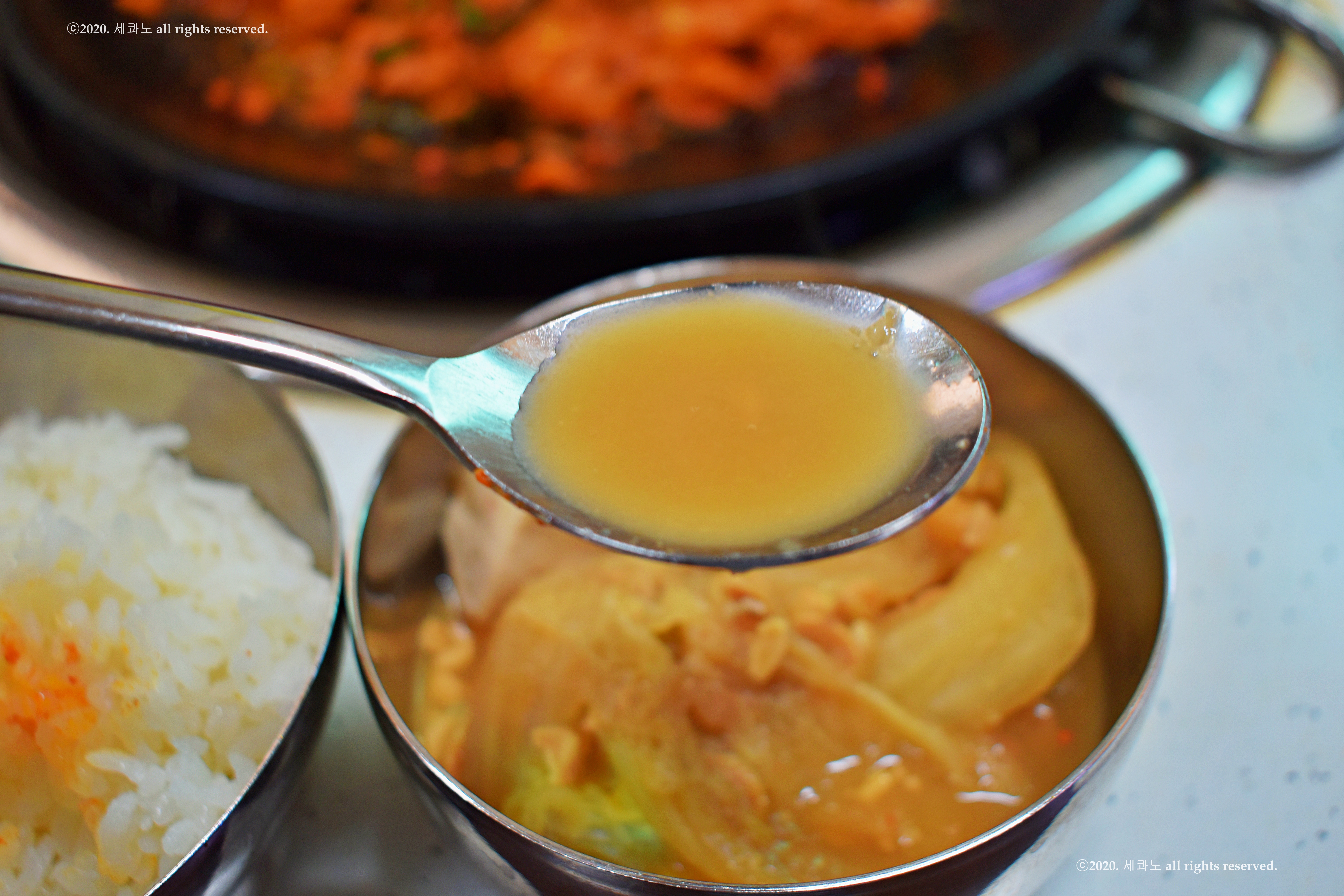 테이블마다 준비되어 있는 국자로 덜어 먹으면 된다.