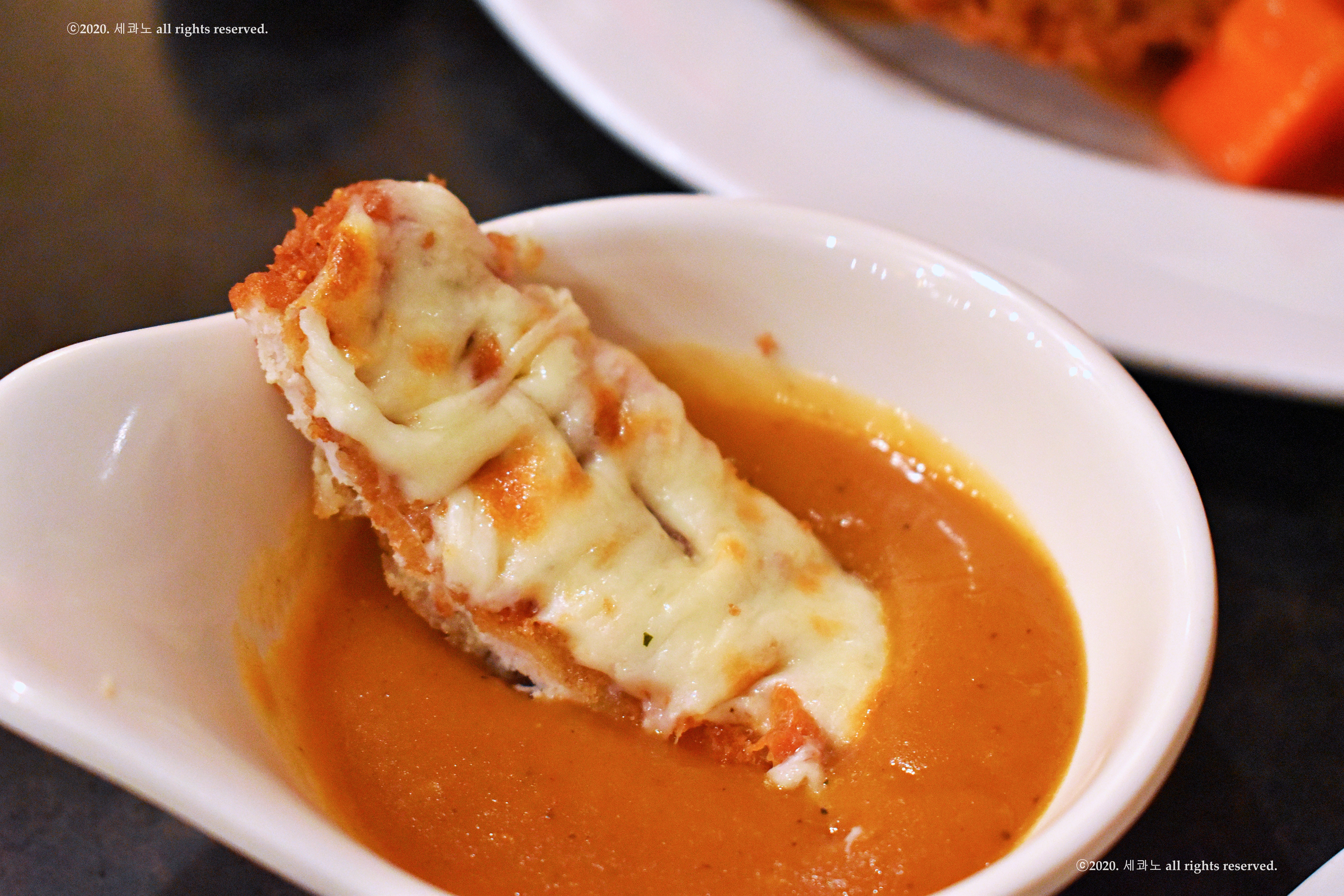 돈까스 위에 치즈를 올려