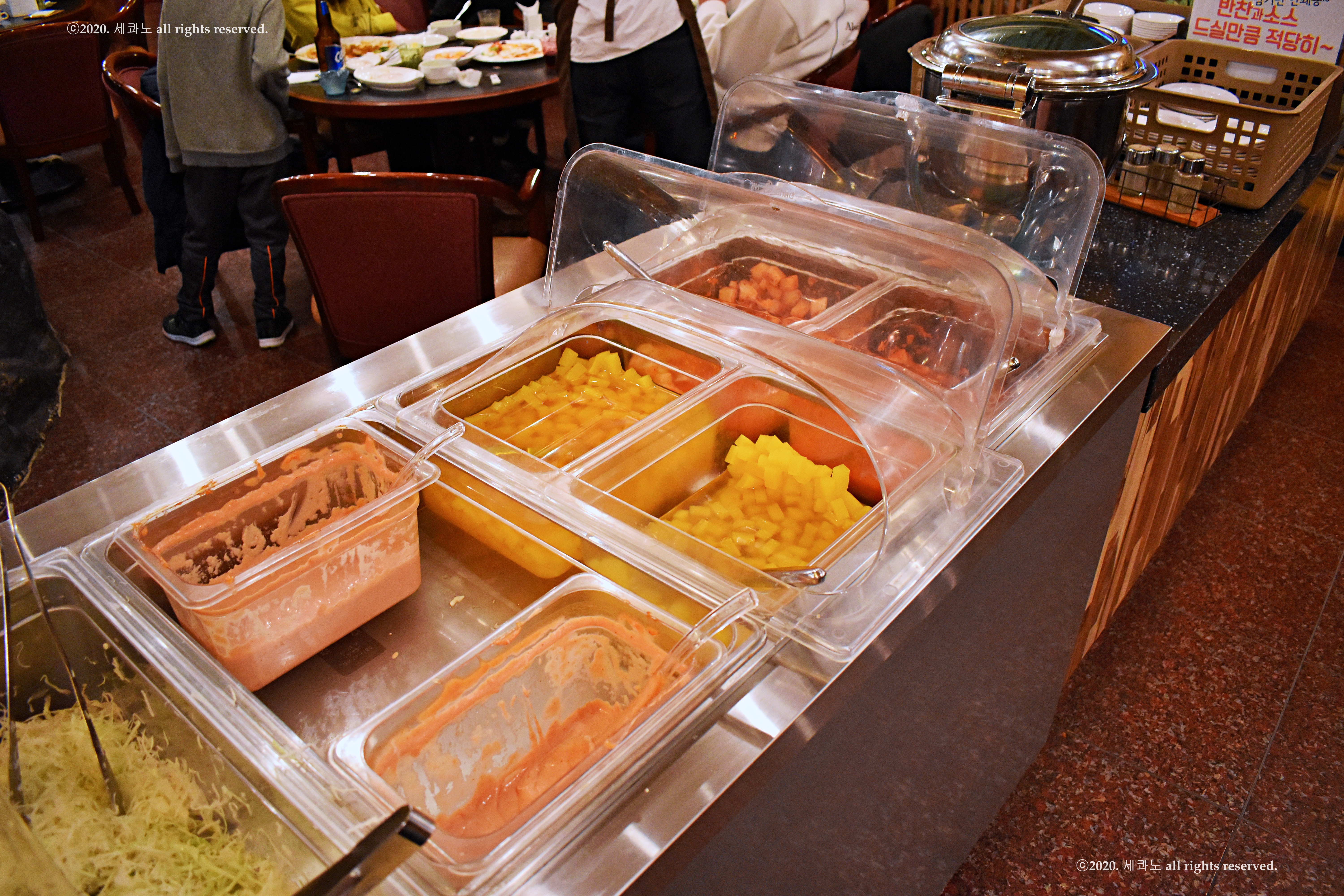 아, 포크와 같은 각종 식기류도 셀프로 가져다 사용하면 된다.