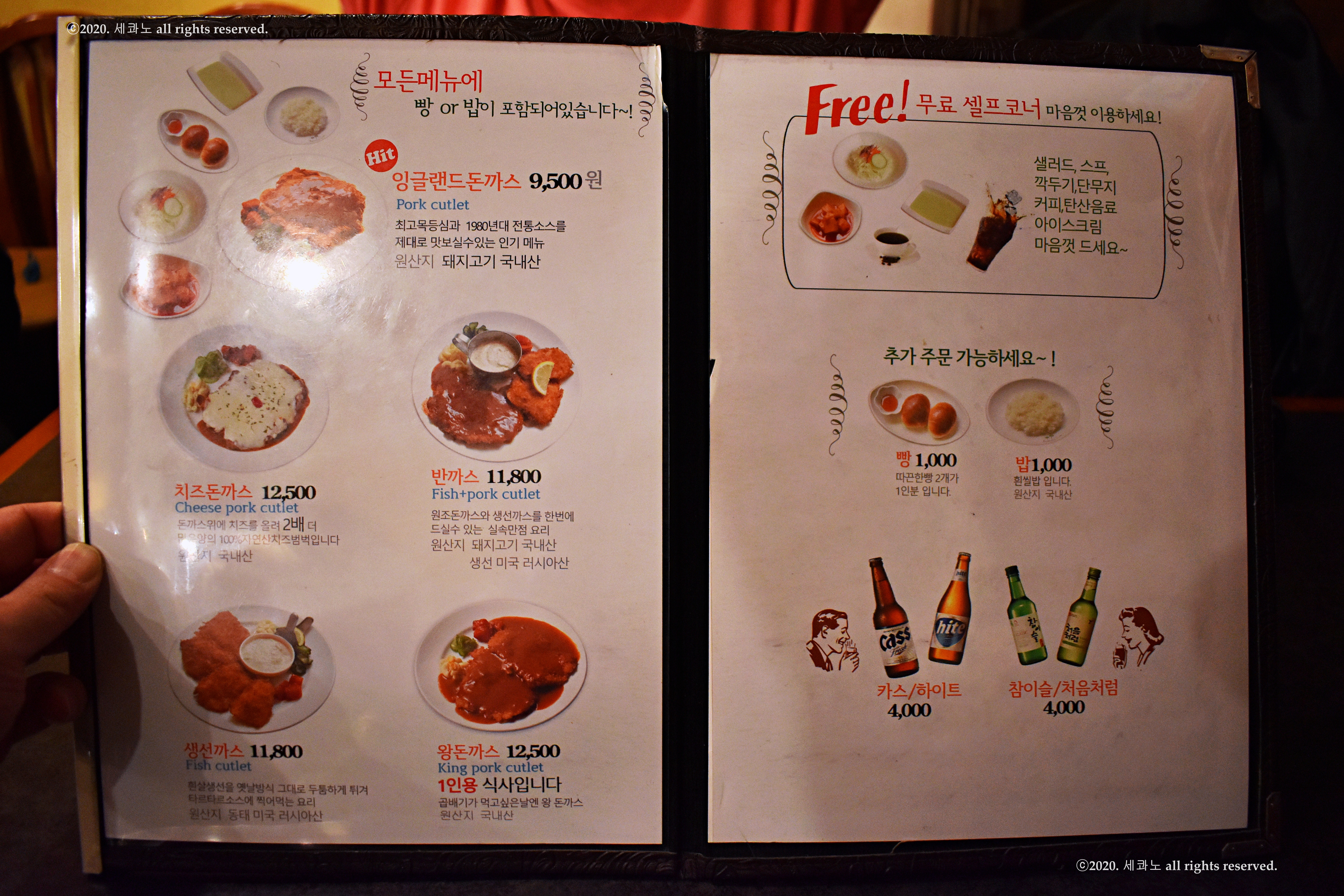 동인천 맛집잉글랜드왕돈까스 메뉴판과 가격