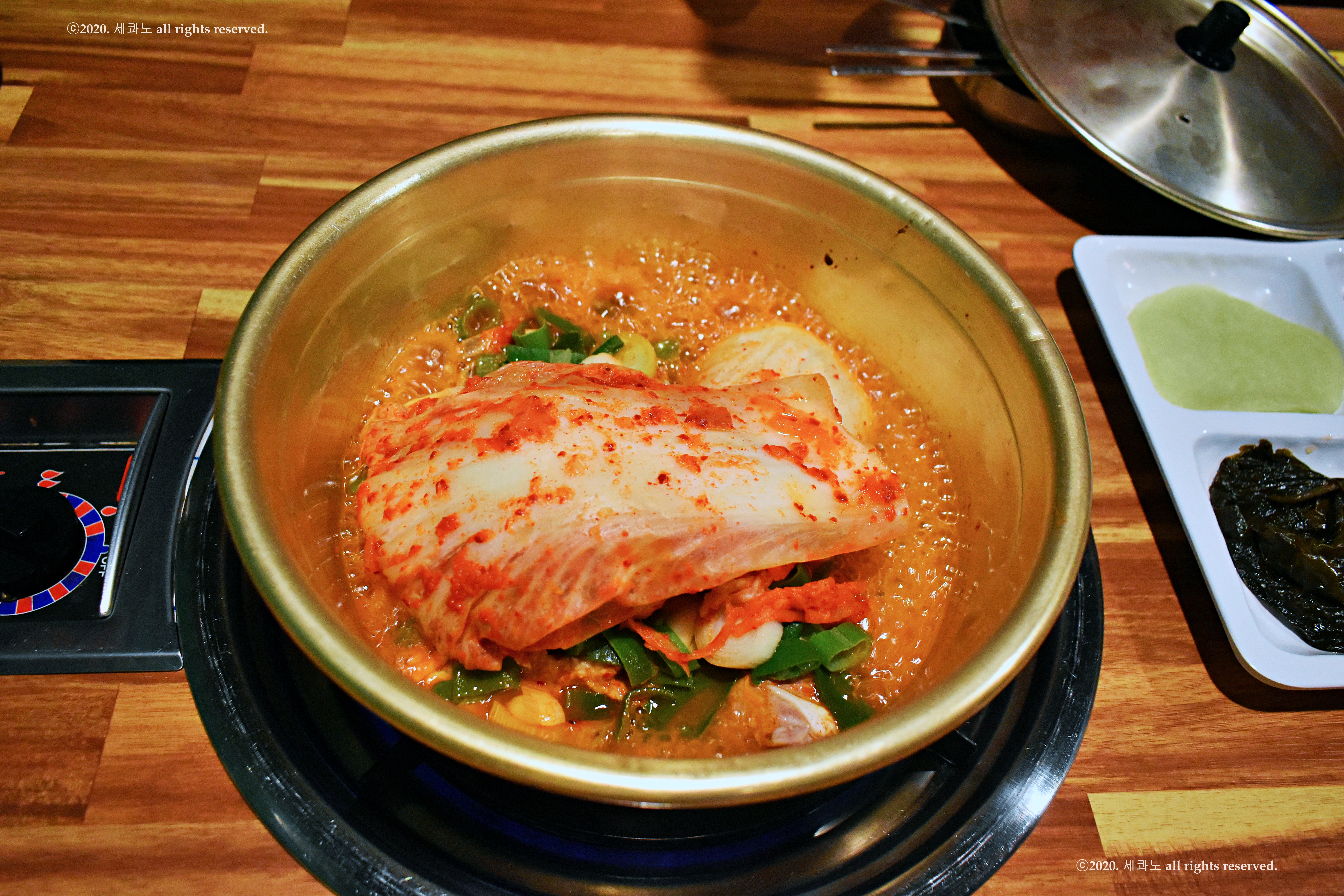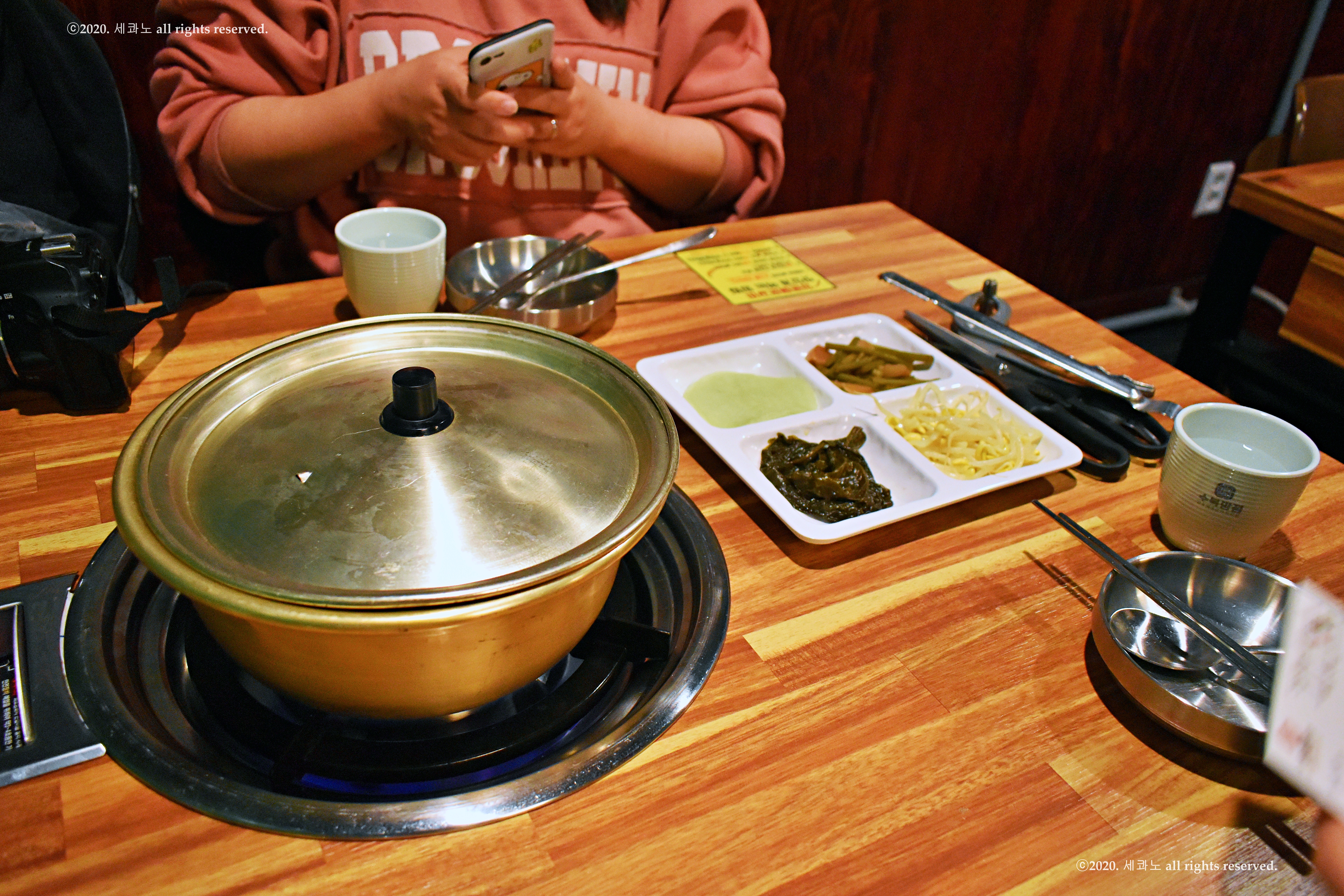 그랬더니 커다란 양푼 냄비에 뚜껑이 덮여 나왔고