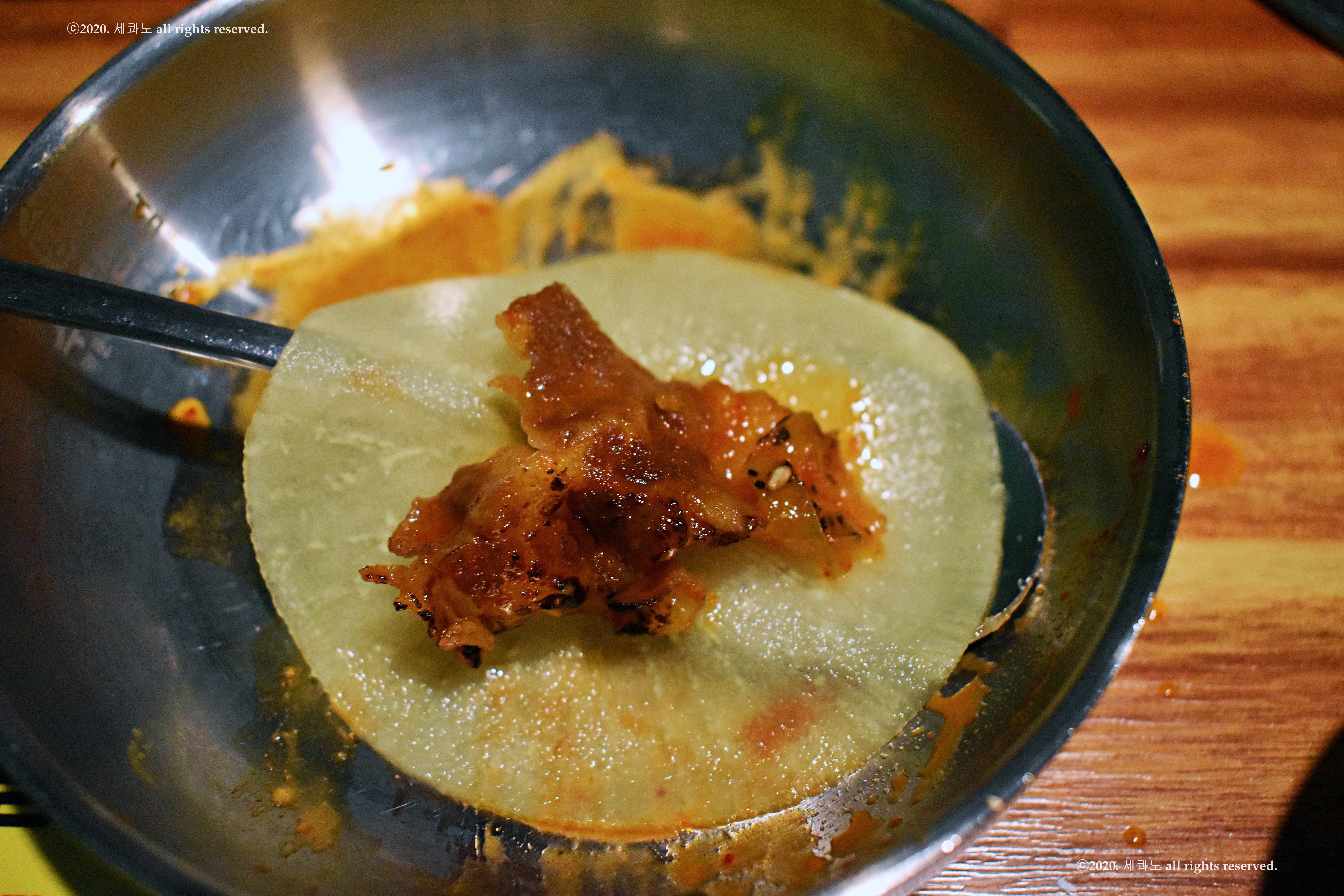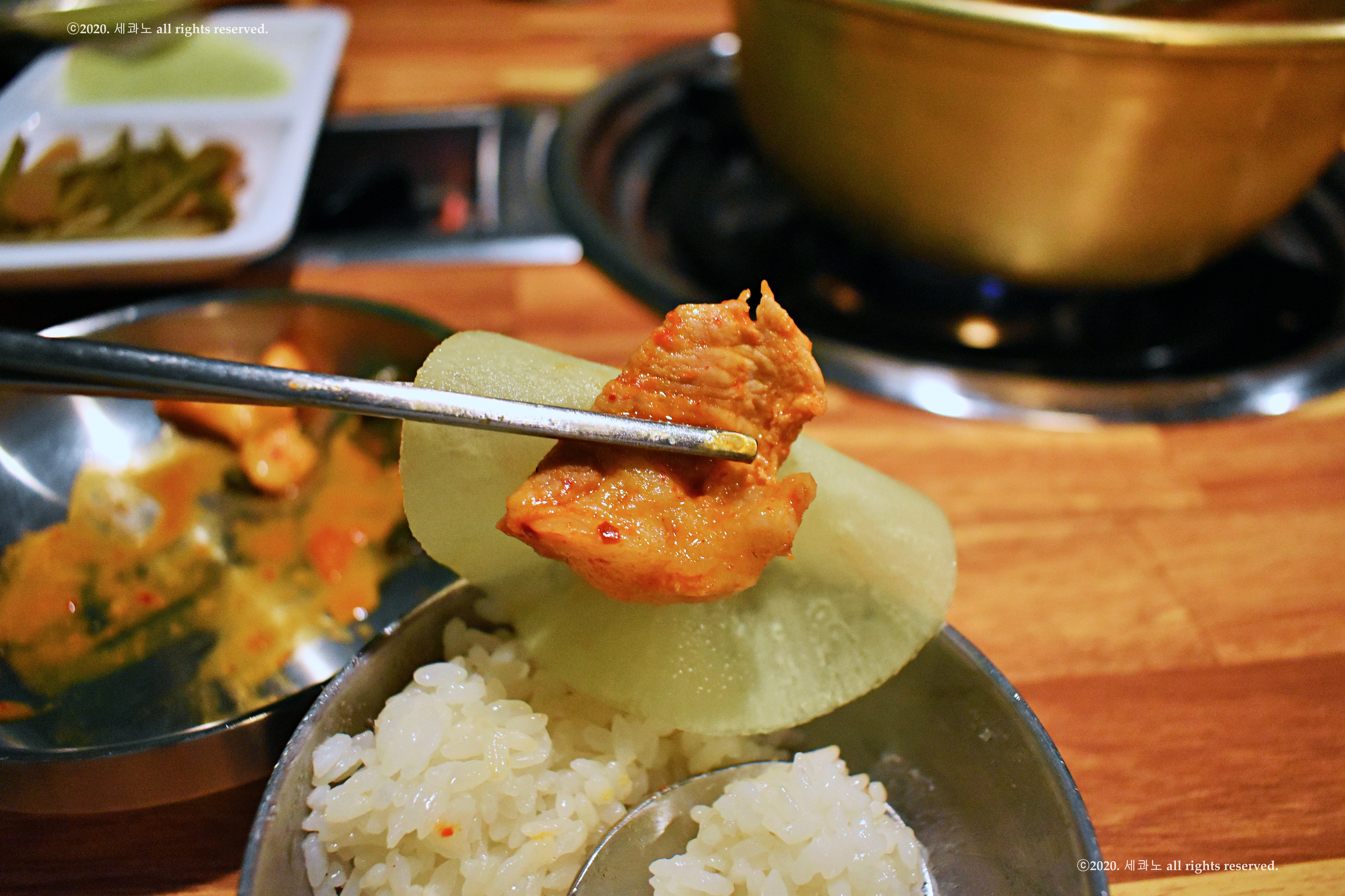 쌈무와도 먹고, 김치도 같이 먹어주고