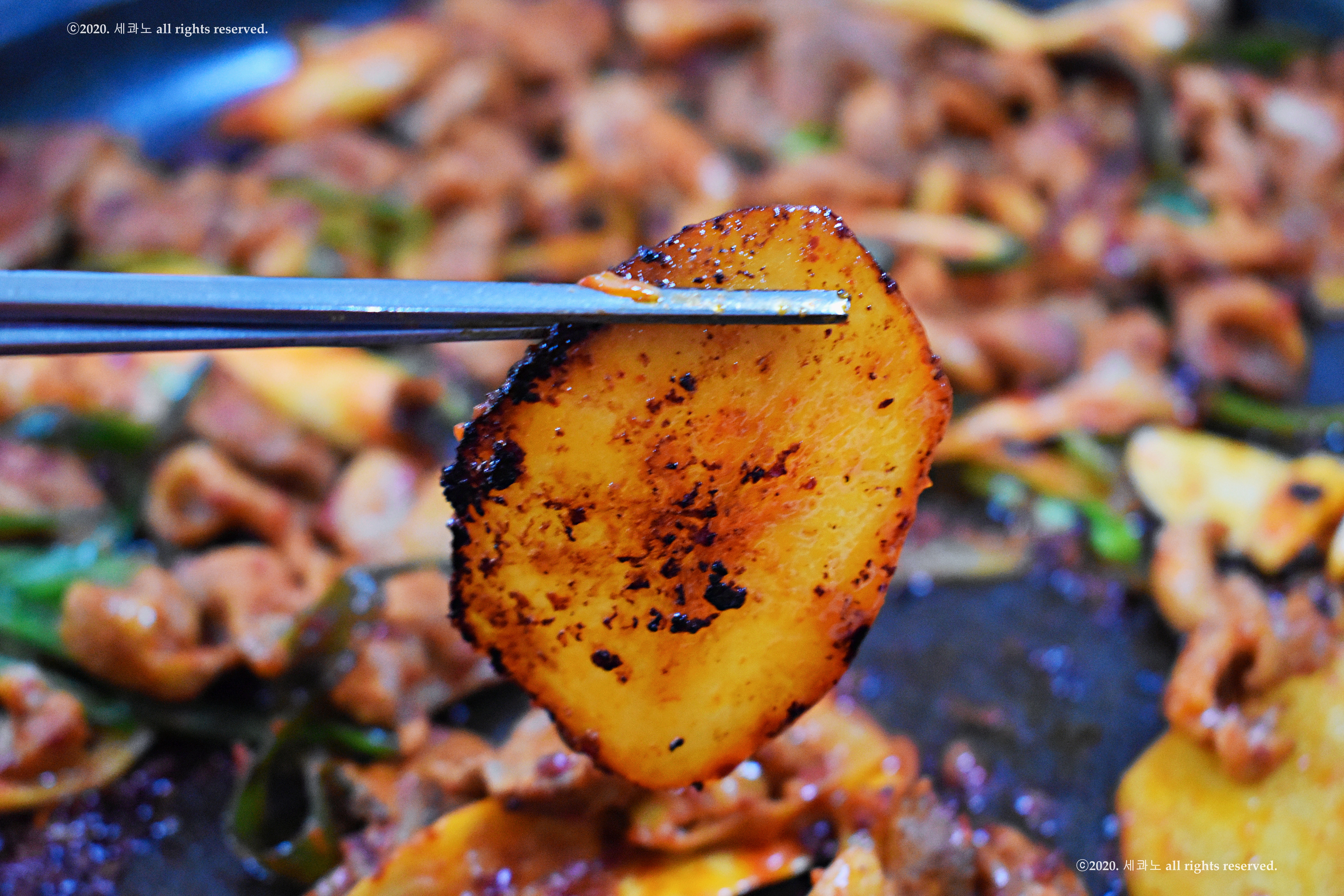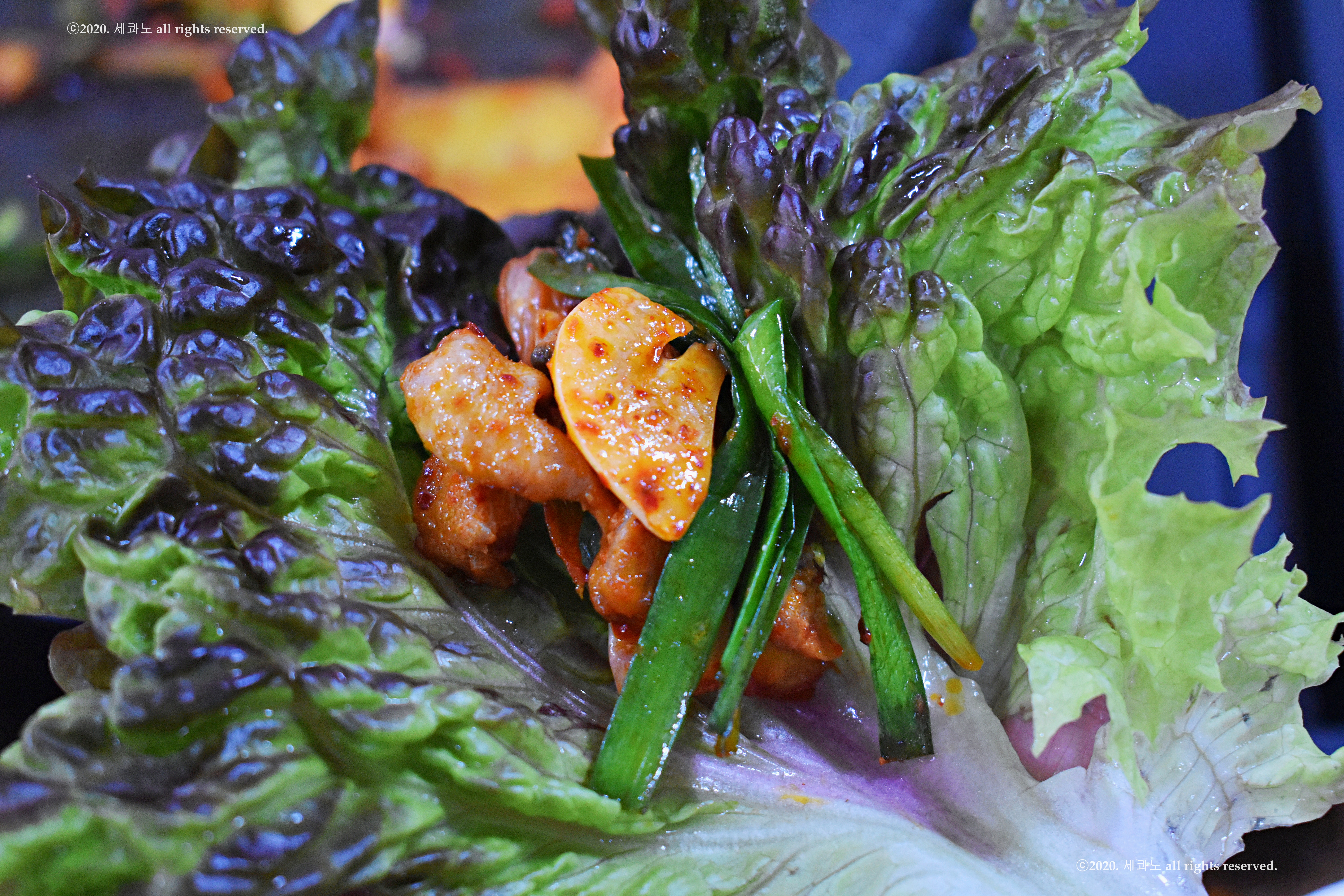 구운 감자로 쌈을 쌀 수 있을 정도로 얇았다.