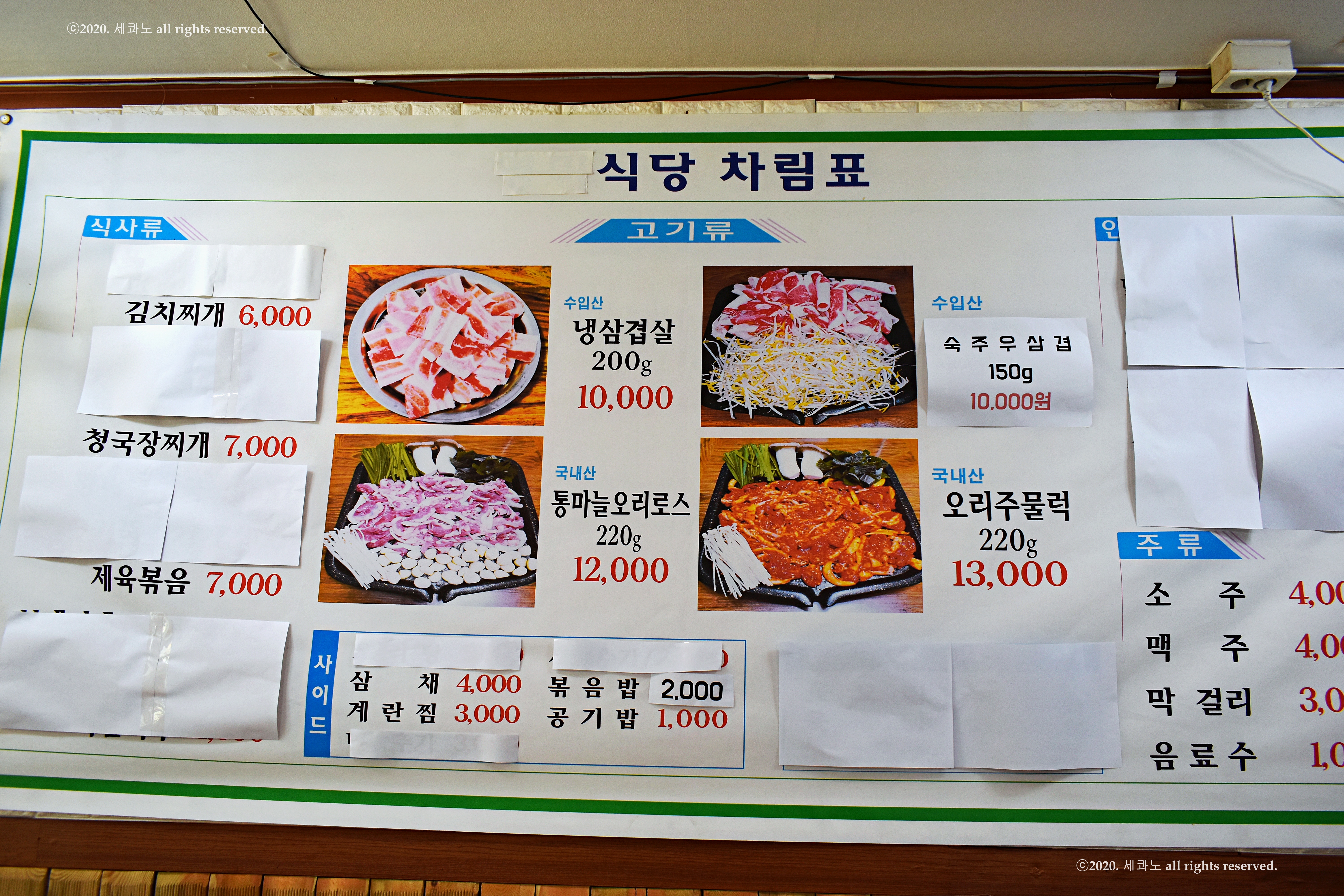 김치찌개, 청국장찌개, 제육볶음 3가지 식사 메뉴만 남아 있더라