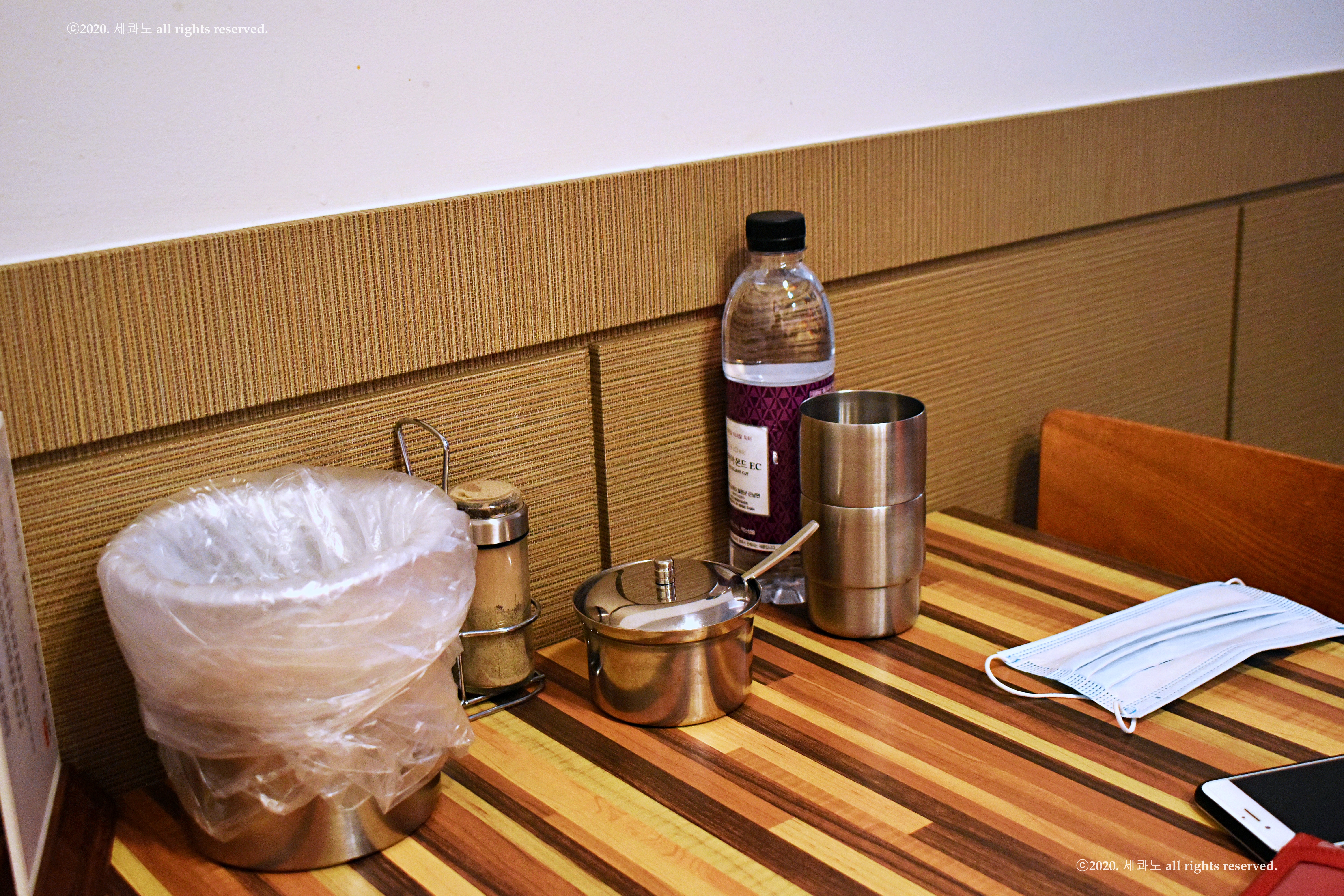 테이블 옆쪽 수저통을 열면