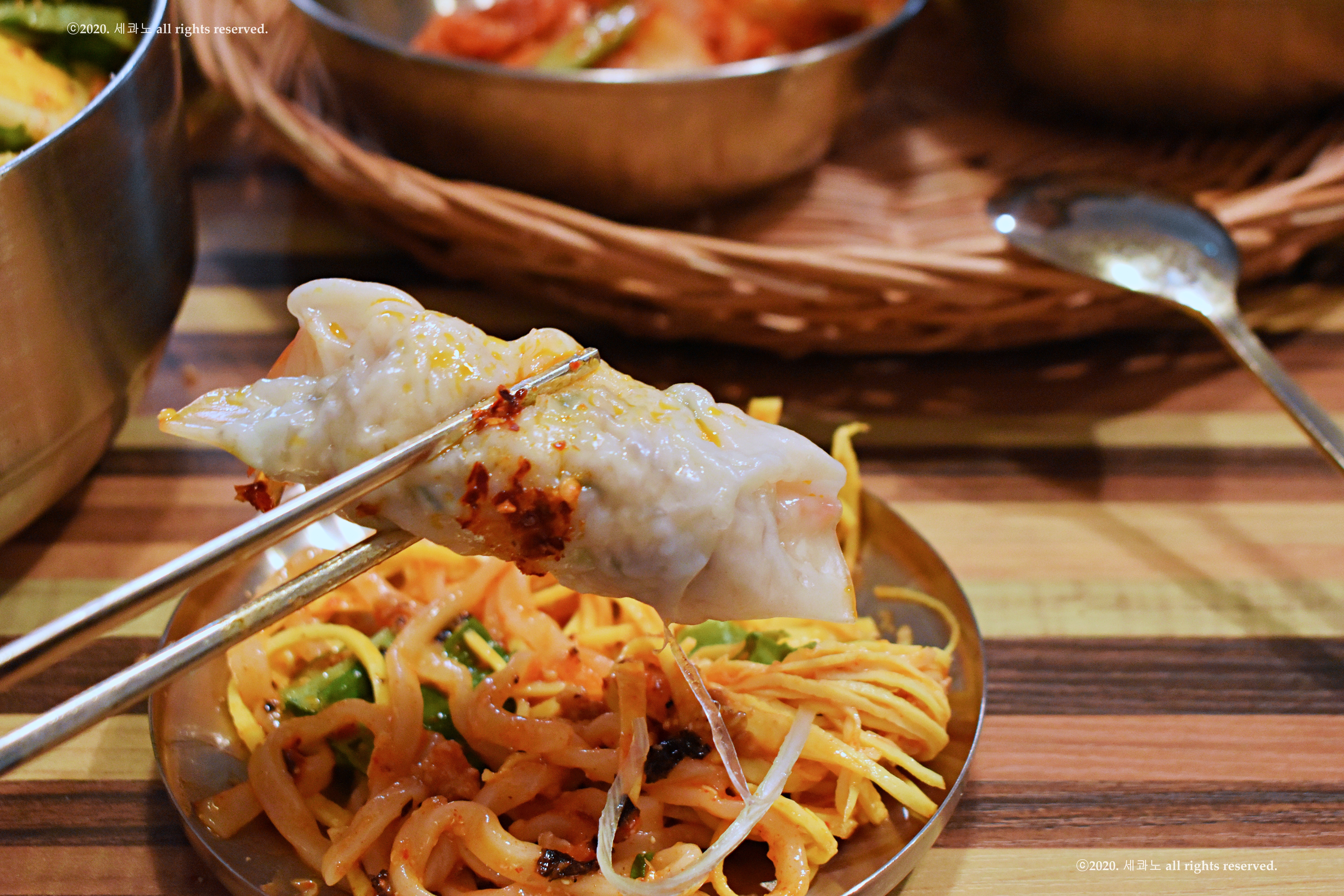 새우만두를 비빔칼국수와 함께 먹고