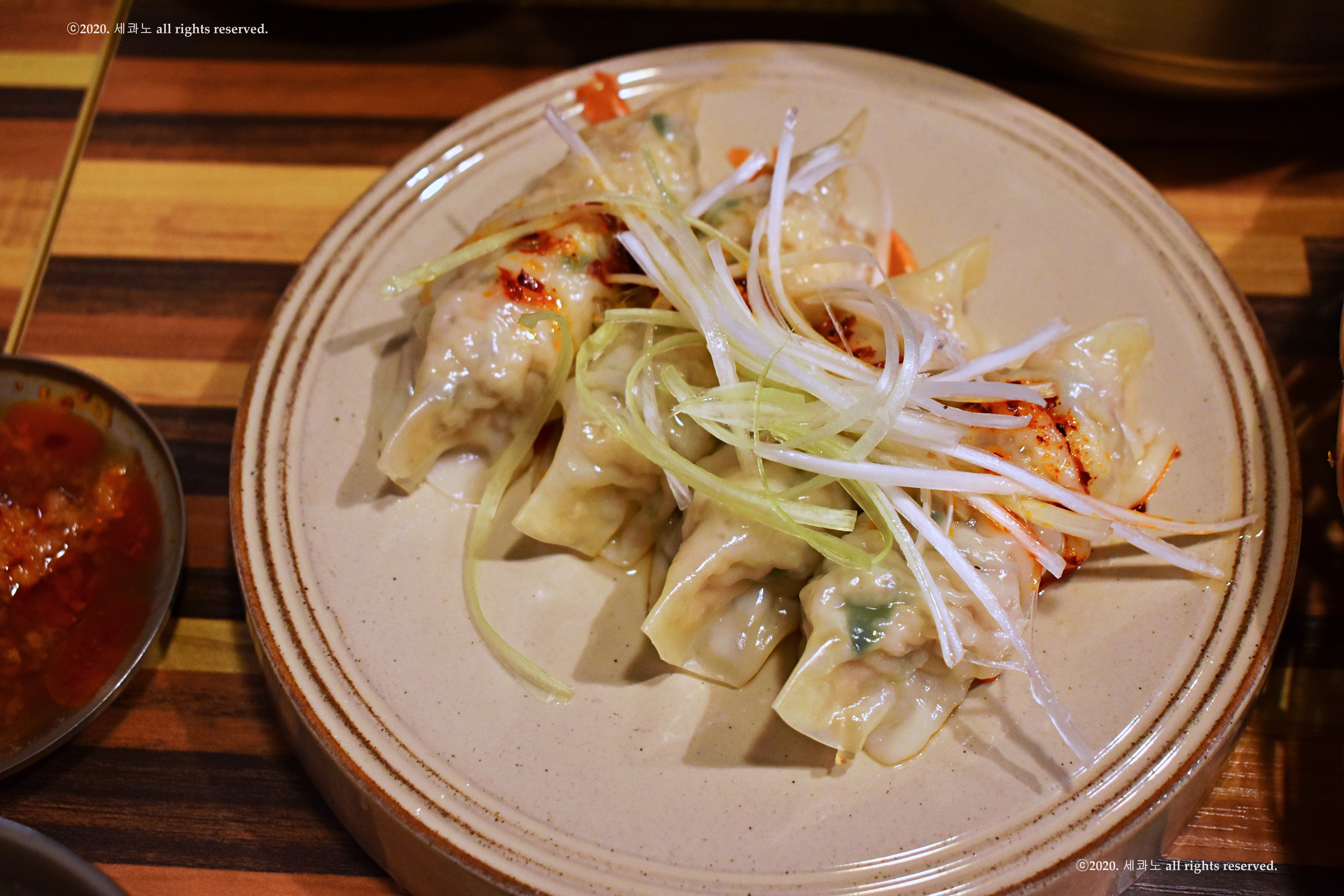만두 위에 이미 양념간장 뿌리고