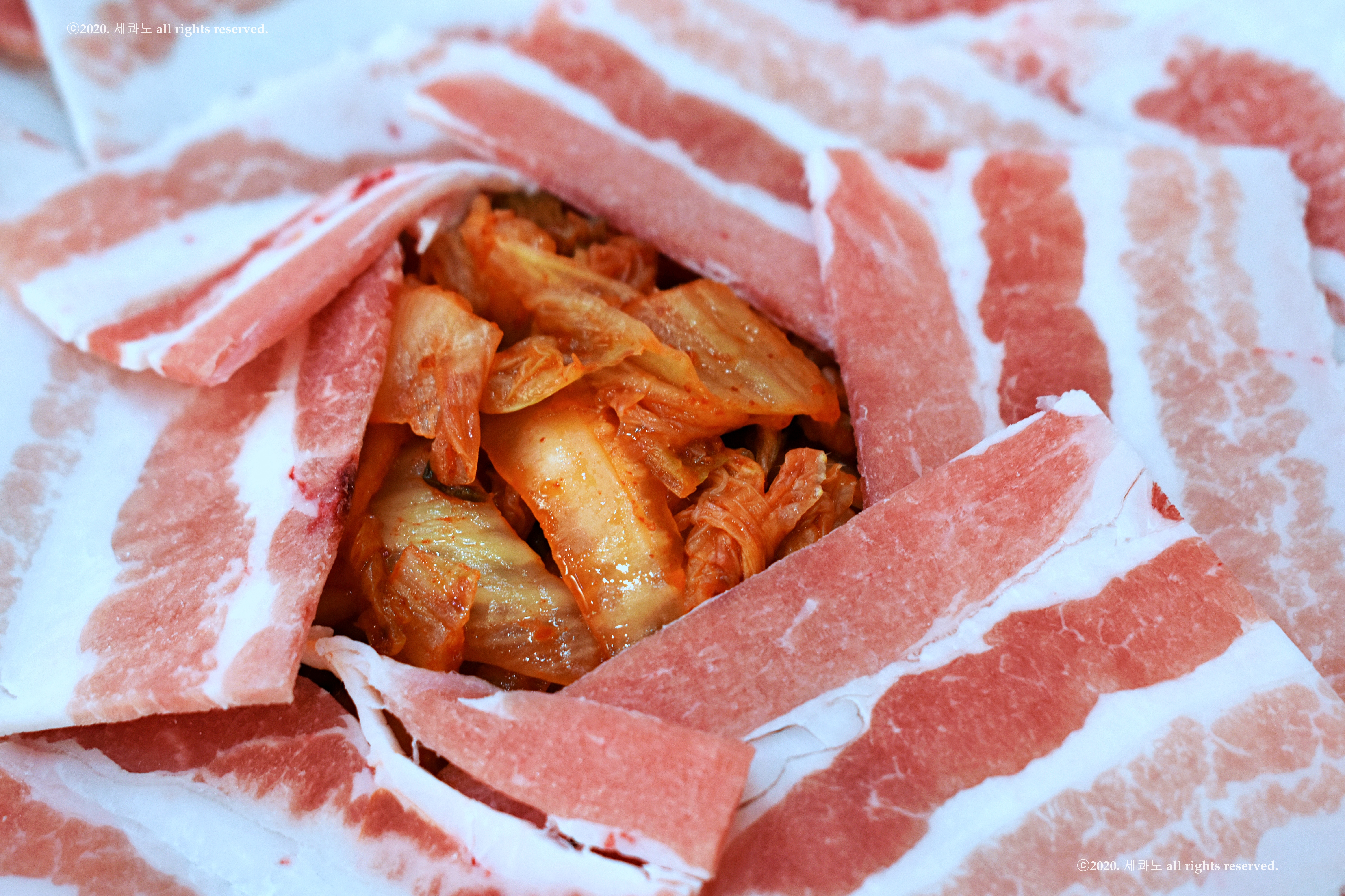 당연하게 김치와 삼겹살을 같이 먹는다.