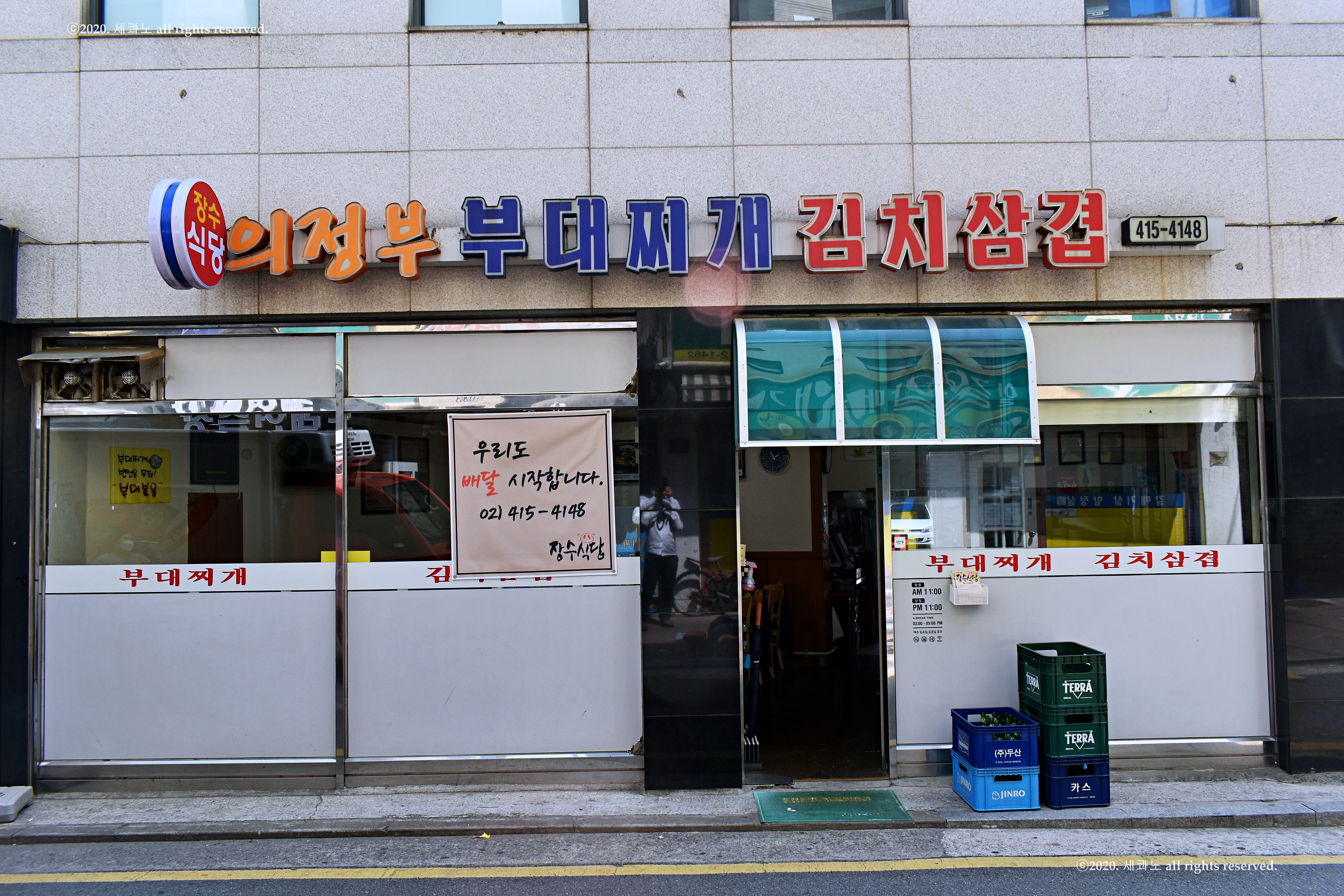간판에는 의정부 부대찌개 김치삼겹이라고 되어 있는데