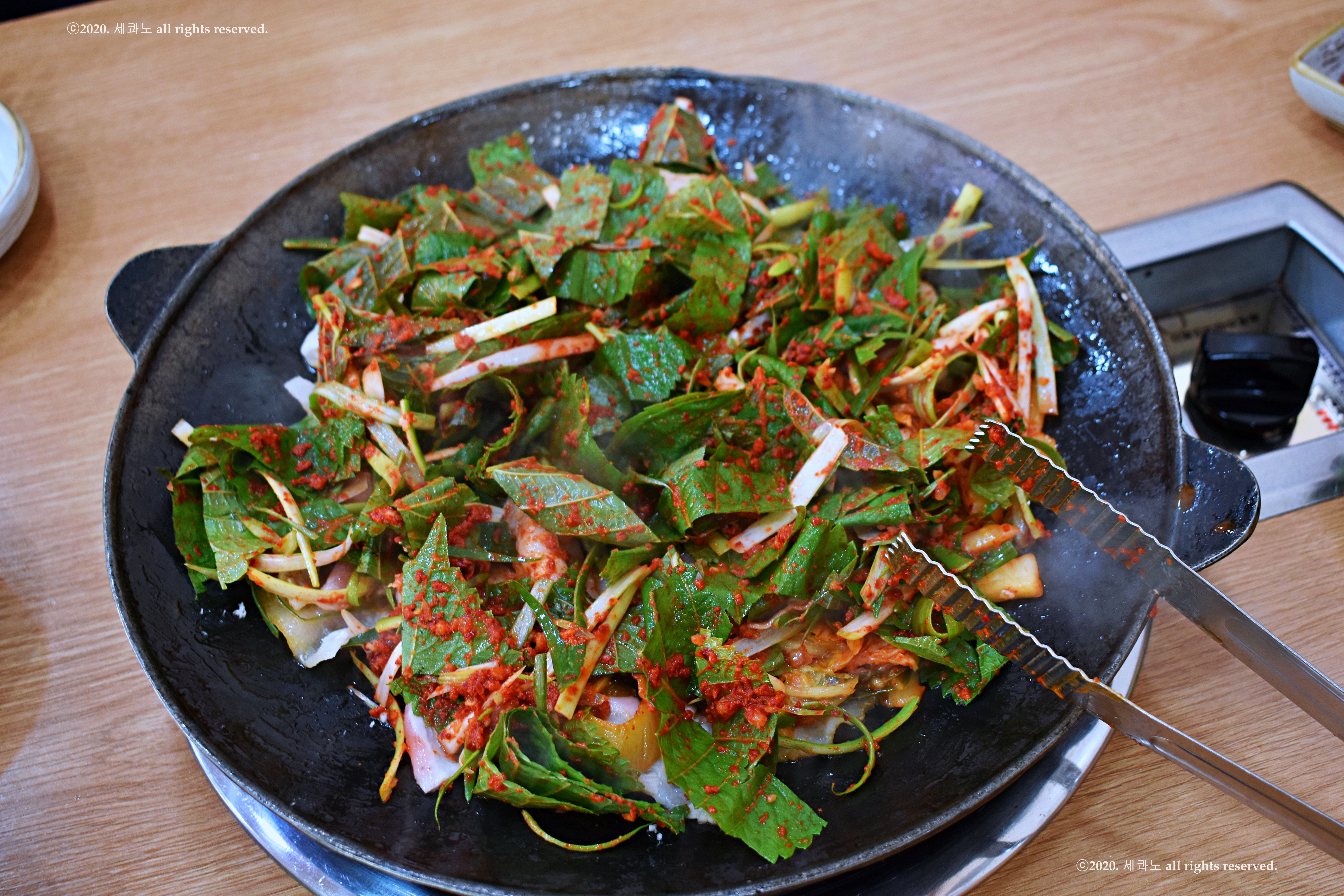 깻잎을 비롯한 야채들과 함께 볶아주고