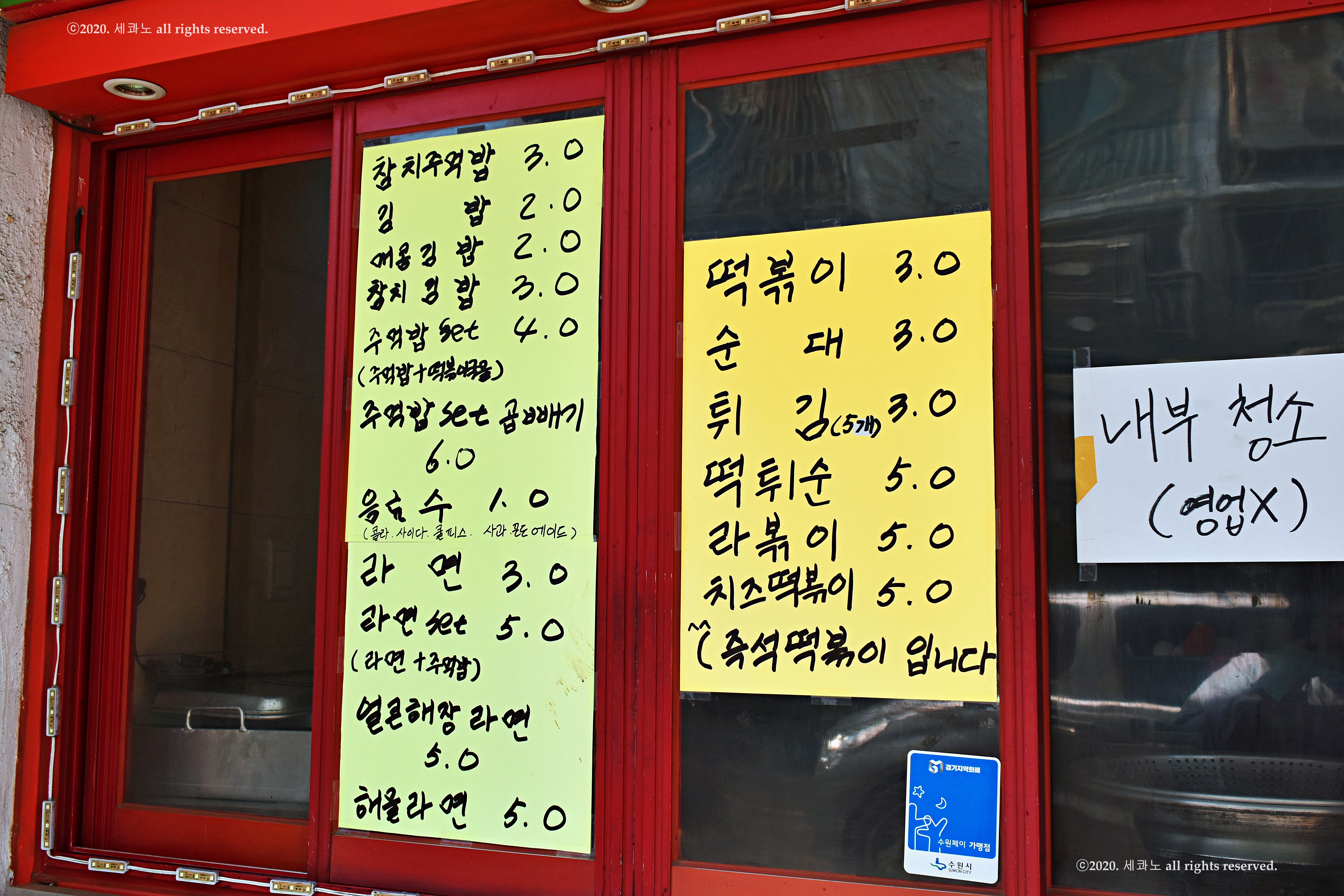 떡볶이 3000원, 순대 3000원, 튀김 5개 3000원