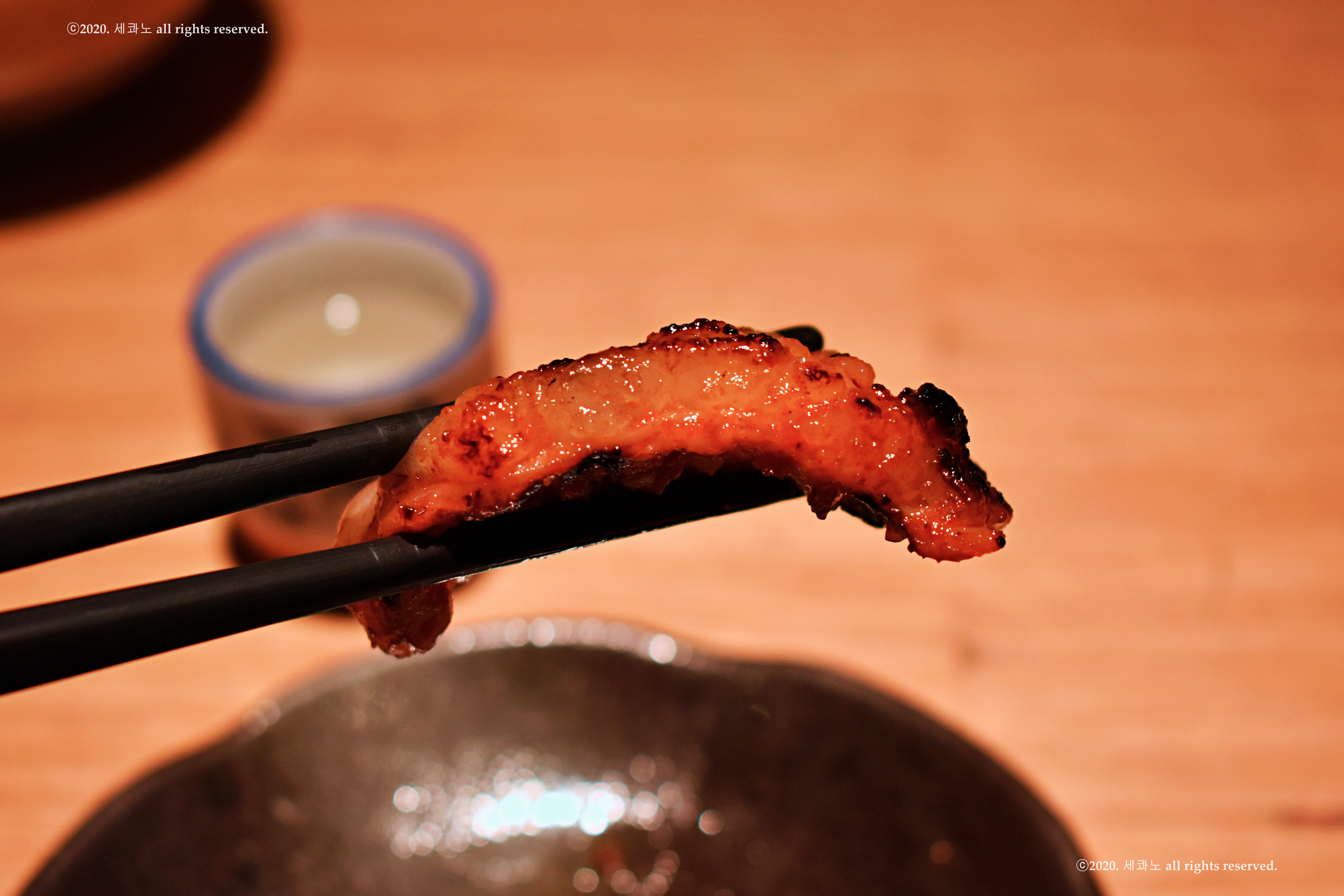 거기에 간장 베이스의 짭짤한 타레 소스를 발라서인지