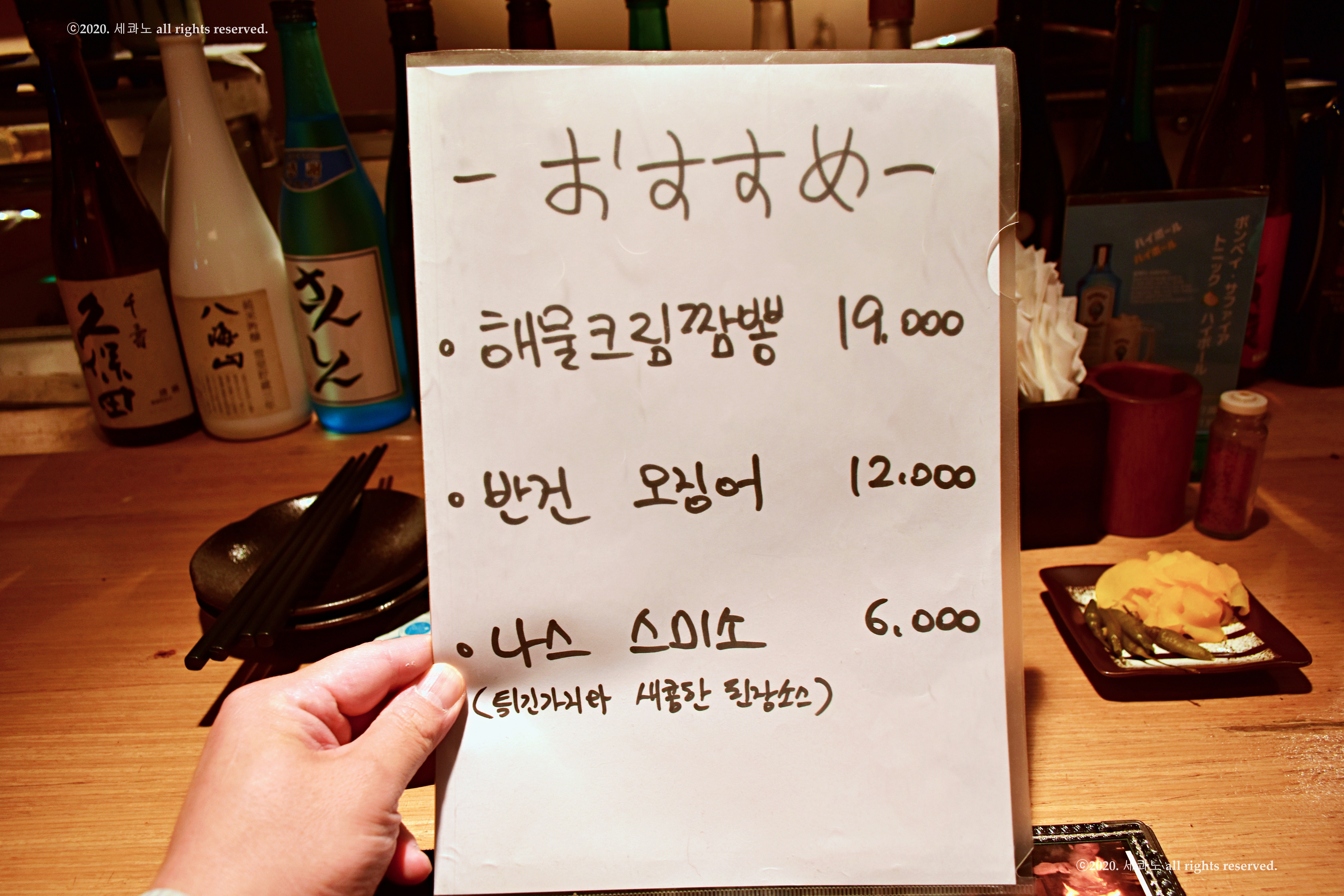 그날그날 추천하는 메뉴는 이렇게 따로 내어주고
