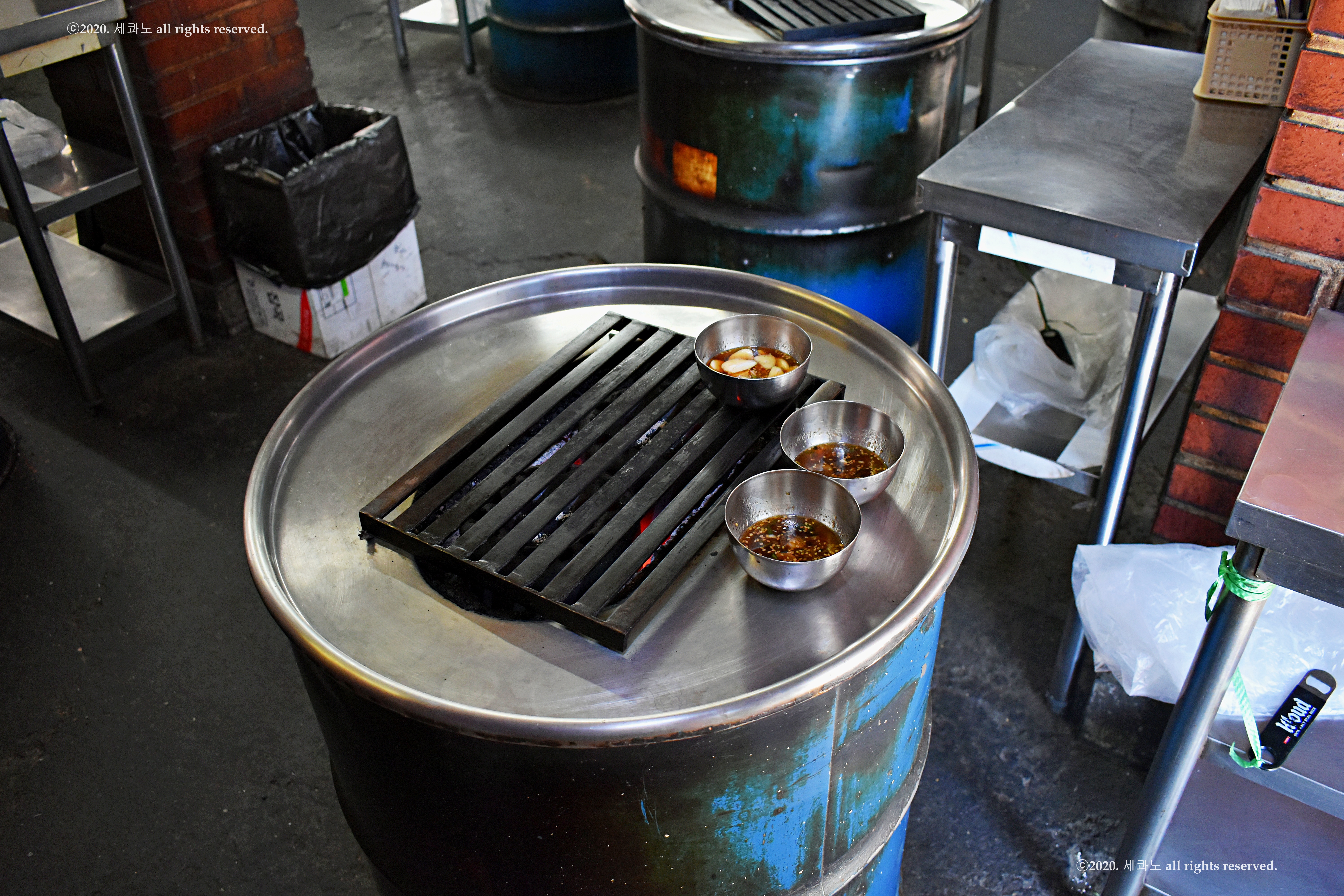 연탄 드럼통으로 만든 테이블에서