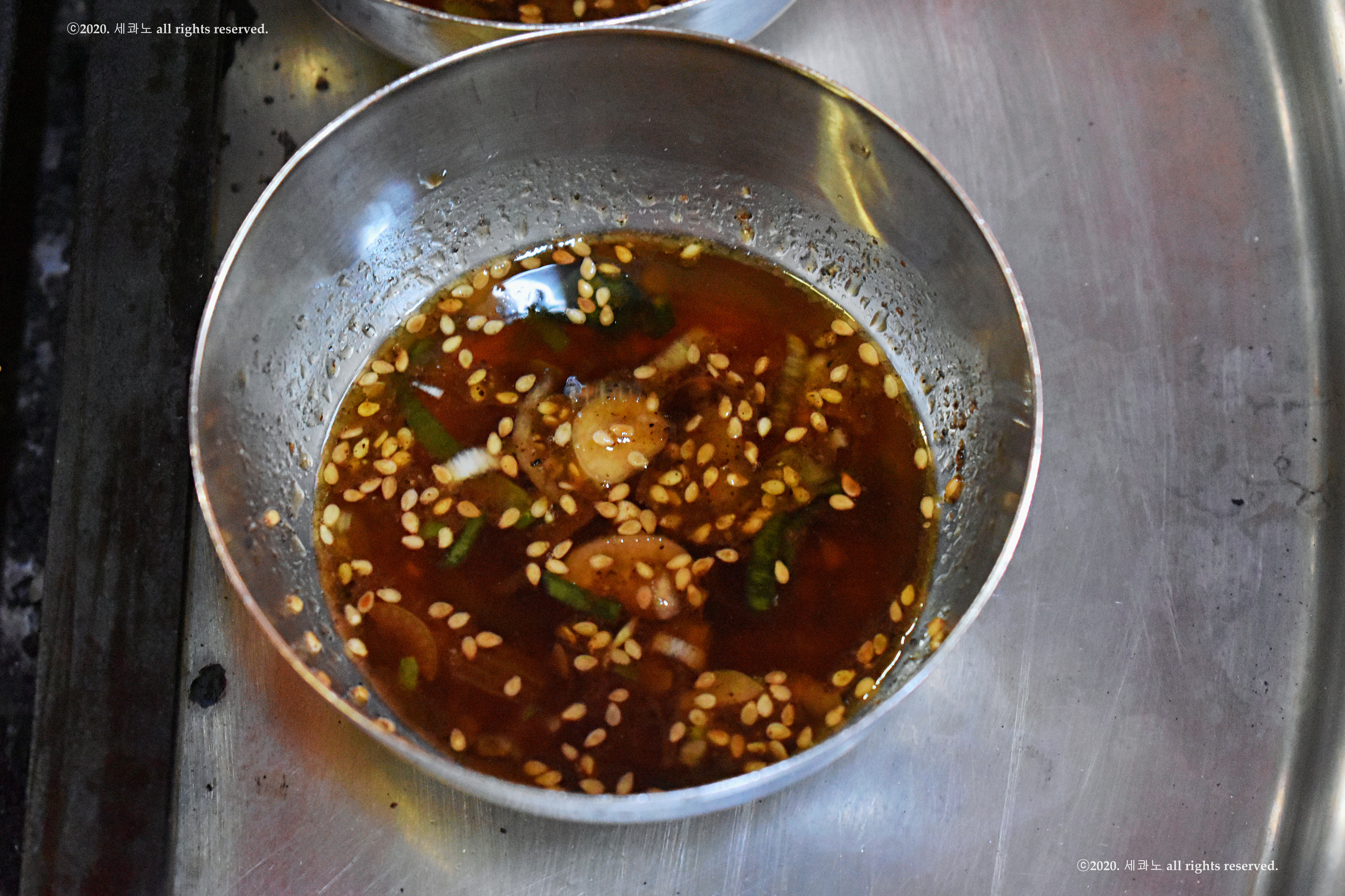 간장, 파, 설탕, 마늘, 후추, 참기름 등이 어우러진
