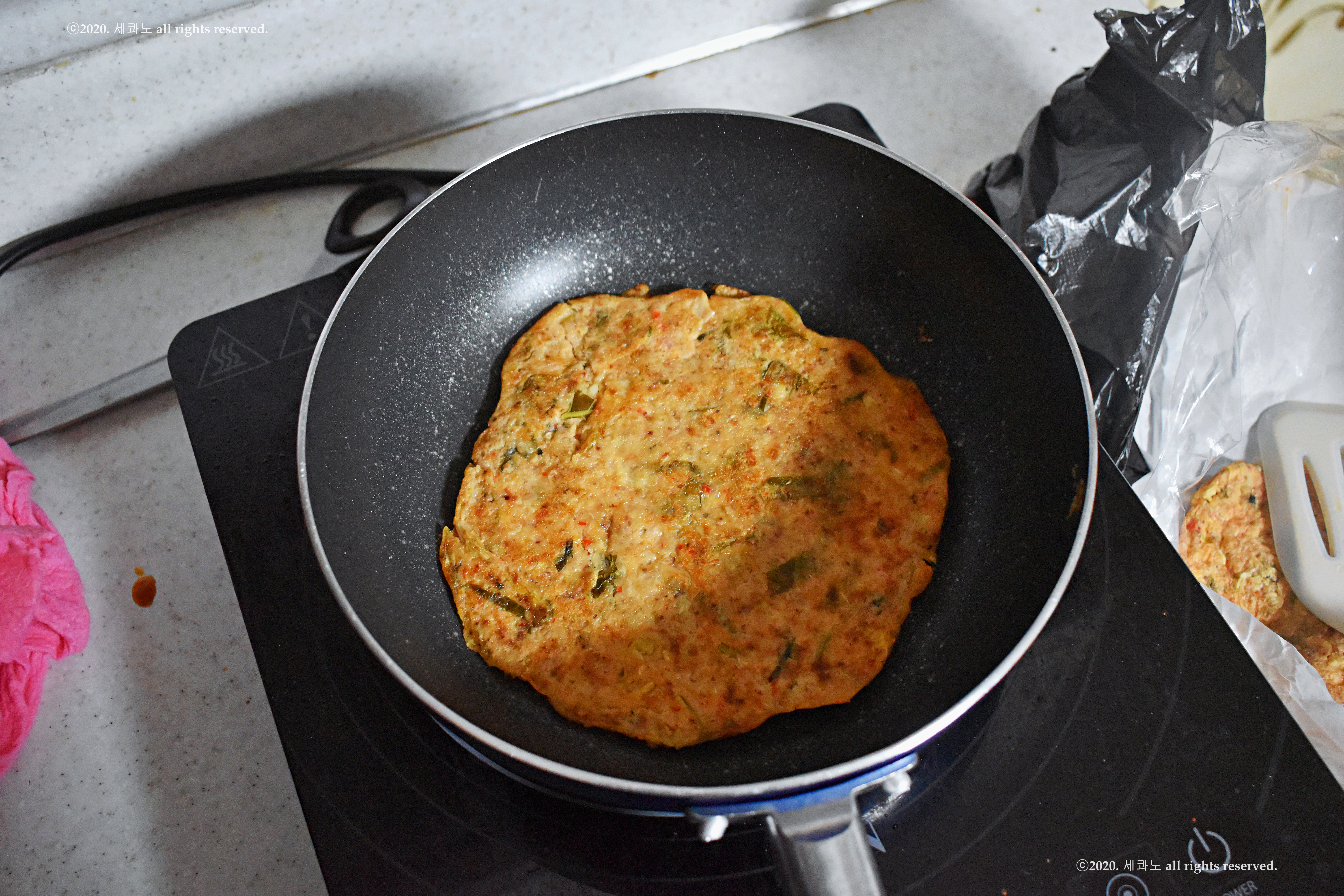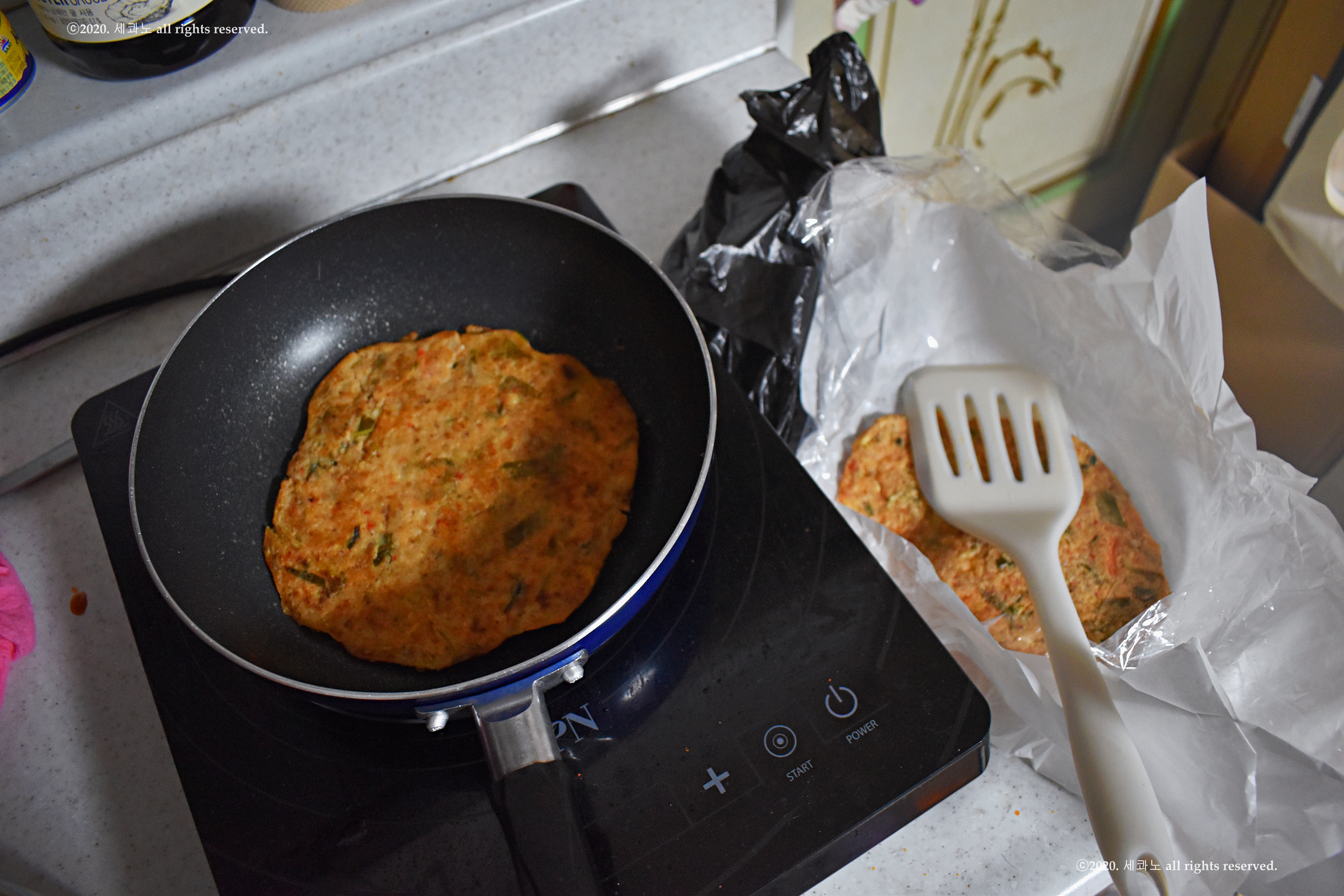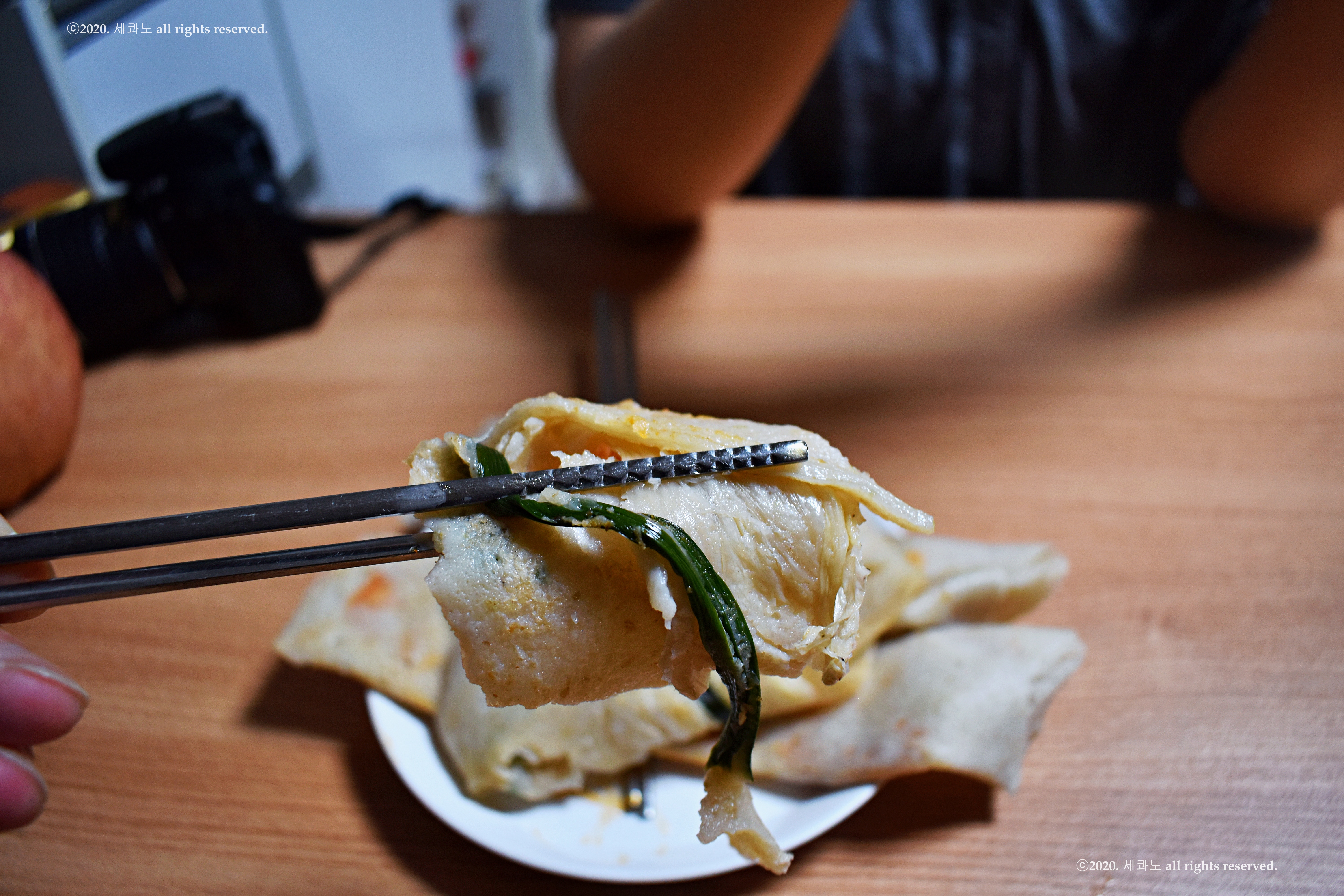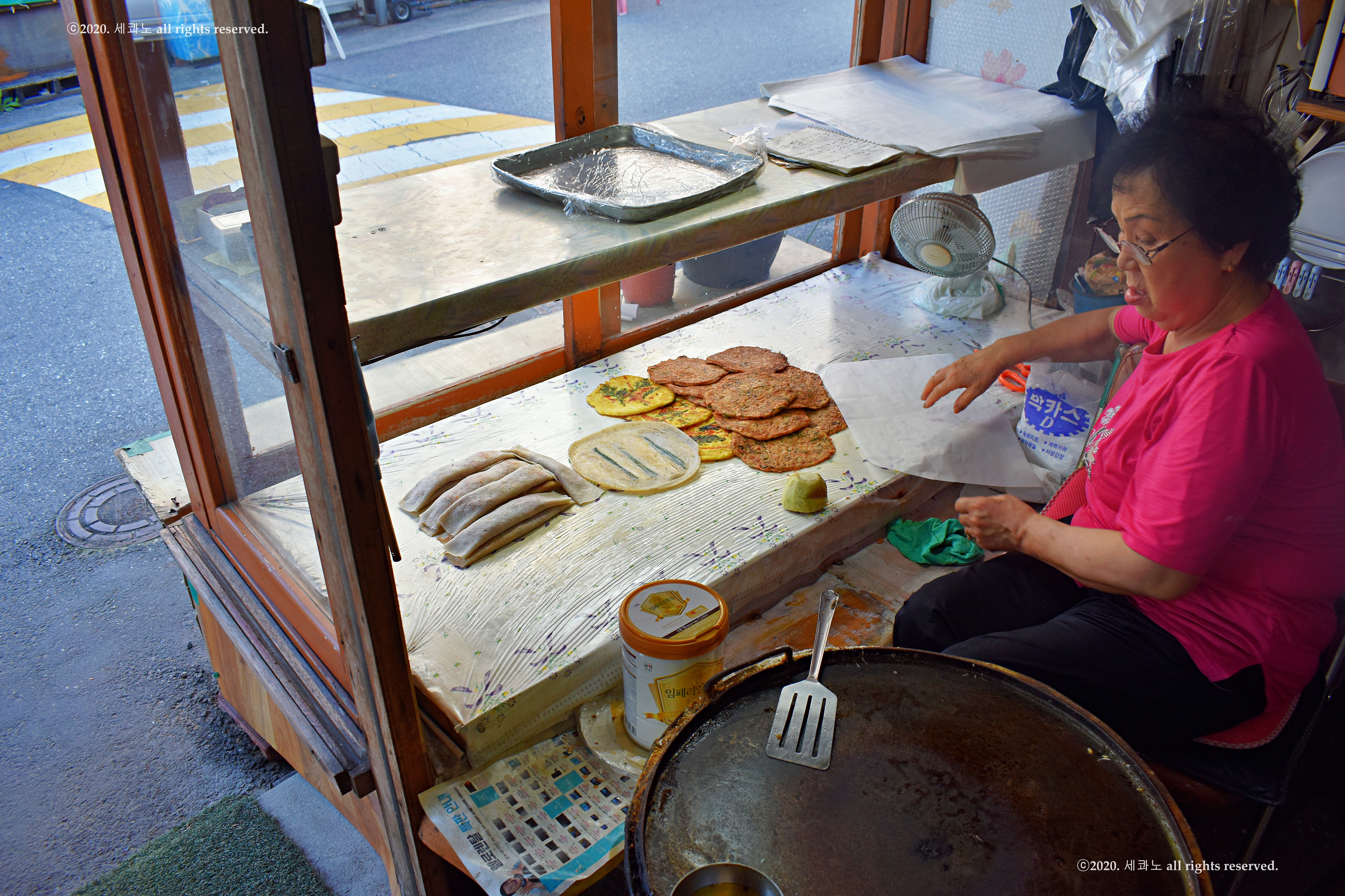 메밀전, 메밀전병을 부치고 계셨다.