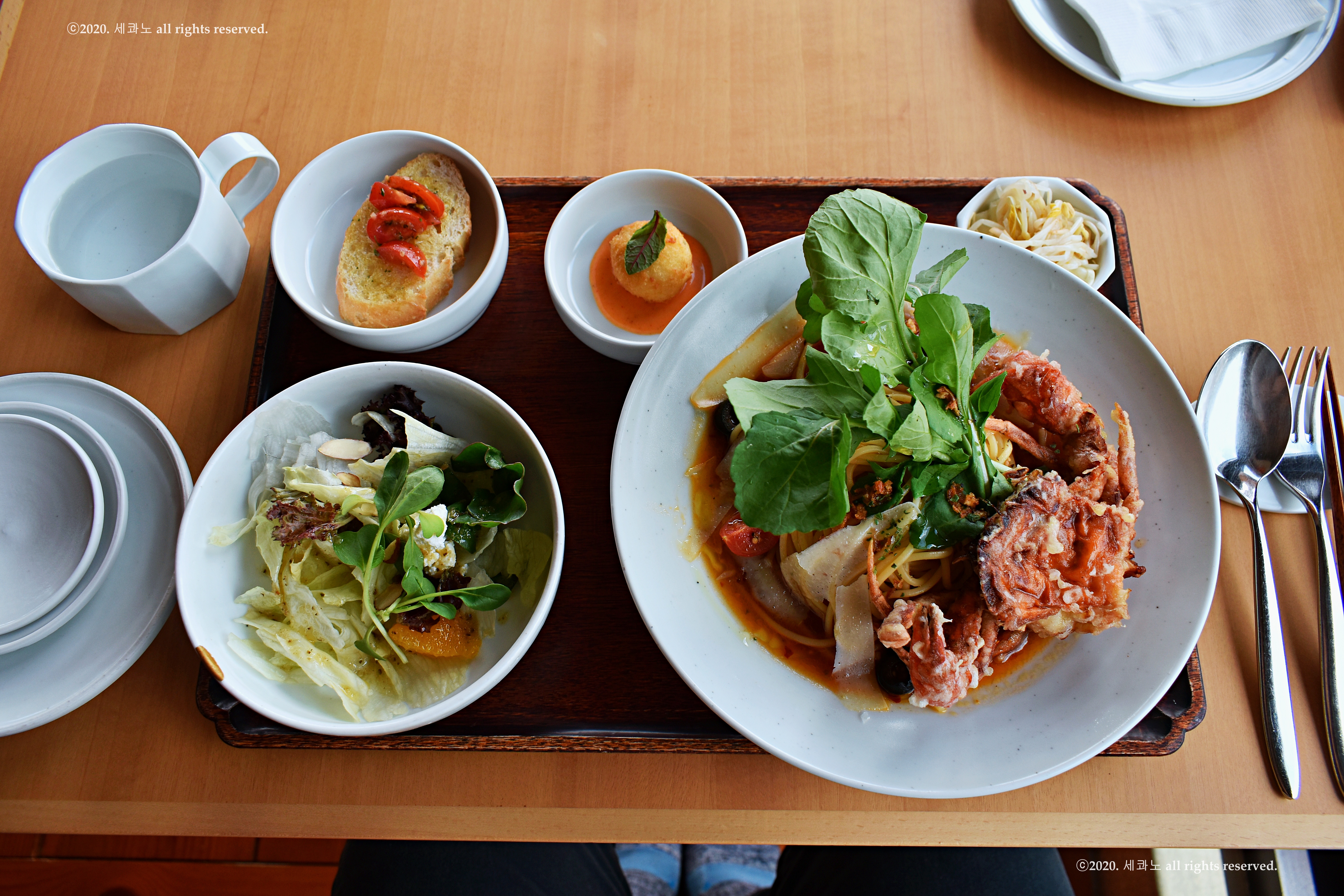 파스타가 밥, 그리고 샐러드나 애피타이저가 반찬..이라 생각하면 될 듯