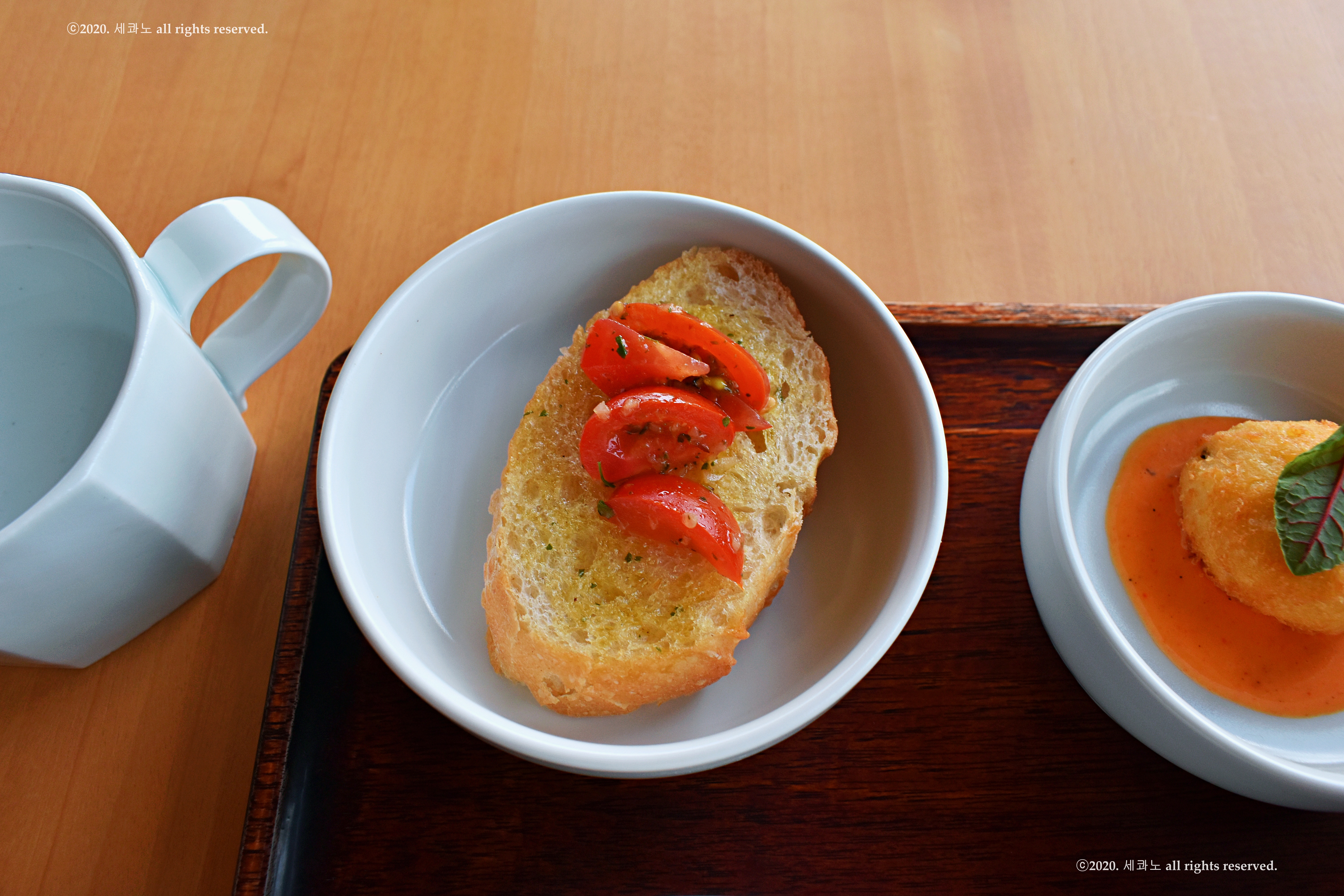 모든 반상에는 애피타이저, 샐러드, 식전빵과 함께 내어준다