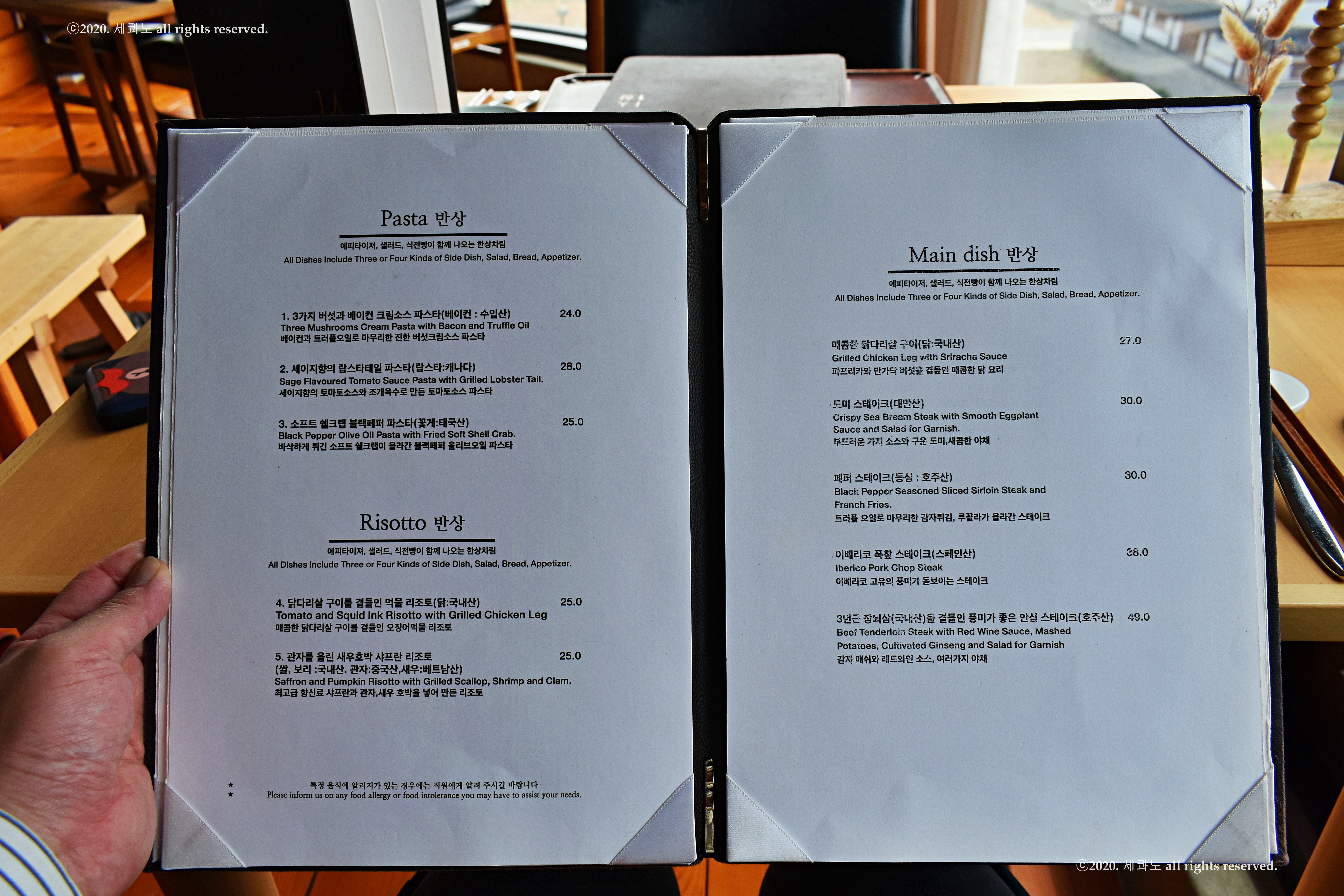 파스타 반상, 리소토 반상, 메인 디시 반상